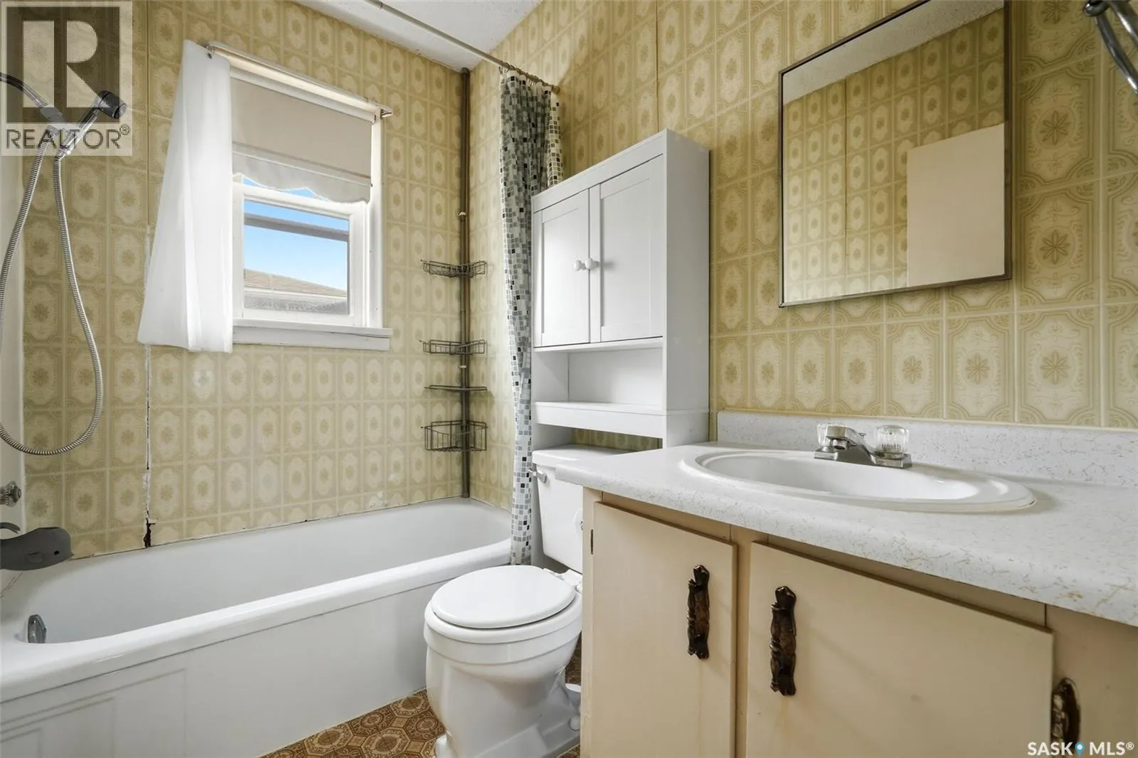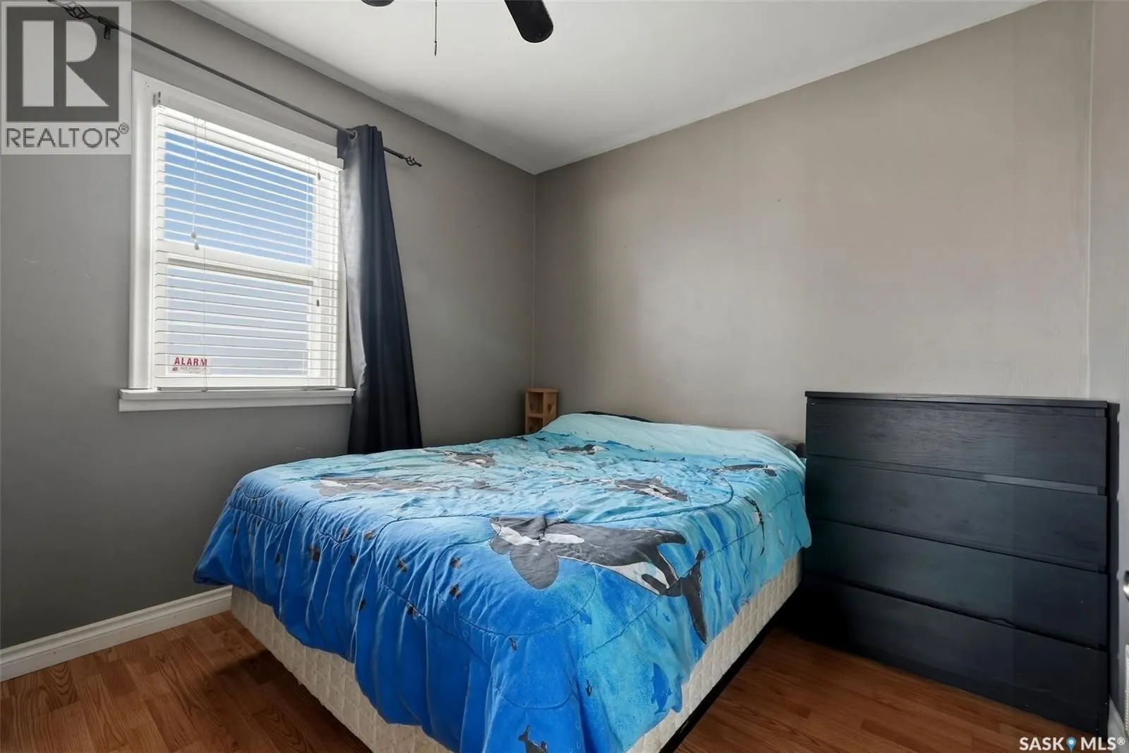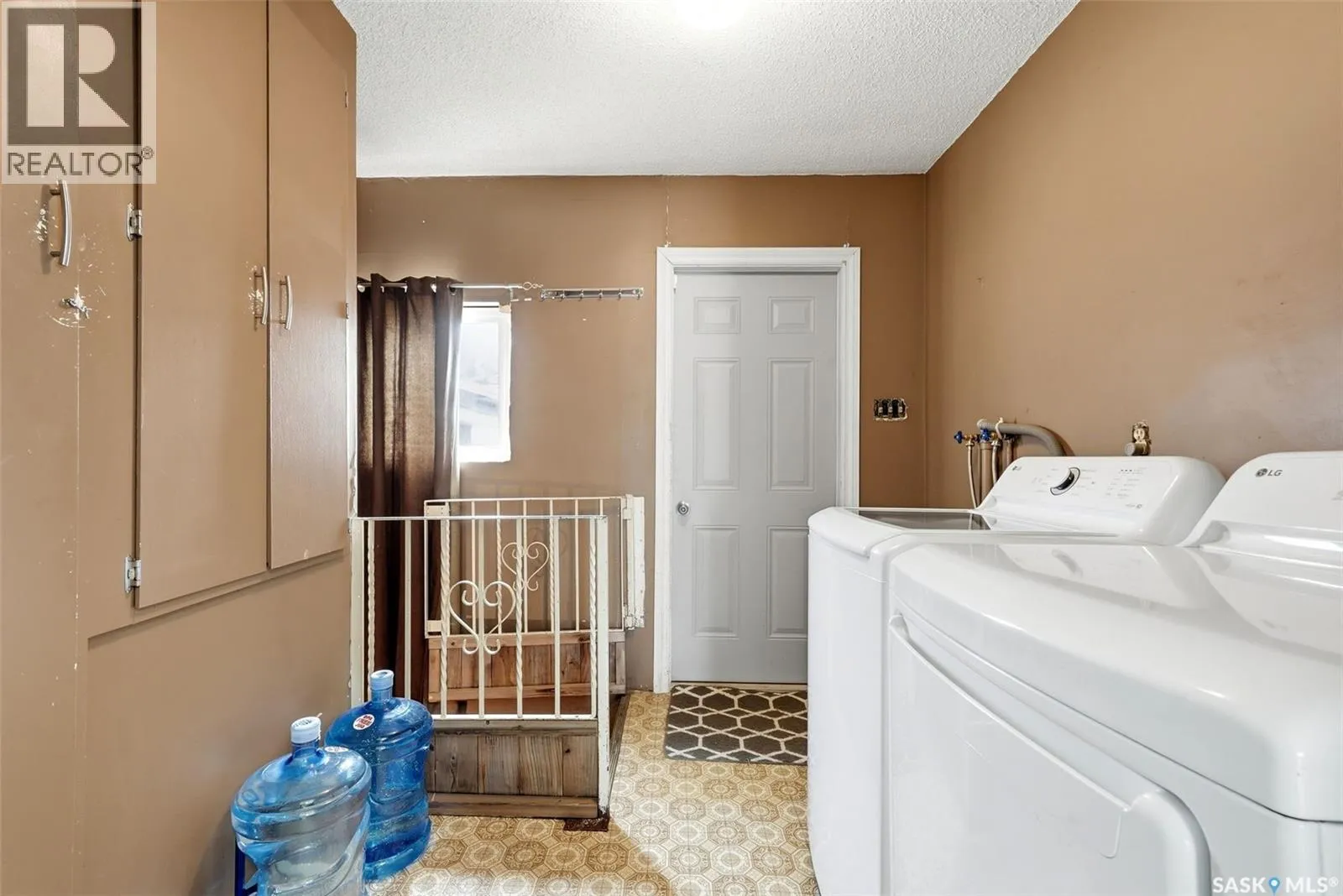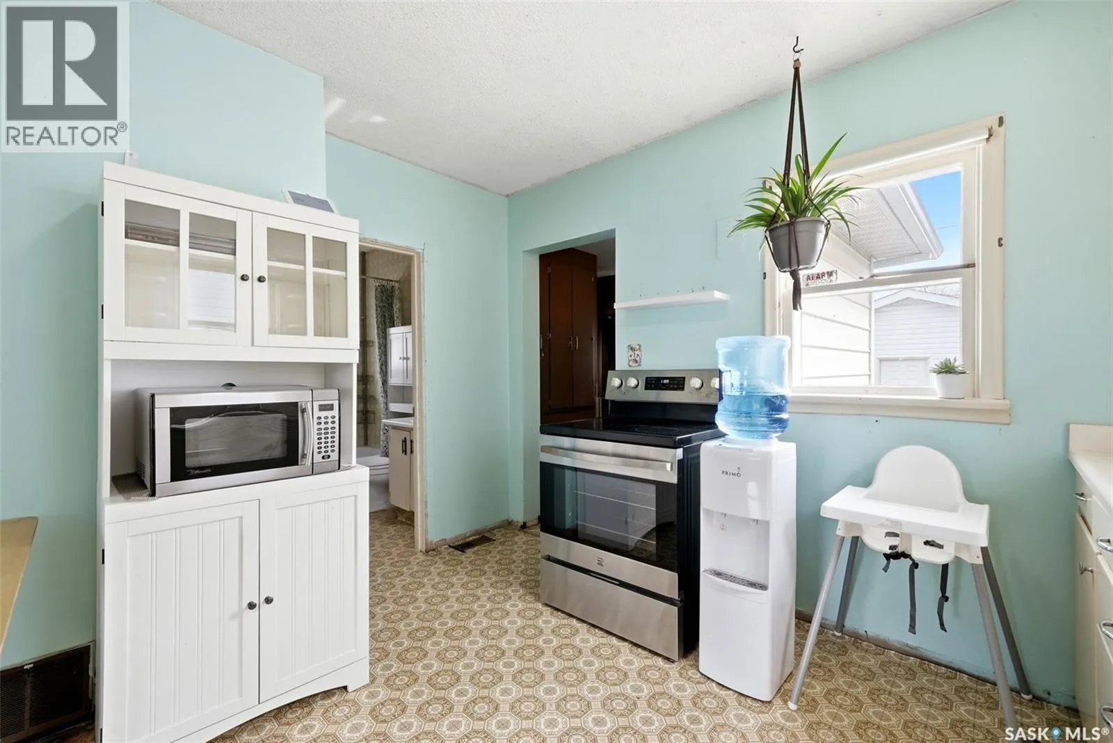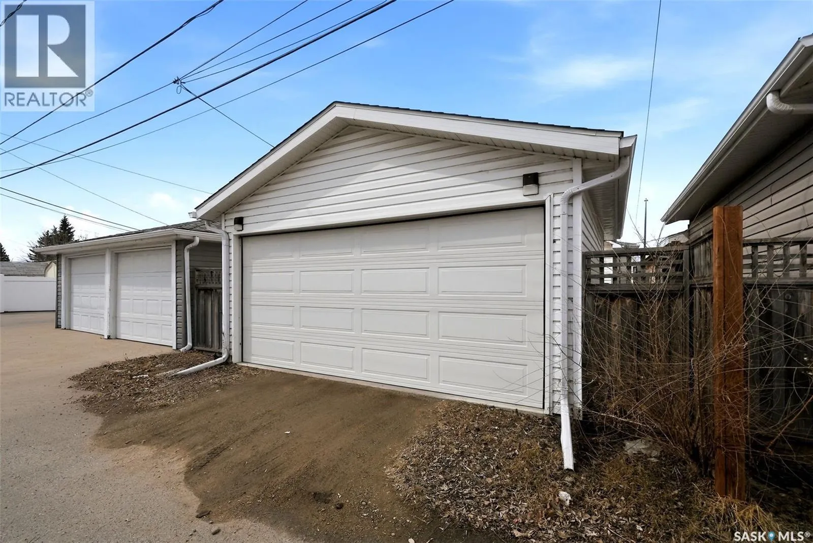 Plan: DV 270 Block: 37 Lot: 32 Sun-filled home in a highly convenient location! Just minutes from downtown, east-end amenities, schools, hospital, and Wascana Park, this property is a fantastic opportunity for first-time buyers, downsizers, or investors looking to upgrade and generate rental income. The main floor features a bright, open living space with newer vinyl plank flooring throughout the living room and bedrooms. The west-facing living room is filled with natural sunlight, creating a warm and inviting atmosphere. There are two good-sized bedrooms on the main level. The primary bedroom boasts large windows for plenty of natural light (note: no closet, but wardrobe can be included if desired). A full 4-piece bathroom and a functional kitchen/dining area complete the main living space. At the back of the home, youâll find a convenient porch with built-in storage cabinets and main floor laundry, with access to the backyard and stairs leading to the basement. The basement is currently used for storage and has a 3-piece bathroom - ready for improvements to suit your lifestyle. The property also includes a spacious 2-car garage (18' x 24') built in 2019 and wired for 240 amps, offering ample room for parking, storage, or workshop use. (id:27476)