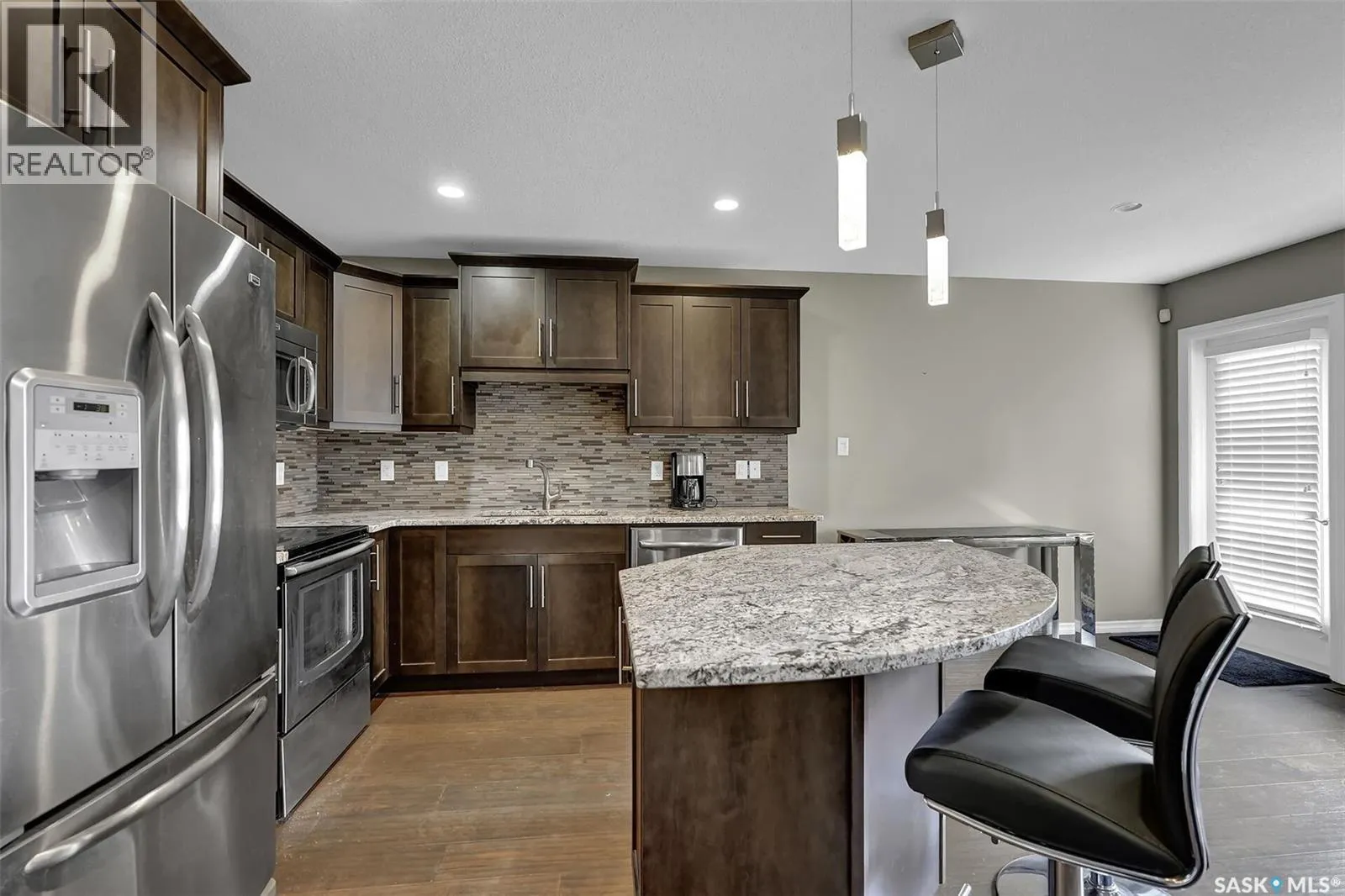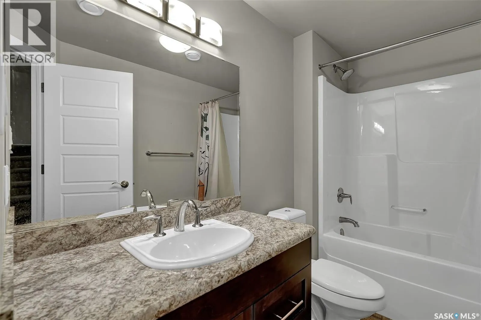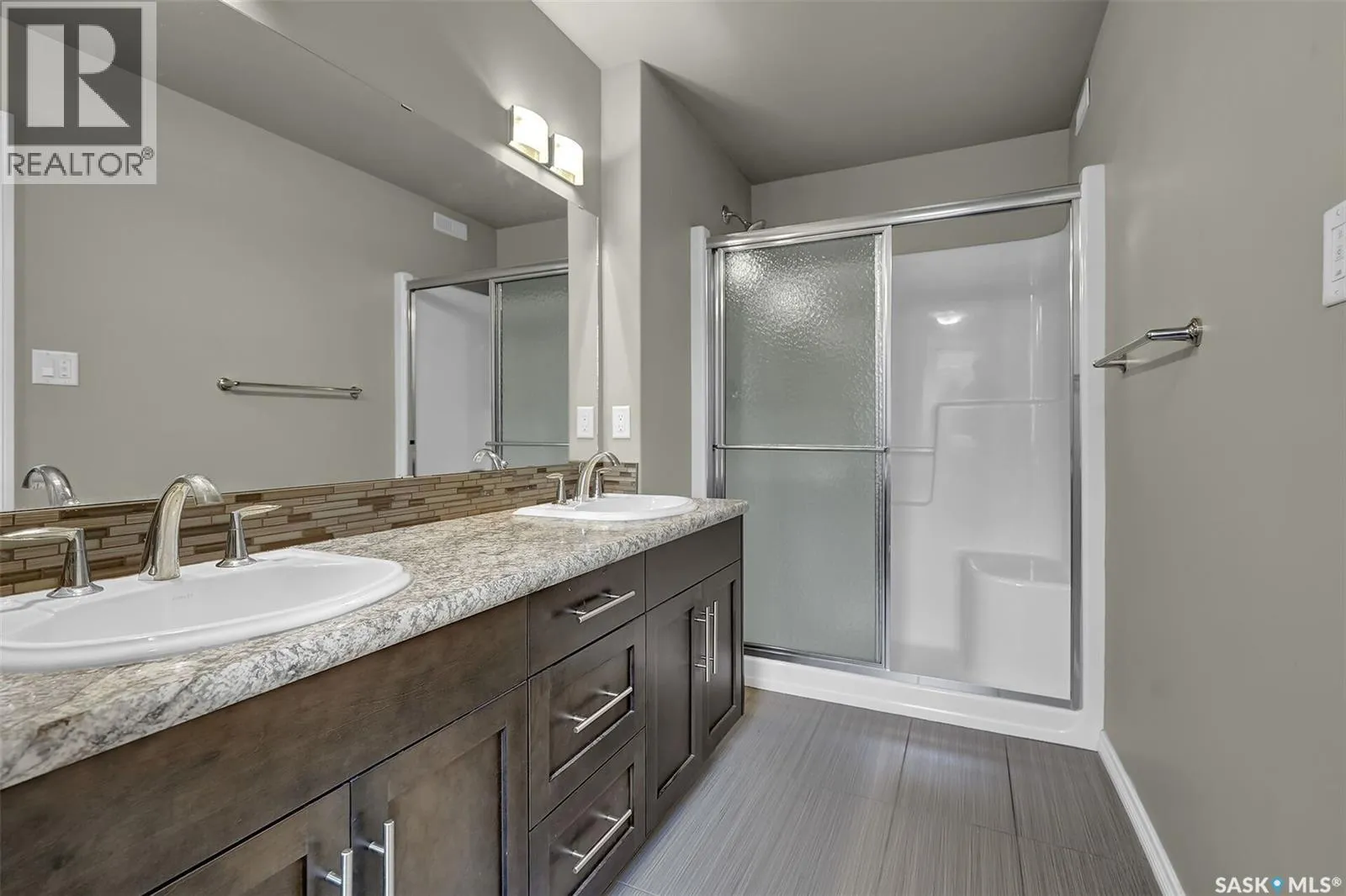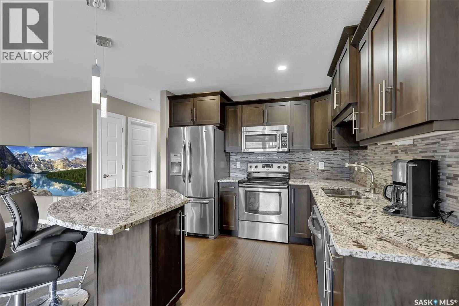 Welcome to this town home in The Creeks in terrific condition. Large foyer upon entering with conveinient direct entry door to single attached garage, also a 2 piece powder room. Main floor open concept. Kitchen with granite counters and back splash stainless steel appliances included. Combined DR/ LR. Garden door leading to back private yard. 2nd floor has 2 good sized bedrooms both with 4 piece ensuites one with soaker tub and double sinks , walk in closet. Second bedroom also a good size. Laundry area on this level also. Nicely finished lower level offers additional space for living, features a gas fireplace. A 4 piece bath on this level as well. Condo is in excellent move in condition. As per the Sellerâs direction, all offers will be presented on 04/20/2026 11:00AM. (id:27476)