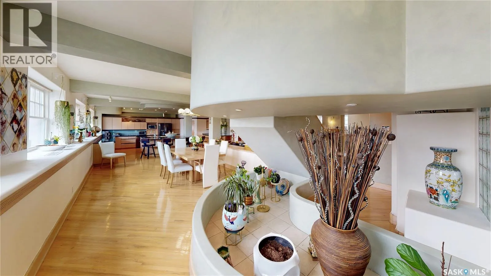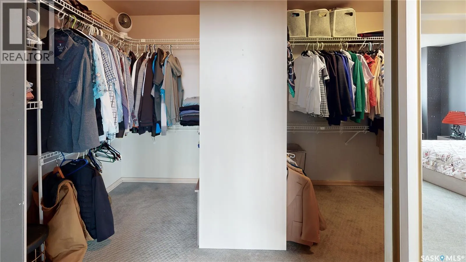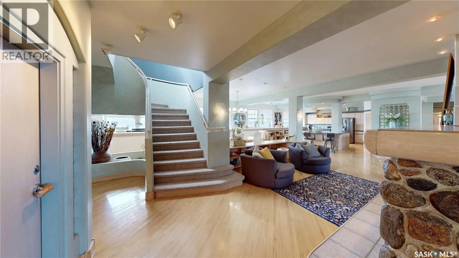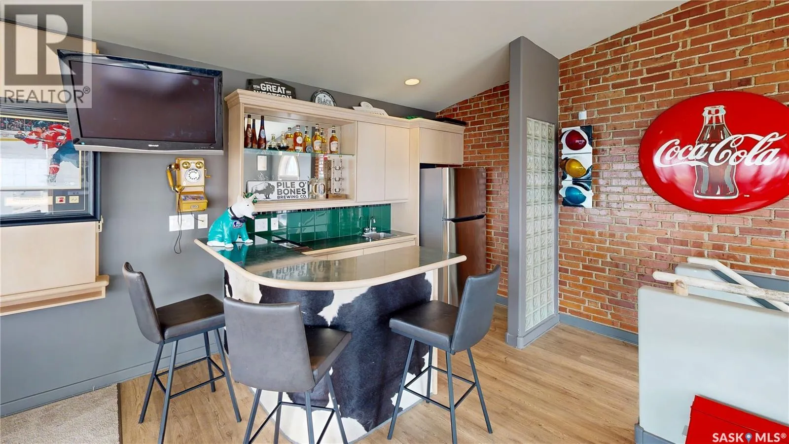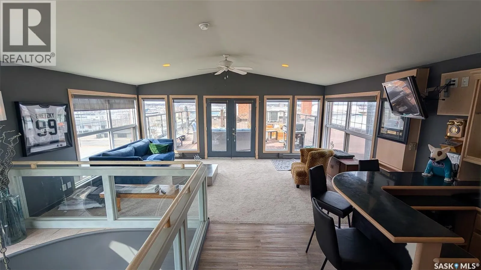 Welcome to Unit 400, the penthouse suite at 1150 Rose Street located in the vibrant Warehouse district. This 1913 built, 4917 square foot, apartment style warehouse condo has 5 bedrooms, 2 bathrooms and the grounds are completely gated. One of the most exceptional and rare highlights of this unit is the abundance of private parking spaces! There are 4 parking spots in the 56âx30â quadruple, detached, heated garage, 6 on the parking pad in front of the garage and 2 more on the side of the building! Upon entering this suite, you are welcomed into the foyer that opens into the family room with bright windows, a stone-surround wood burning fireplace and hardwood floors. The kitchen has a massive island with bar seating and the stainless steel fridge, stove, dishwasher, and garburator are all included. The open concept flows into the adjacent dining area. To the side is a versatile bedroom that also makes a wonderful office. On the opposite side of the stone fireplace, youâll find an expansive living room, offering a perfect balance of comfort and style. This area is complimented by a bedroom on one end and a cozy den on the other. The luxurious primary bedroom is spacious with a 5 piece en-suite bathroom featuring a huge bathtub, double vanity, glass shower and walk-in closet! Following that are two more bedrooms and the main 4 piece bathroom. Finishing off this level is the laundry room with tile flooring, plenty of extra storage space, a convenient wash sink, and a folding table. There is also access to the freight elevator. On the second level is a fabulous bonus room with wrap around windows, a wet bar with tile backsplash and access to your very own private rooftop deck! The ultimate spot to soak up the sun during the day and gather around the fire table with family and friends in the evening. Additional features include central air, the owned forced air boiler, gas water heater, water softener, RO system and both elevator and stair access. As per the Sellerâs direction, all offers will be presented on 04/20/2026 6:00PM. (id:27476)