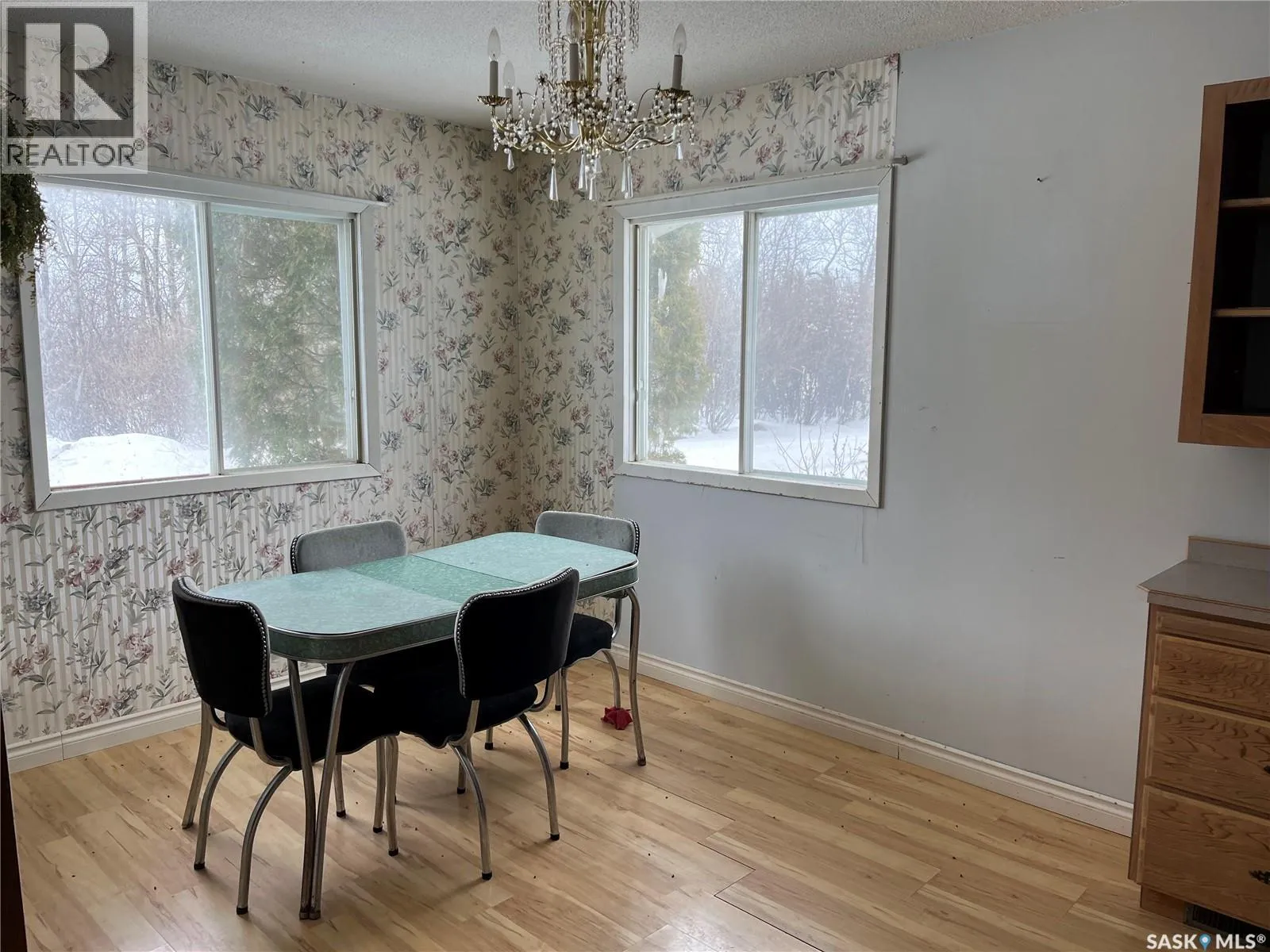 Part of NE 10-39-13 W2 Rural Address Rose Valley is a nice 10 acre parcel in a beautiful part of the Province close to great hunting, snowmobiling, lake life and more. The house features a story and a half portion with 3 bedrooms up, 1 on the main, laundry on main, and sunken living room featuring a wood burning fireplace. The other portion of the house has large long dining room, kitchen, full bathroom, and porch leading to a west facing deck. Second floor has a bathroom that has been disconnected. Upgrades include furnace, metal roof and some general cosmetic upgrades. The out buildings include a bail shed/warm up shed, barn, and garden shed. The property is well treed. (id:27476)