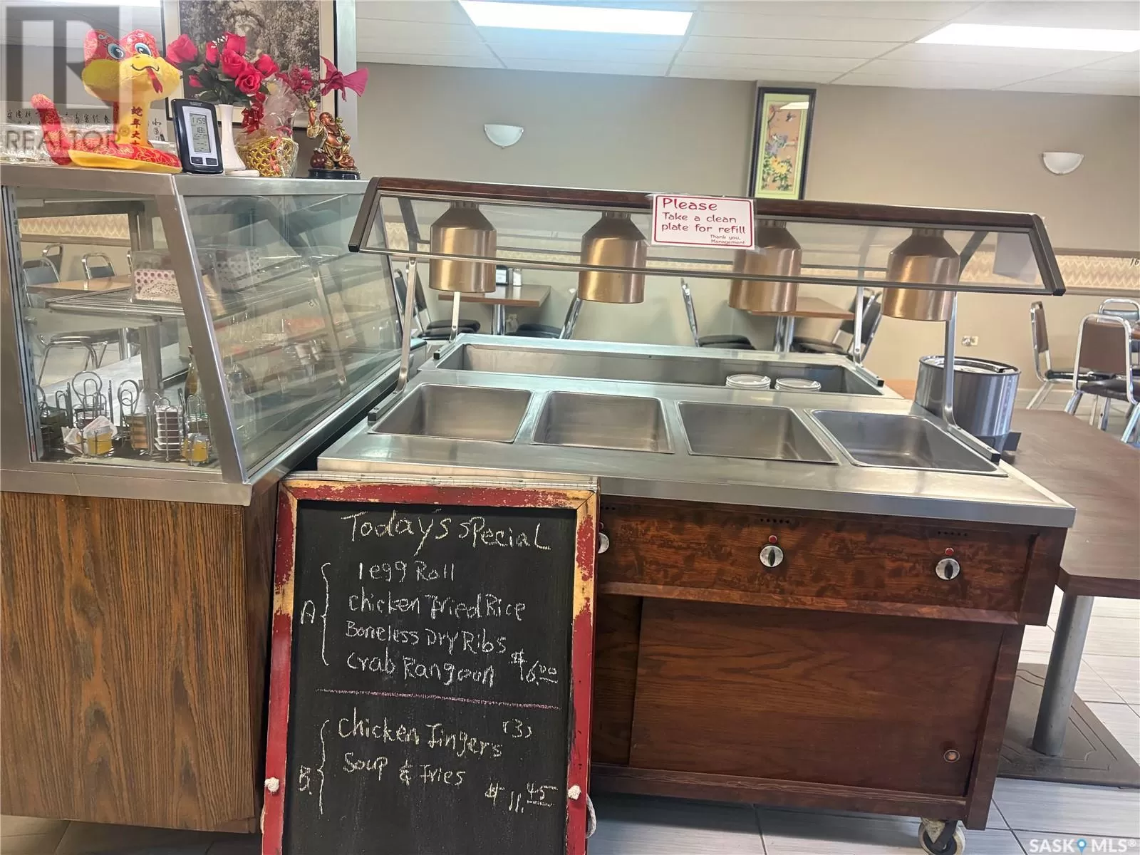 Long term family-owned restaurant for sale in Rosetown. 80 Seats offering Chinese food and western cuisine. Front parking and employee parking at the back. All equipment and machinery, fixtures and restaurant equipment are included except dishwasher (dishwasher is rented). Second floor has owner/employee living area with 5 bedrooms, 2 living rooms and 2 full bathrooms. Updated included A/C, hot water tank, shingle repairing, furnace upstairs and restaurant flooring. (id:27476)