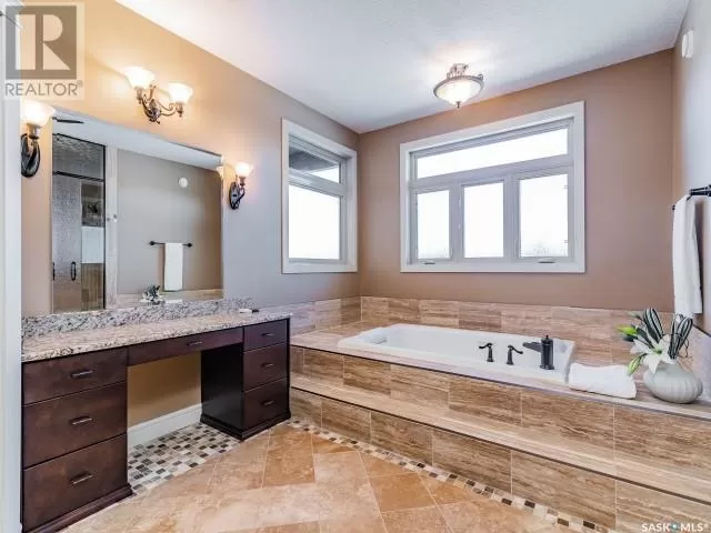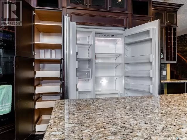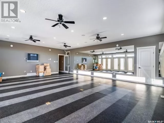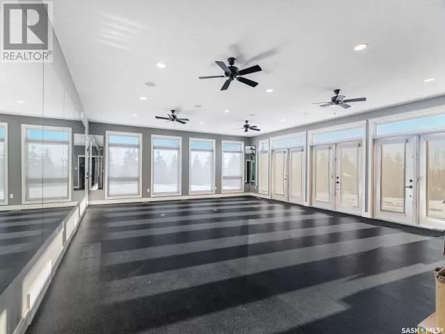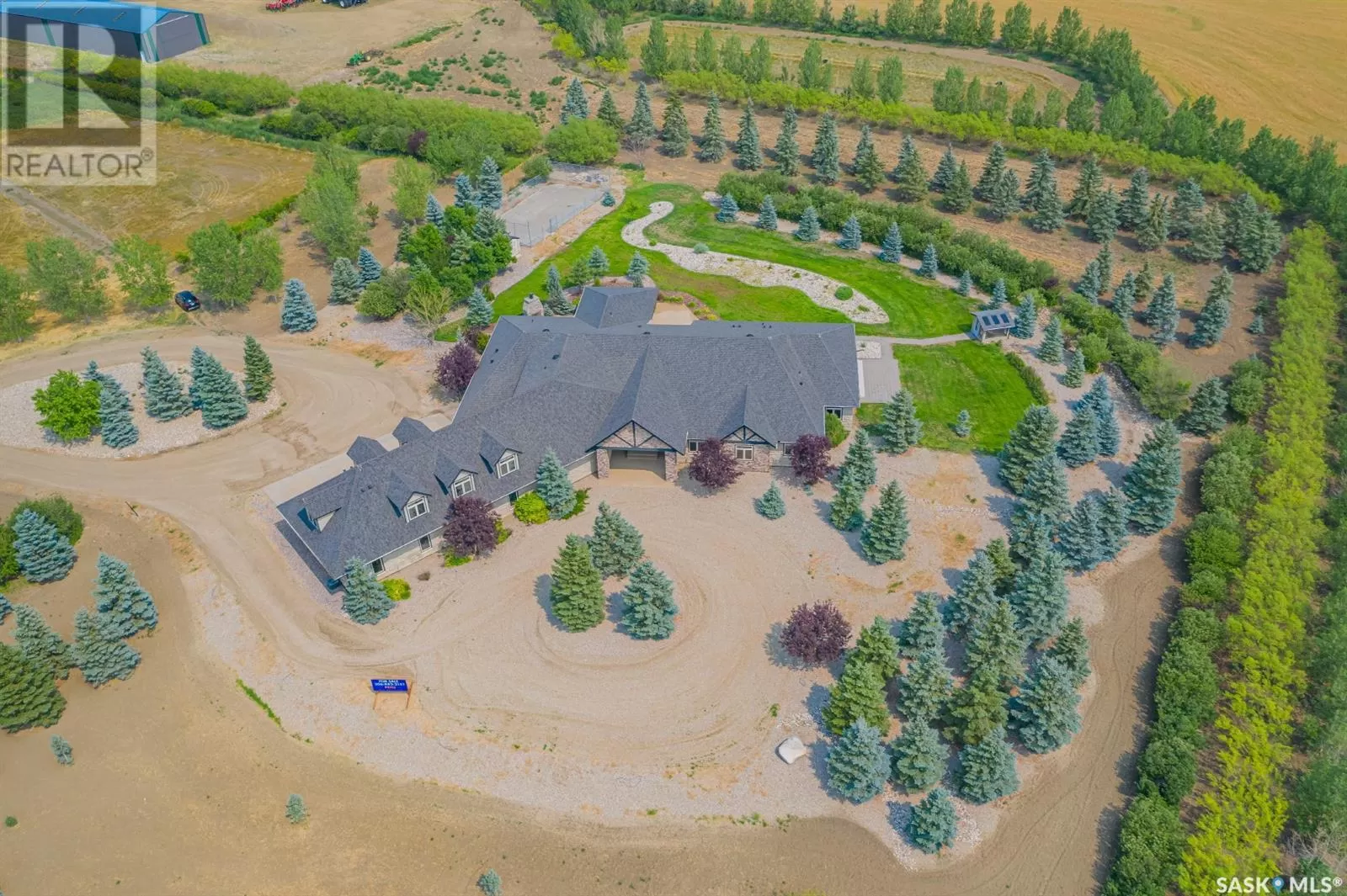 Exceptional Value â Custom Luxury on 10 Acres! Welcome to this one-of-a-kind custom-designed home and private oasis on the edge of Rosetown. Enjoy prairie views and country living at its finest in this expansive 7,538 sq. ft. estate. Built with premium materials and craftsmanship, this property offers unbeatable value. The elegant exterior combines cultured stone and Hardie board siding, surrounded by mature trees and professional landscaping. The 6,038 sq. ft. main floor features a grand entrance, stately French doors, and expansive windows offering unobstructed sight lines. High ceilings and wide hallways add to the homeâs distinguished feel. The chefâs kitchen includes ample storage, granite countertops, a 12â island, double ovens, and a spacious pantry. A bright eating nook is filled with natural light from south-facing windows. Just off the kitchen, the cozy family room features a stonework gas fireplace. The formal dining area is sophisticated, rich with details, and spaciousâideal for hosting large gatherings. One wing of the main floor includes five bedrooms, four baths, a laundry room, a den, and a generous exercise room/studio. The Primary bedroom boasts a large walk-in closet, a 5-piece ensuite spa bathroom, and garden doors opening onto a private patio. The additional bedrooms have built-in drawers and TV/gaming hookups. Upstairs, a 1,500 sq. ft. entertainment area is accessed by a hardwood and slate staircase with cultured stone accents. The theatre room includes raised flooring, lighting, and projector hookups. A separate games room with a full bar offers the perfect space for entertaining. The heated 4-car attached garage leads into a spacious mudroom with ample storage. Outside, enjoy a partially covered aggregate patio, a beautiful wood-burning fireplace, and natural gas BBQ hookups. Recent inspection completed and routine seasonal maintenance has been done - this truly a one-of-a-kind sanctuary is ready for it's new owners! (id:27476)