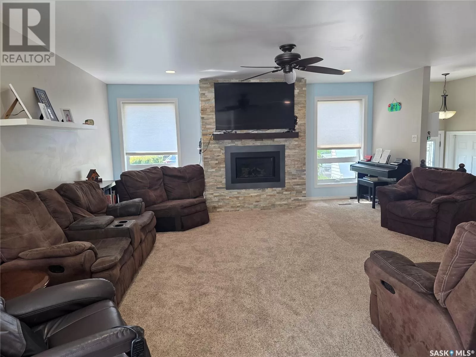 Enjoy wide-open prairie views from this large, solid bungalow offering space, comfort, and modern updates located in a quiet cul-de-sac! This 5-bedroom, 3-bathroom home features a beautifully renovated kitchen with new cabinetry, a cozy stone natural gas fireplace in the living room, main floor laundry and a spacious main floor layout. Step out onto the covered deckâperfect for relaxing or entertaining, rain or shine âand enjoy the privacy of the fully fenced yard. A rare combination of efficiency with double walls, great foundation, furnace upgraded (2012), water heater (2019) and new shingles just installed!! The attached double garage is large and ready to house toys, vehicles and whatever else from the elements. Whether you're looking for room to grow or a peaceful retreat, this home delivers both. Donât miss your chance to own a prairie-view gem! We have a video tour available! (id:27476)