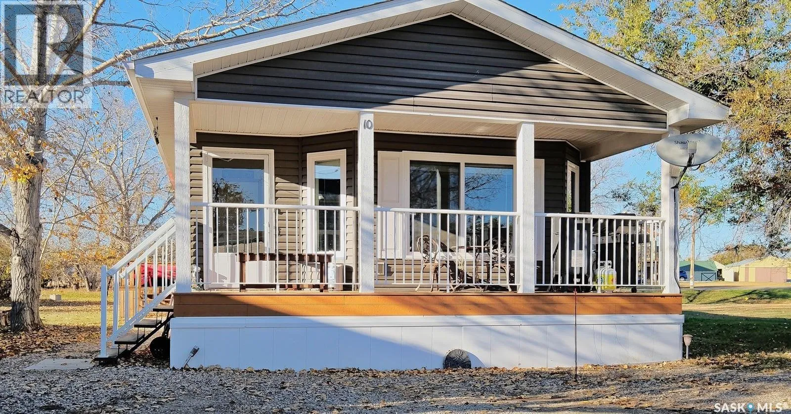 WARM, WELCOMING, COZY AND COMFORTING! Buffering a patchwork of farmers' fields that instantly put you at ease - is a stunning residence set upon the largest lot in the park. Offering more than 1,500 square feet of beautifully designed living spaces, 10 Prairie View Crescent is quietly nestled on the edge of town! Radiating refined southern charm, snuggle up on the front veranda sheltered from a soothing rain as you savour the silence. Step inside where the homeâs expansive open-concept branches out, expertly tailored for both comfort and elevated entertaining. Bathed in natural light, the home showcases a statement wood-burning fireplace that creates a calming ambiance, wrapping you in warmth like a gentle hug. Seamlessly integrated with the dining room and kitchen - effortless flow meets everyday function. From bar seating for connective conversations to spaces destined for holiday hosting - the kitchen has a wealth of countertops, abundant cabinetry, practical pantry and intuitive configuration making it traditional and timeless. Follow the hallway to two secondary bedrooms, one skillfully suited for a home office, the other is bright and looks out at the yard. Well-appointed and generously sized, the rooms are just steps from a dazzling 4-piece bathroom. Then thereâs the spacious master bedroom that is truly the highlight! Secluded with a soft muted palette that lends itself to some down time. Wake to the sunrise feeling restored then slip into your massive walk-in closet organized with seasonal sweaters and formal attire! â¦and thatâs NOT all! Woven within the primary is an impressive 4-piece ensuite with a substantial soaker tub with jets to rest and relax. A laundry room off this wing of the home provides ample storage and leads you out to a side deck and into your picturesque yard. As the golden sunset melts into the horizon, you are surrounded by lush green space, mature hedges and towering trees along with a nearby walking trail to help you reconnect! (id:27476)