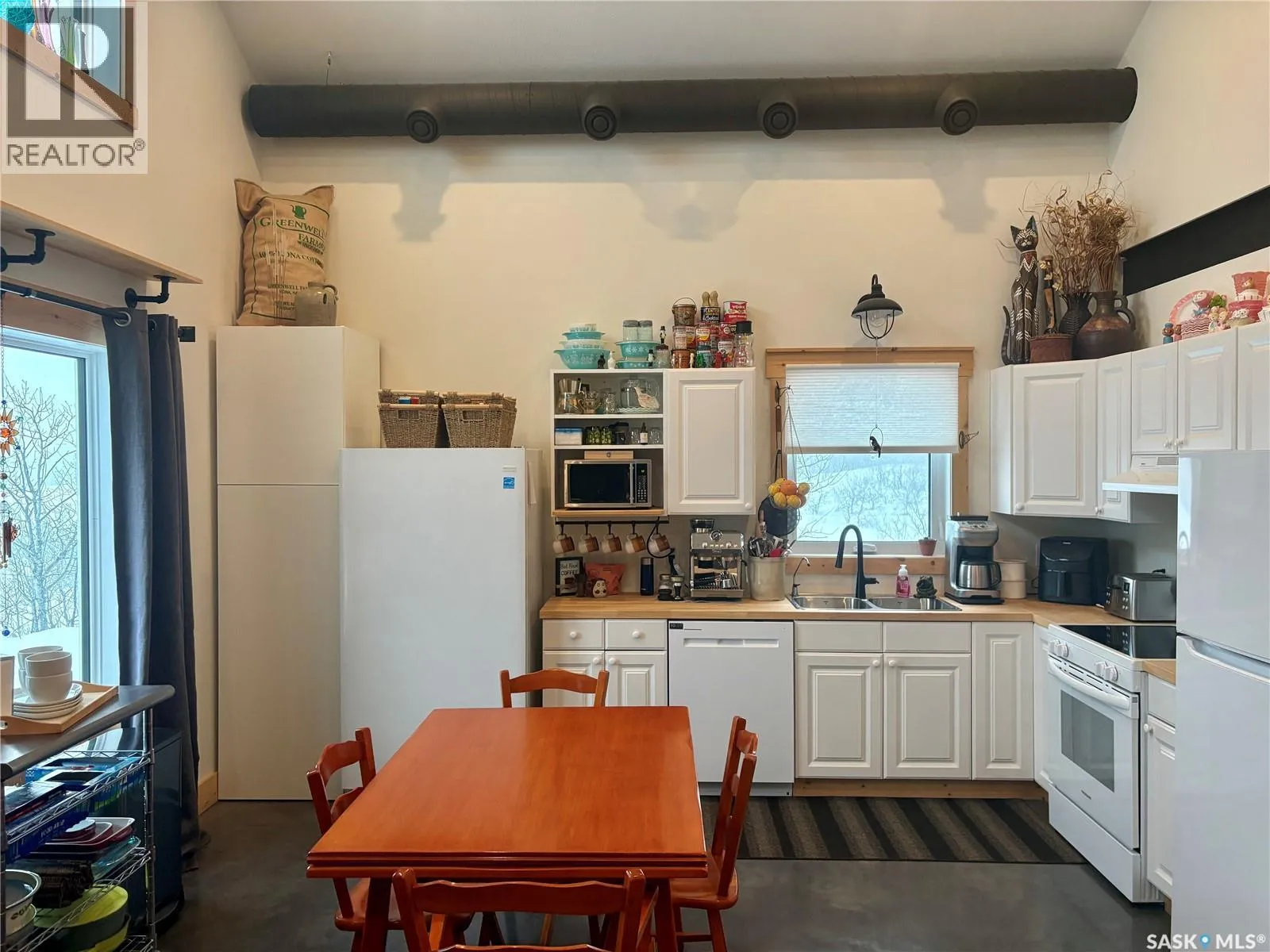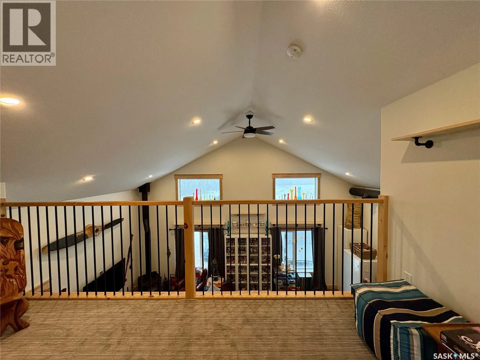 Nestled in the gently rolling hills along the banks of the South Saskatchewan River, this stunning riverfront property offers breathtaking views, abundant wildlife, and unforgettable prairie skies. A thoughtfully maintained mulched trail winds down to the river, creating the perfect setting for peaceful morning walks or evening adventures. The home welcomes you with a warm, cozy cabin feel, highlighted by a wood stove and an inviting open-concept living area designed for comfort and connection. Large windows frame the natural beauty outside. The main floor features a cozy bedroom, a stylish 3-piece bathroom with heated tile floors, and the convenience of main floor laundry. Upstairs, the versatile loft space serves beautifully as a second bedroom, and/or additional living areaâideal for relaxing, working, or creating your own private escape. The impressive heated double garage offers ample space for vehicles, hobbies, and storage, complete with an additional overhead door for easy access to recreational toys and equipment. A partially roughed-in bathroom adds flexibility and future potential. Set on over six acres, this property provides exceptional privacy and room to roam. Enjoy established garden space, a zip line for the kids, and endless opportunities to explore, entertain, and unwind. Whether youâre seeking a year-round residence or a peaceful retreat, this remarkable riverfront acreage delivers space, serenity, and lifestyle all in one. (id:27476)