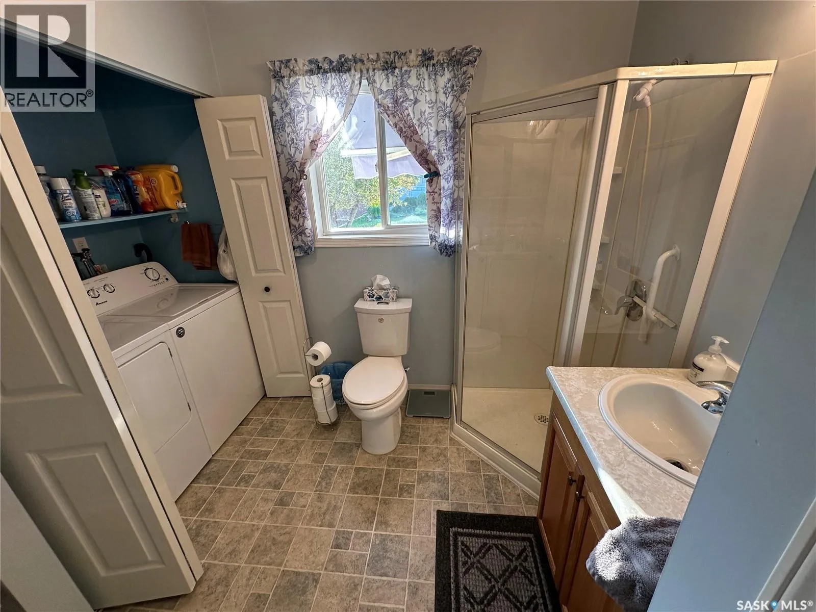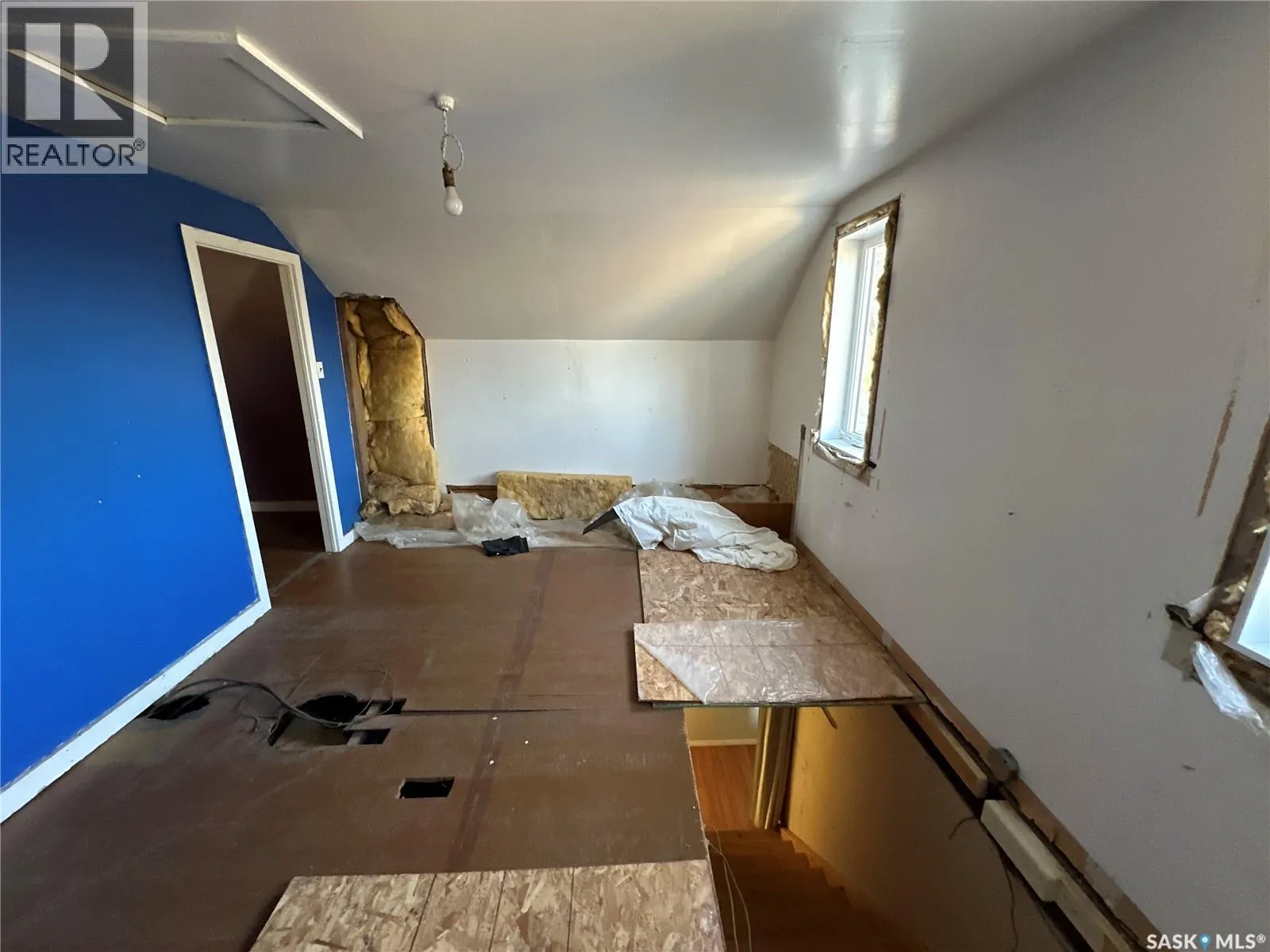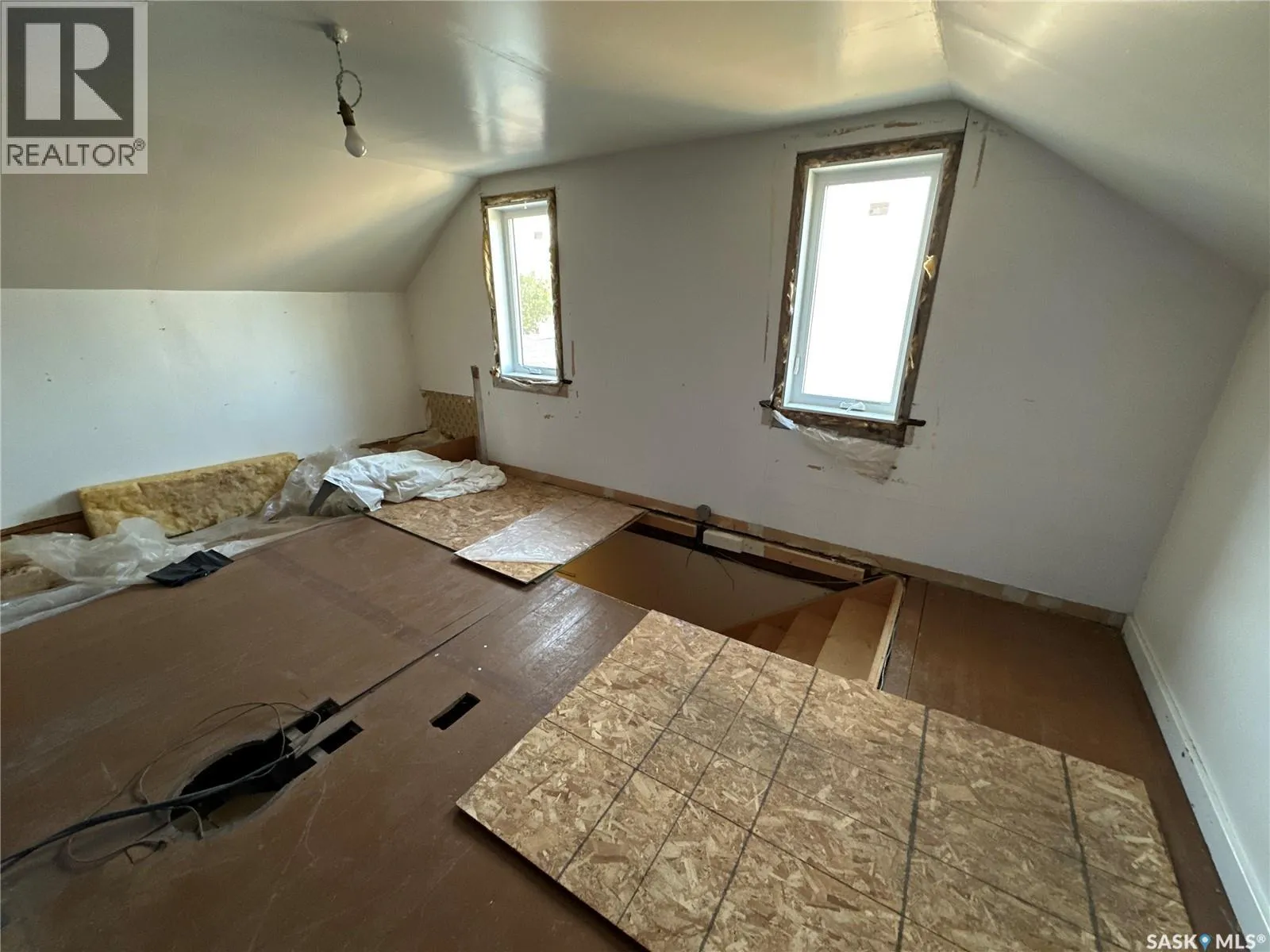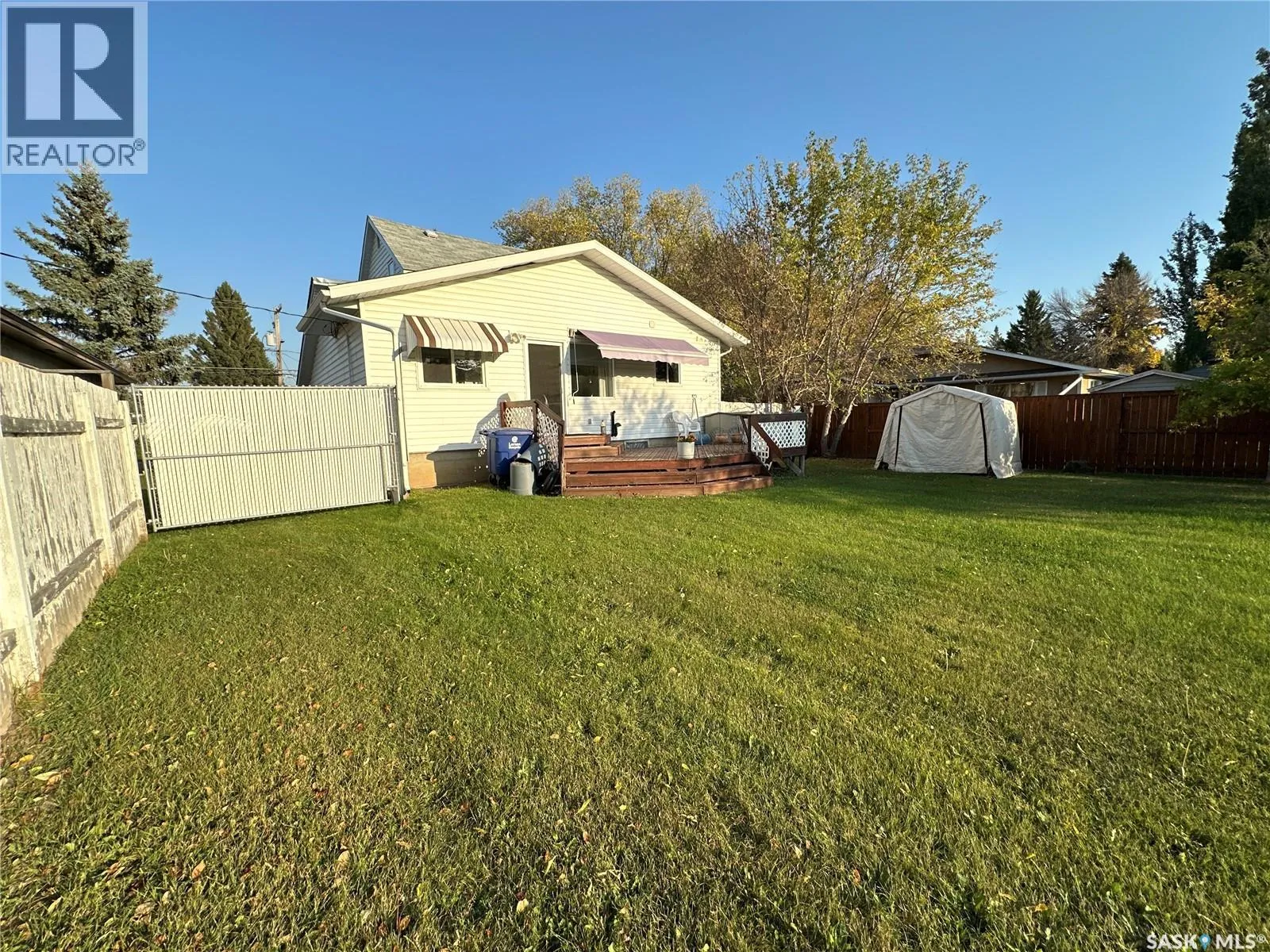Great location in Rosthern. 1272 sq ft 1 1/2 storey house on a large 55' x 207' lot in Rosthern with room for a rear garage with access from the front drive or the back alley! Wider stairs lead up from the entrance to the main floor that was extensively renovated! High efficient furnace & water heater installed in July 2020, also in 2009 new wiring & insulation, windows & siding with styrofoam insulation underneath, shingles, kitchen & main floor laundry/bath with a tub and a shower. The main floor also has a large living room and a second dining room. A wide stairway also leads to the very functional basement which has a large family room, a storage room, den or office space, and a 1/2 bath in the utility room. Again wide stairs lead to the second floor which remains un-renovated with a large bedroom and a family room that together could be converted to two nice bedrooms. (id:27476)