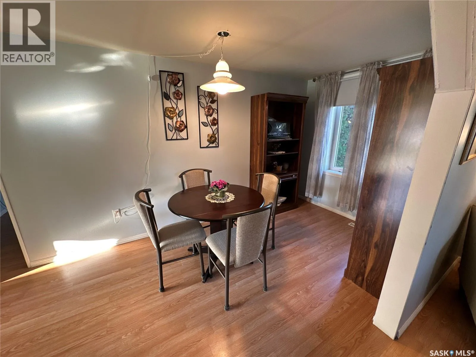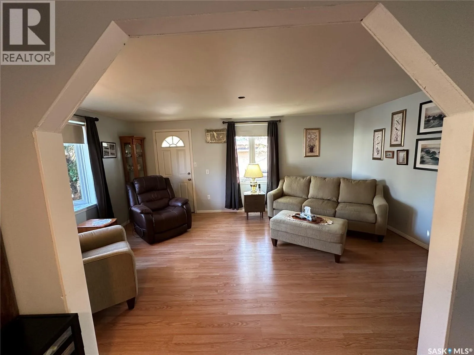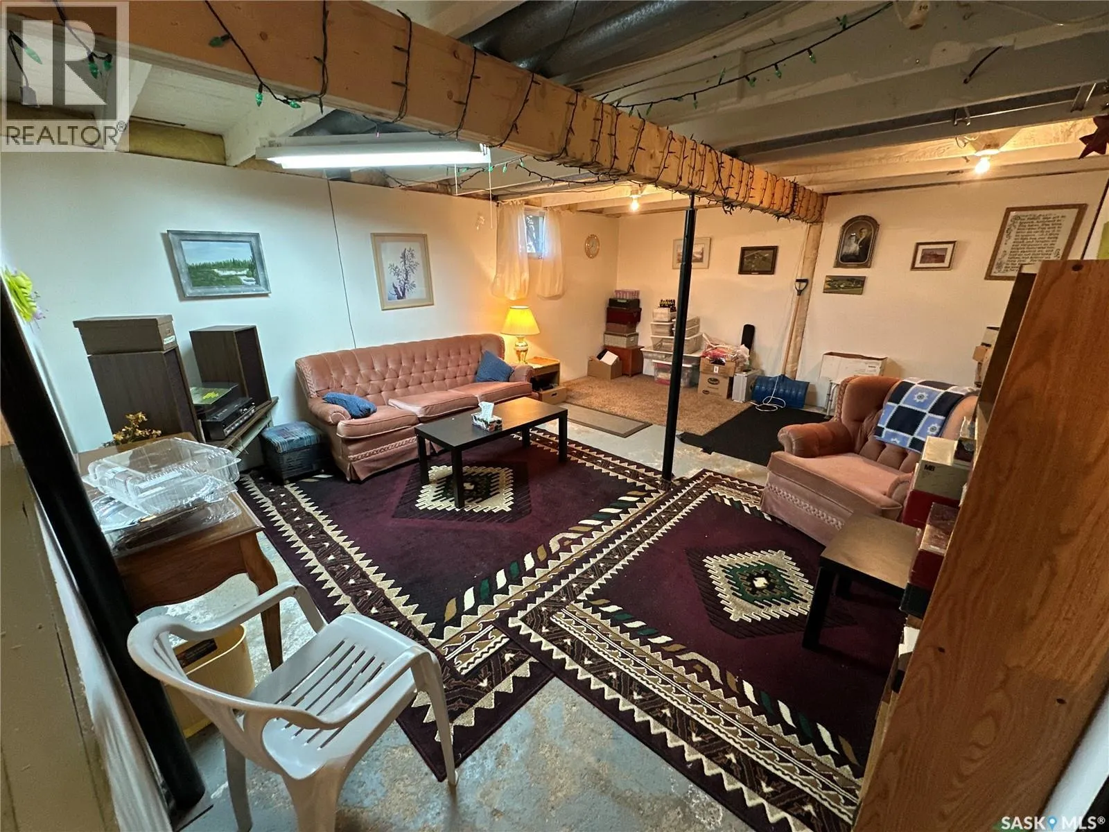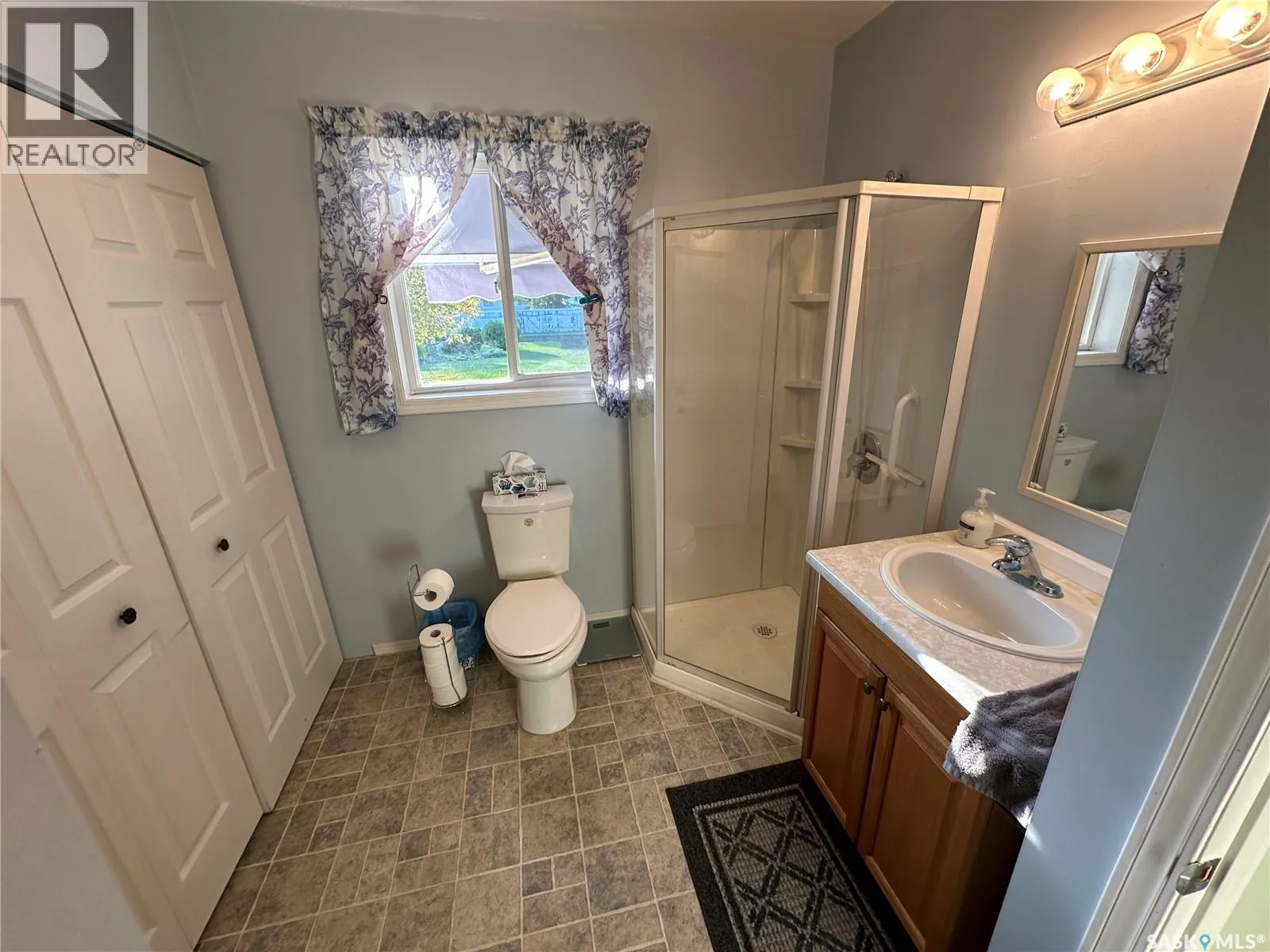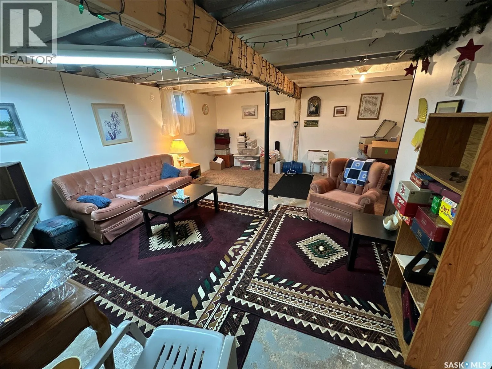 Great location in Rosthern. 1272 sq ft 1 1/2 storey house on a large 55' x 207' lot in Rosthern with room for a rear garage with access from the front drive or the back alley! Wider stairs lead up from the entrance to the main floor that was extensively renovated! High efficient furnace & water heater installed in July 2020, also in 2009 new wiring & insulation, windows & siding with styrofoam insulation underneath, shingles, kitchen & main floor laundry/bath with a tub and a shower. The main floor also has a large living room and a second dining room. A wide stairway also leads to the very functional basement which has a large family room, a storage room, den or office space, and a 1/2 bath in the utility room. Again wide stairs lead to the second floor which remains un-renovated with a large bedroom and a family room that together could be converted to two nice bedrooms. (id:27476)
