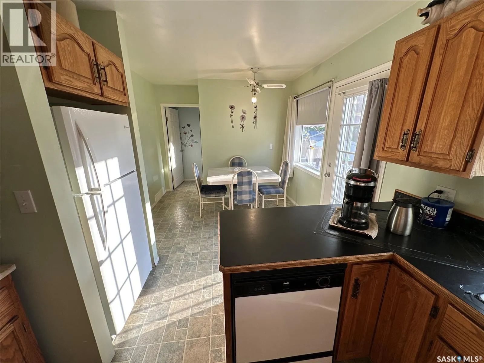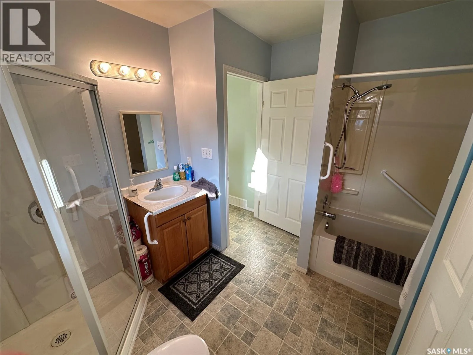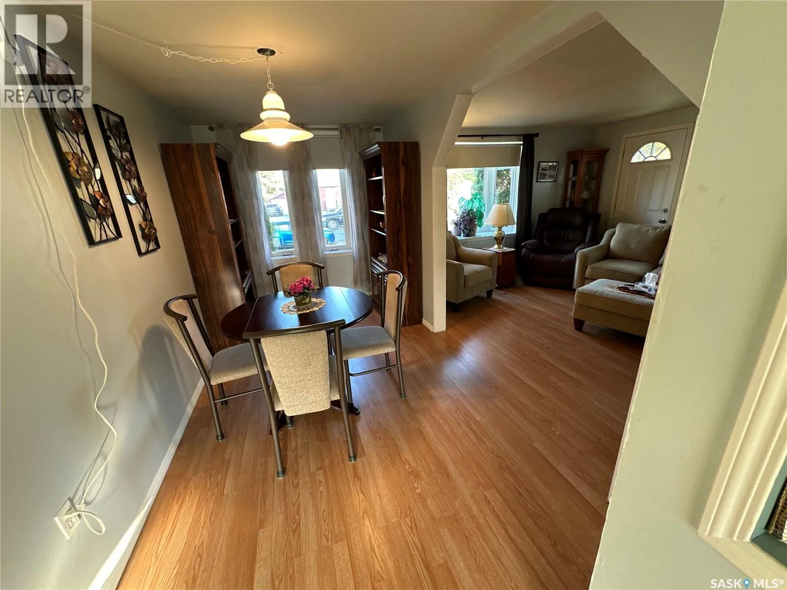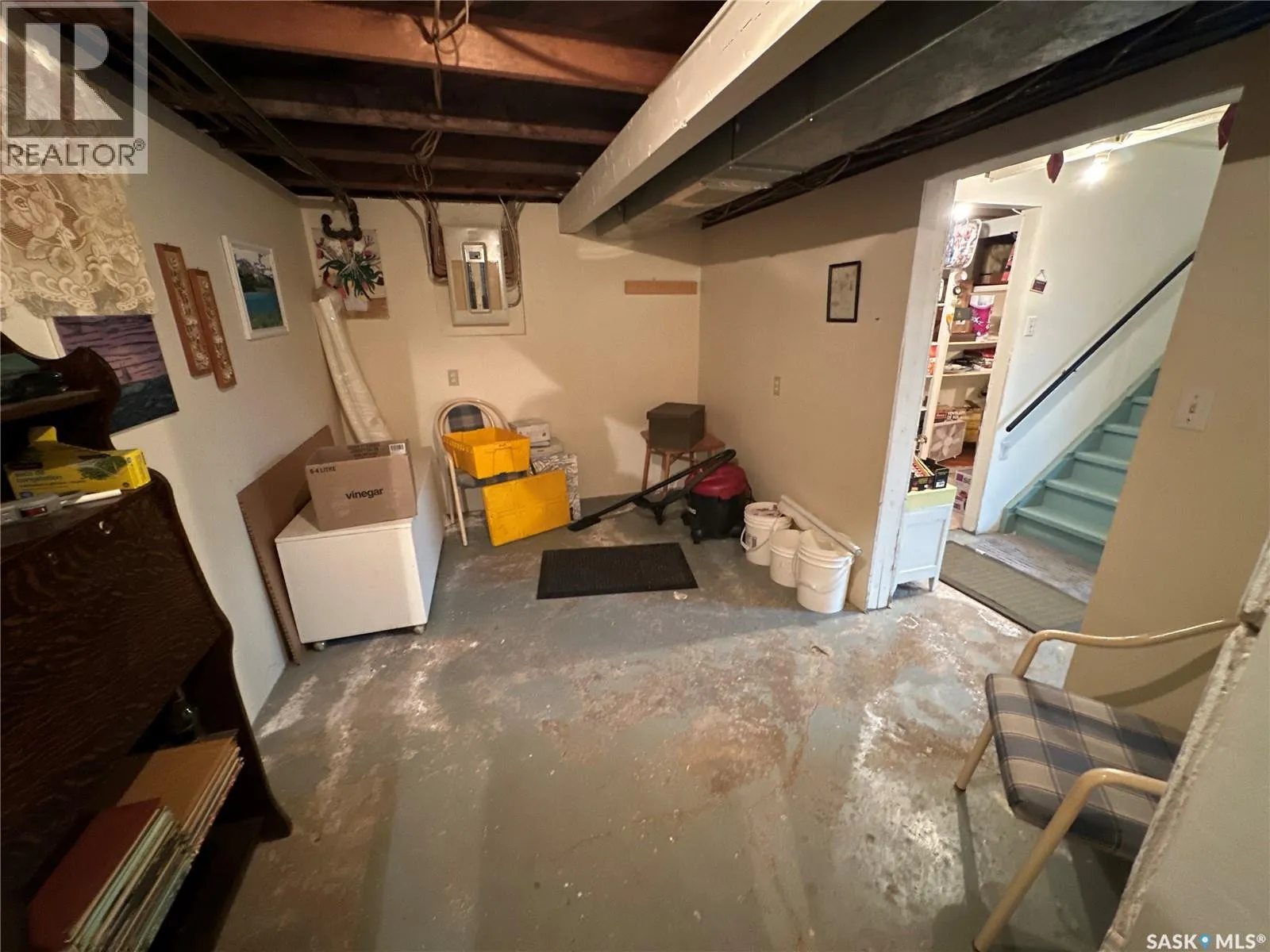 Great location in Rosthern. 1272 sq ft 1 1/2 storey house on a large 55' x 207' lot in Rosthern with room for a rear garage with access from the front drive or the back alley! Wider stairs lead up from the entrance to the main floor that was extensively renovated! High efficient furnace & water heater installed in July 2020, also in 2009 new wiring & insulation, windows & siding with styrofoam insulation underneath, shingles, kitchen & main floor laundry/bath with a tub and a shower. The main floor also has a large living room and a second dining room. A wide stairway also leads to the very functional basement which has a large family room, a storage room, den or office space, and a 1/2 bath in the utility room. Again wide stairs lead to the second floor which remains un-renovated with a large bedroom and a family room that together could be converted to two nice bedrooms. (id:27476)