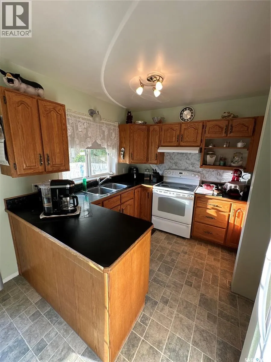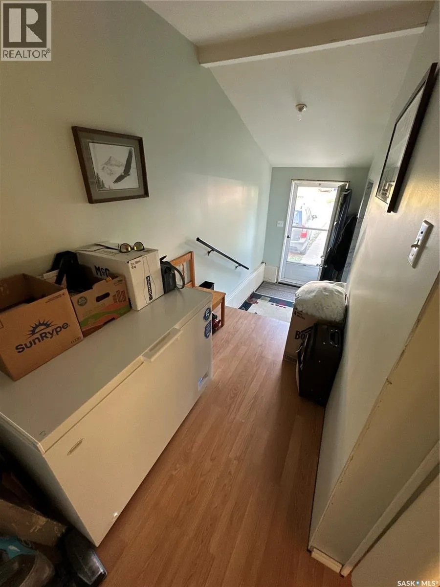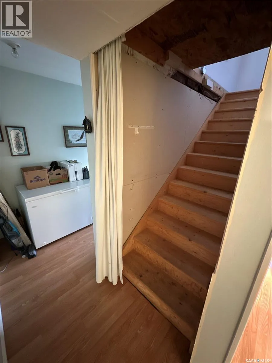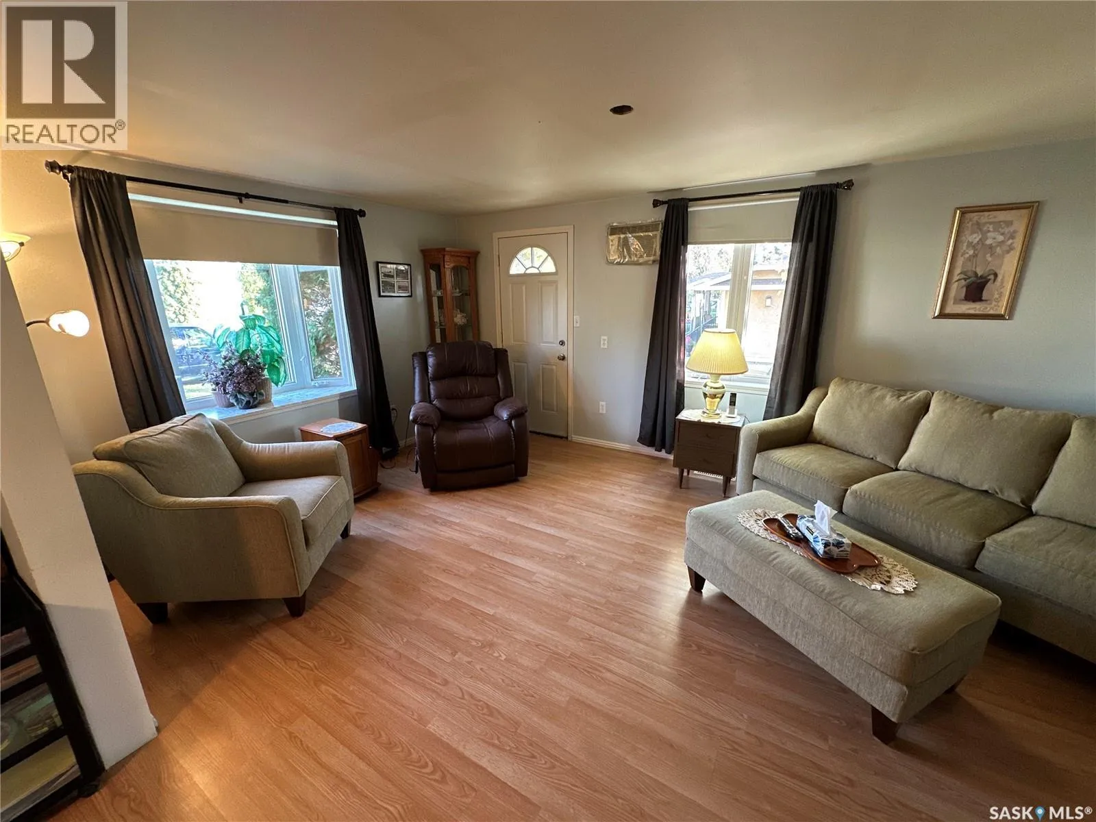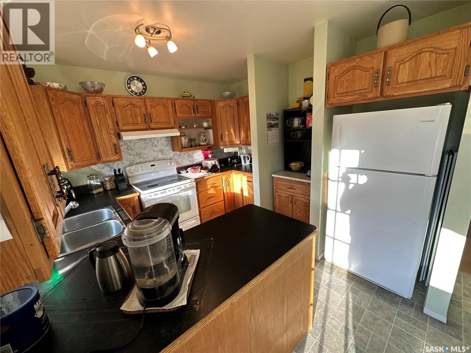 Great location in Rosthern. 1272 sq ft 1 1/2 storey house on a large 55' x 207' lot in Rosthern with room for a rear garage with access from the front drive or the back alley! Wider stairs lead up from the entrance to the main floor that was extensively renovated! High efficient furnace & water heater installed in July 2020, also in 2009 new wiring & insulation, windows & siding with styrofoam insulation underneath, shingles, kitchen & main floor laundry/bath with a tub and a shower. The main floor also has a large living room and a second dining room. A wide stairway also leads to the very functional basement which has a large family room, a storage room, den or office space, and a 1/2 bath in the utility room. Again wide stairs lead to the second floor which remains un-renovated with a large bedroom and a family room that together could be converted to two nice bedrooms. (id:27476)
