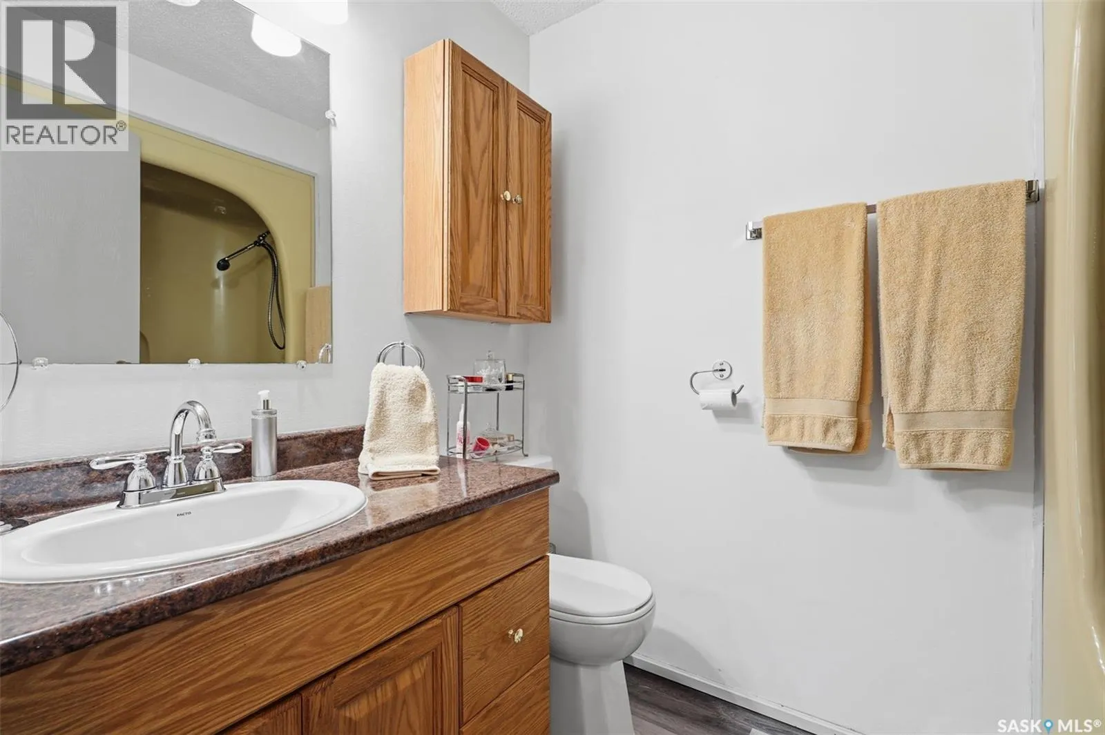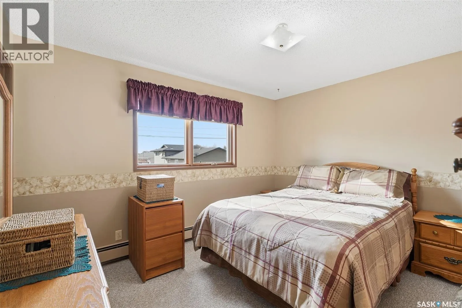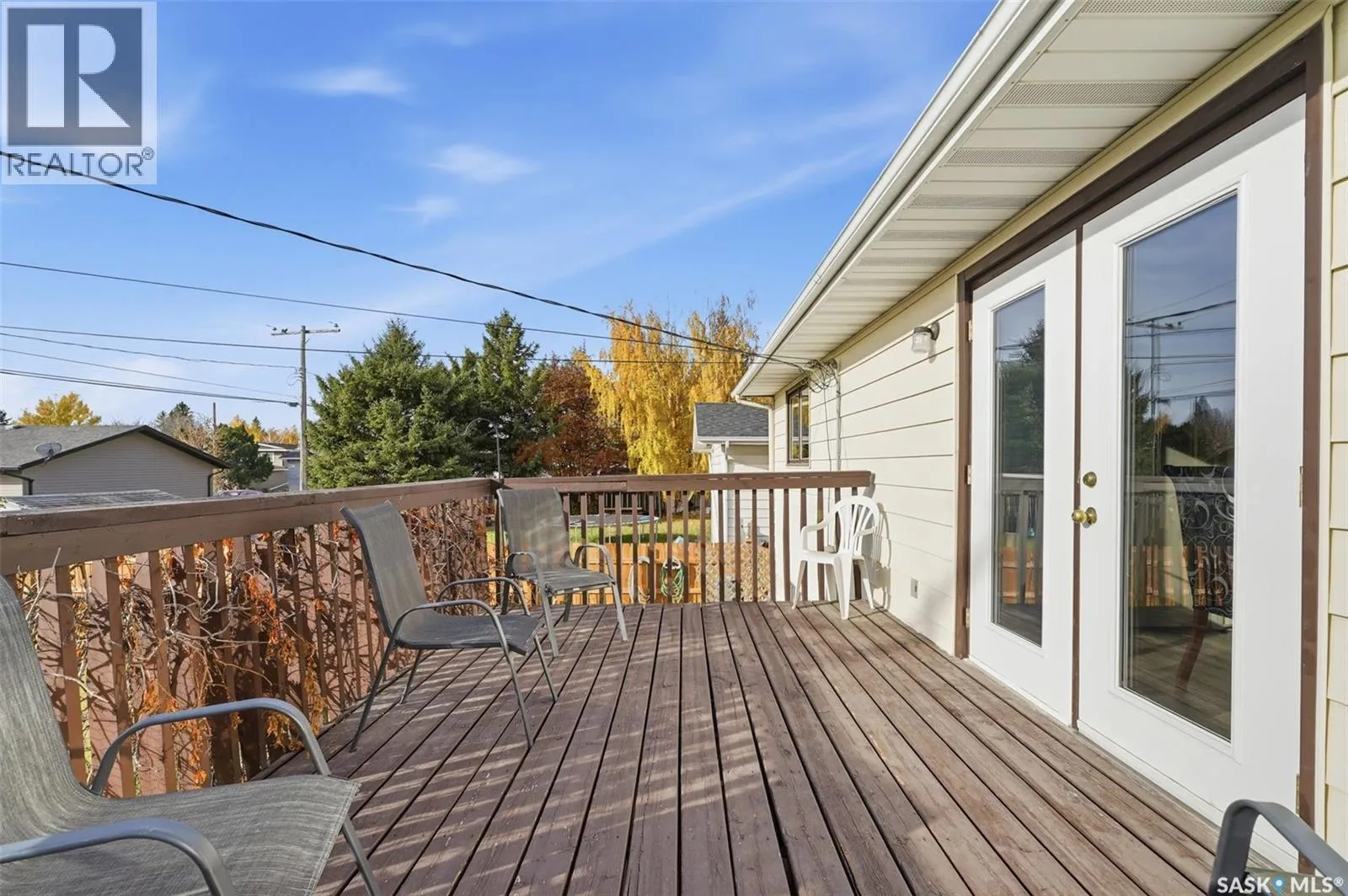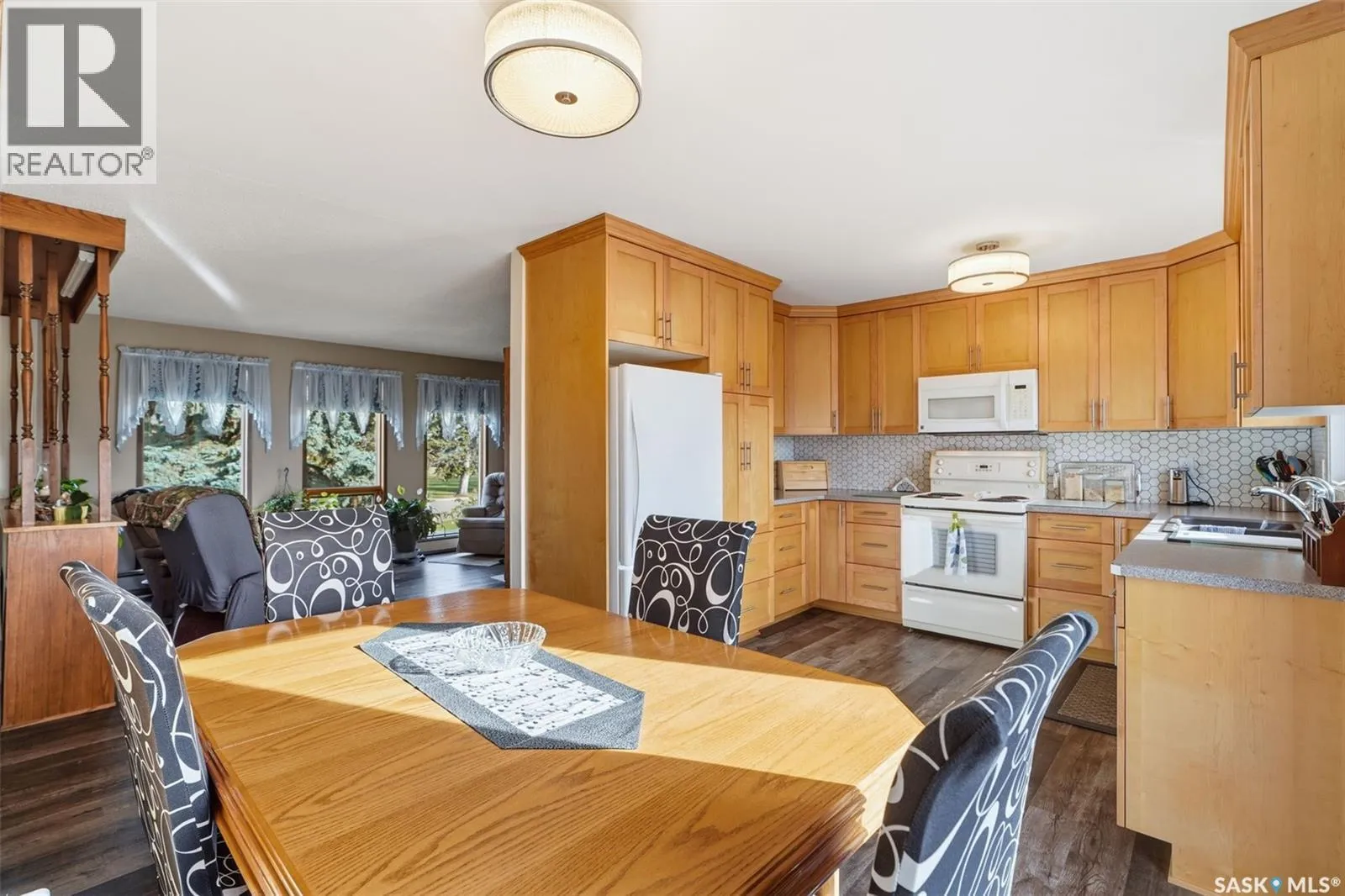 Welcome to this spacious bilevel home located in the friendly community of Rosthern, perfectly positioned across from a peaceful green space and soccer field in a quiet neighborhood. Step inside to a beautifully renovated kitchen and living room that offer a bright and welcoming open layout. The main level features two comfortable bedrooms including a primary with its own ensuite bath. The lower level adds even more living space with two additional bedrooms, ideal for family or guests. Enjoy outdoor living on the beautiful deck overlooking a well-kept backyard, perfect for relaxing or entertaining. An attached garage adds convenience and valuable extra storage. This is a wonderful opportunity to move into a great home in a great location. Come see what Rosthern has to offer, from the recently built school, hospital, parks, arena, 18 hole golf course, restaurantâs, cafeâs and more! (id:27476)