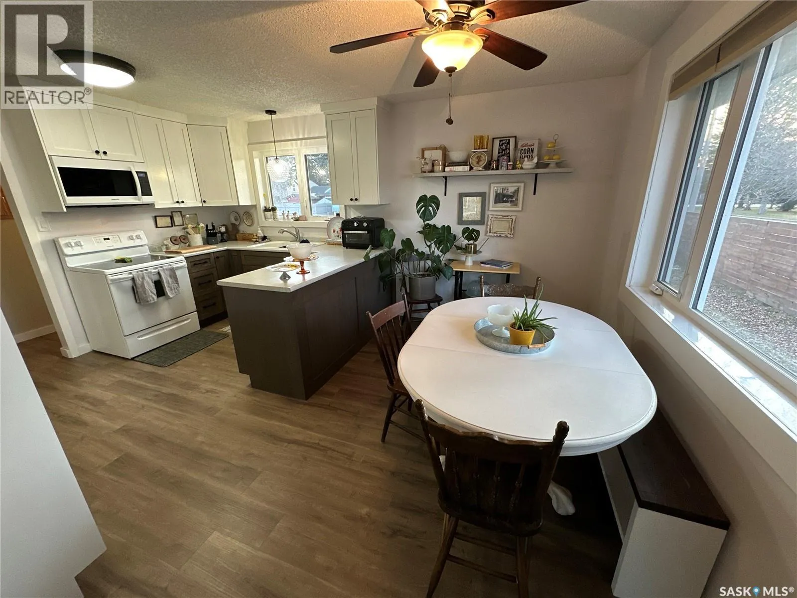 A baker's dream is how you describe this kitchen. Welcome to this 3 bedroom and 1 bath up and 1 bedroom & 1 bath down at 1019 8th Street in Rosthern. The basement also has a spacious family room, a storage room with room for your office, and a cold storage for your garden preserves. This cozy home sits on a 100' wide by 120' deep lot with lots of room to add a new garage. Treed and partially fenced yard with mature trees and shrubs with a two minute walk to downtown or the rink. In summer you are close to the park and the outdoor pool, the ice cream shop and groceries. New kitchen with dishwasher & microwave in 2021, new eavestrough in 2022, fresh exterior paint in 2023. New vinyl plank flooring in the main living area also in 2021! Lots of things to mention and even more to see! (id:27476)