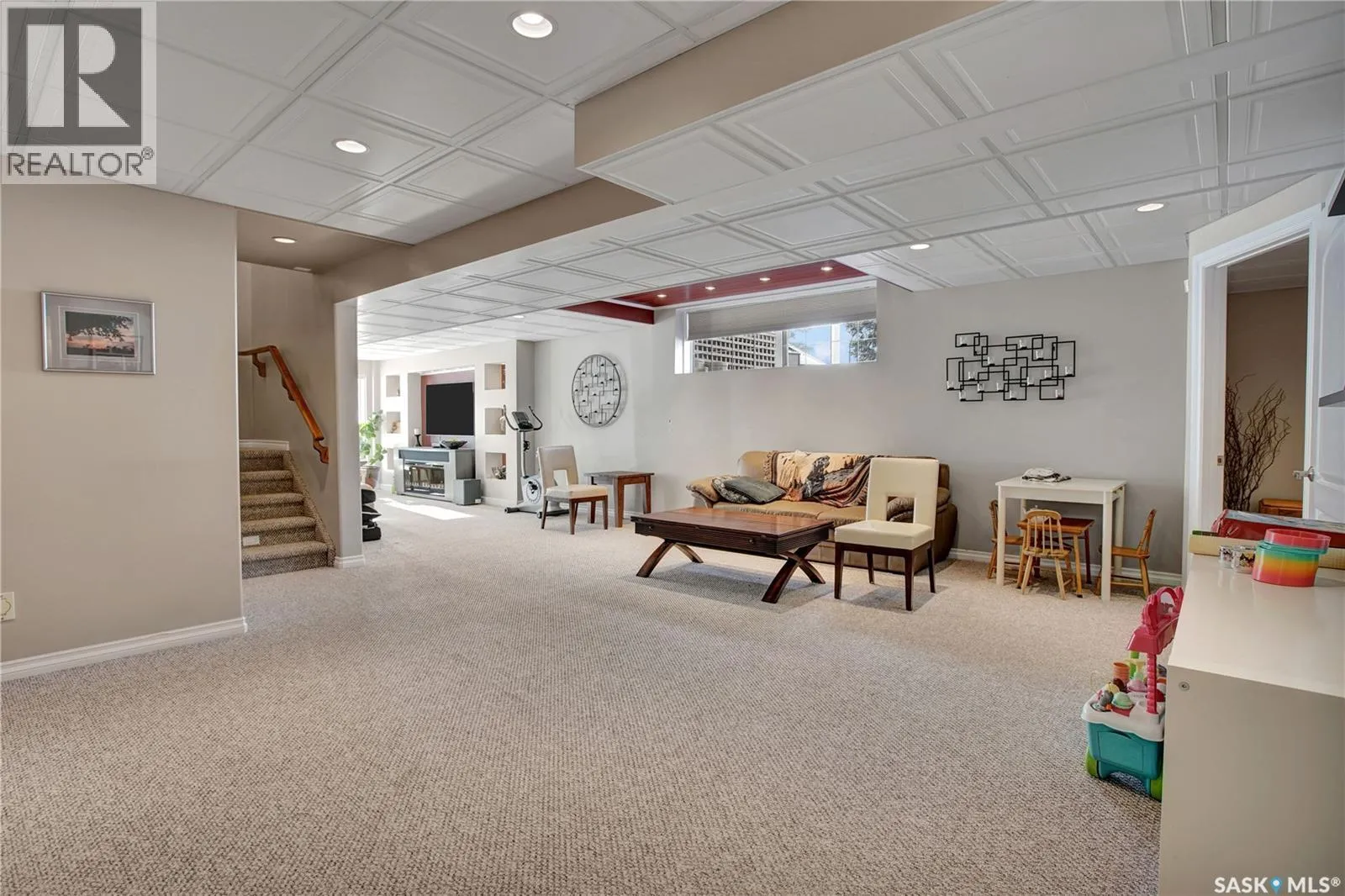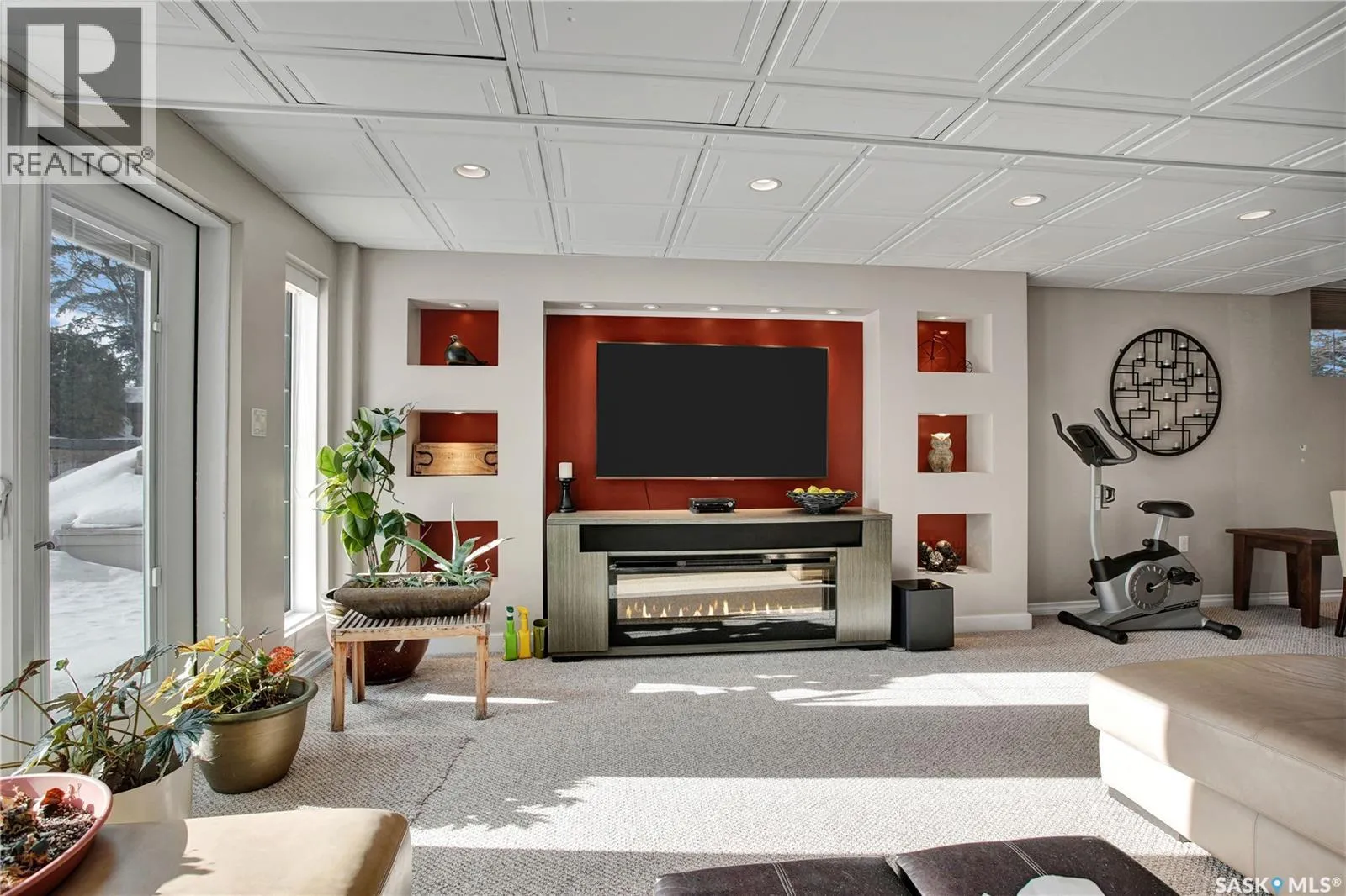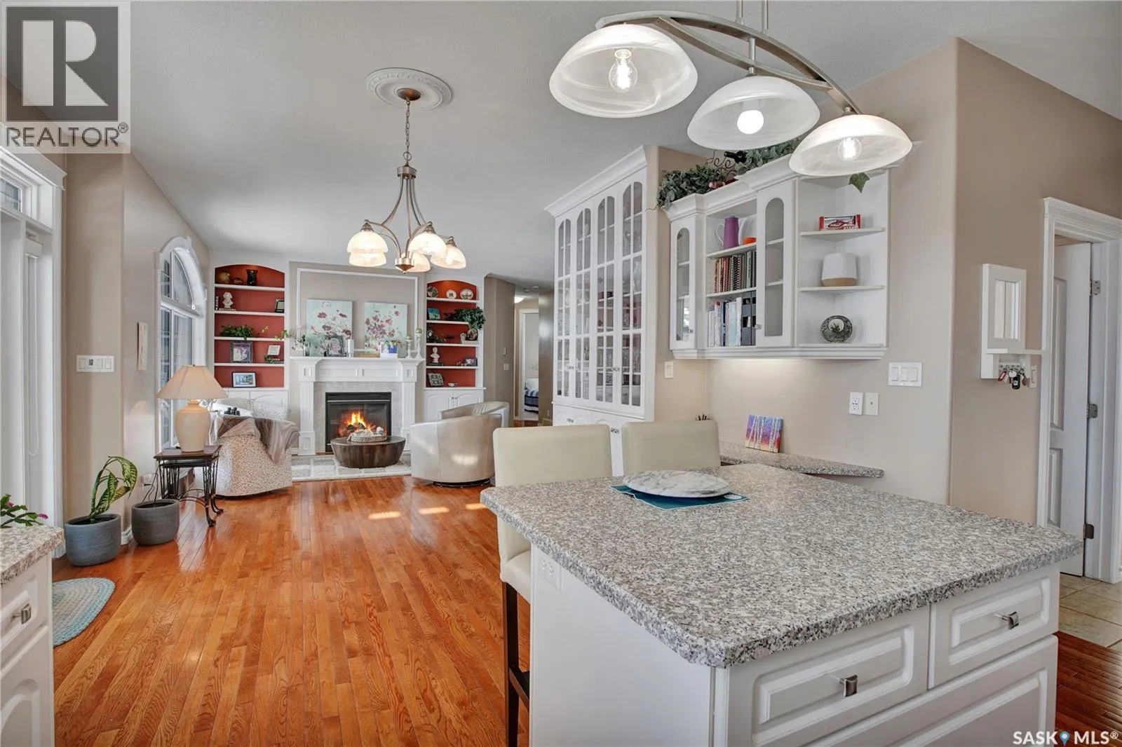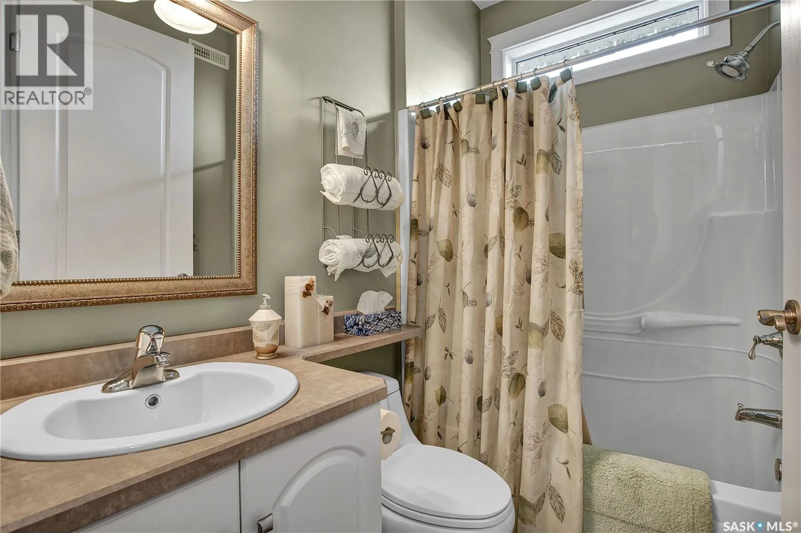 Welcome to this impressive 1,500-square-foot bungalow in Rosthern, thoughtfully designed for comfort, function, and style. This walkout home offers an elevated living experience with exceptional flow and natural light throughout. The main floor features two spacious bedrooms plus a dedicated office that easily adapts to your needs. A refined gas fireplace anchors the living area, creating warmth and atmosphere without overpowering the space. The well-appointed kitchen includes a gas stove, generous storage, and seamless connection to the dining area. Main-floor laundry adds everyday convenience and practicality to the layout. The attached 26x26 garage provides ample space for vehicles, storage, and hobbies. Downstairs, the walkout basement expands your living options with two additional bedrooms. A separate craft room offers flexibility for creative projects, work, or extra storage. The large family room is ideal for relaxing, entertaining, or accommodating guests. Step out to a beautifully treed and landscaped yard that feels both private and inviting. A dedicated firepit area enhances outdoor living and evening enjoyment. The covered west-facing deck backs onto wide-open spaces, delivering stunning prairie sunsets and peaceful views. Recent upgrades include a new boiler and air exchanger within the last year, ensuring efficiency and peace of mind. Located in a diverse and growing community, Rosthern offers a new composite school, 18-hole golf course, upgraded arena, swimming pool, vibrant downtown, and a new hospital in development, along with twin highway access to Saskatoon and Prince Albert. (id:27476)