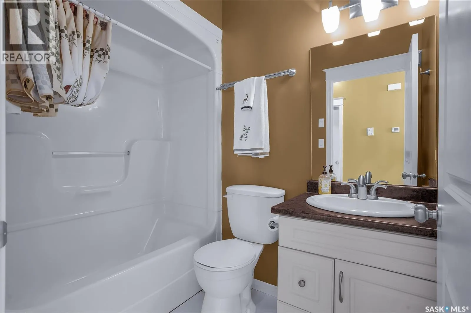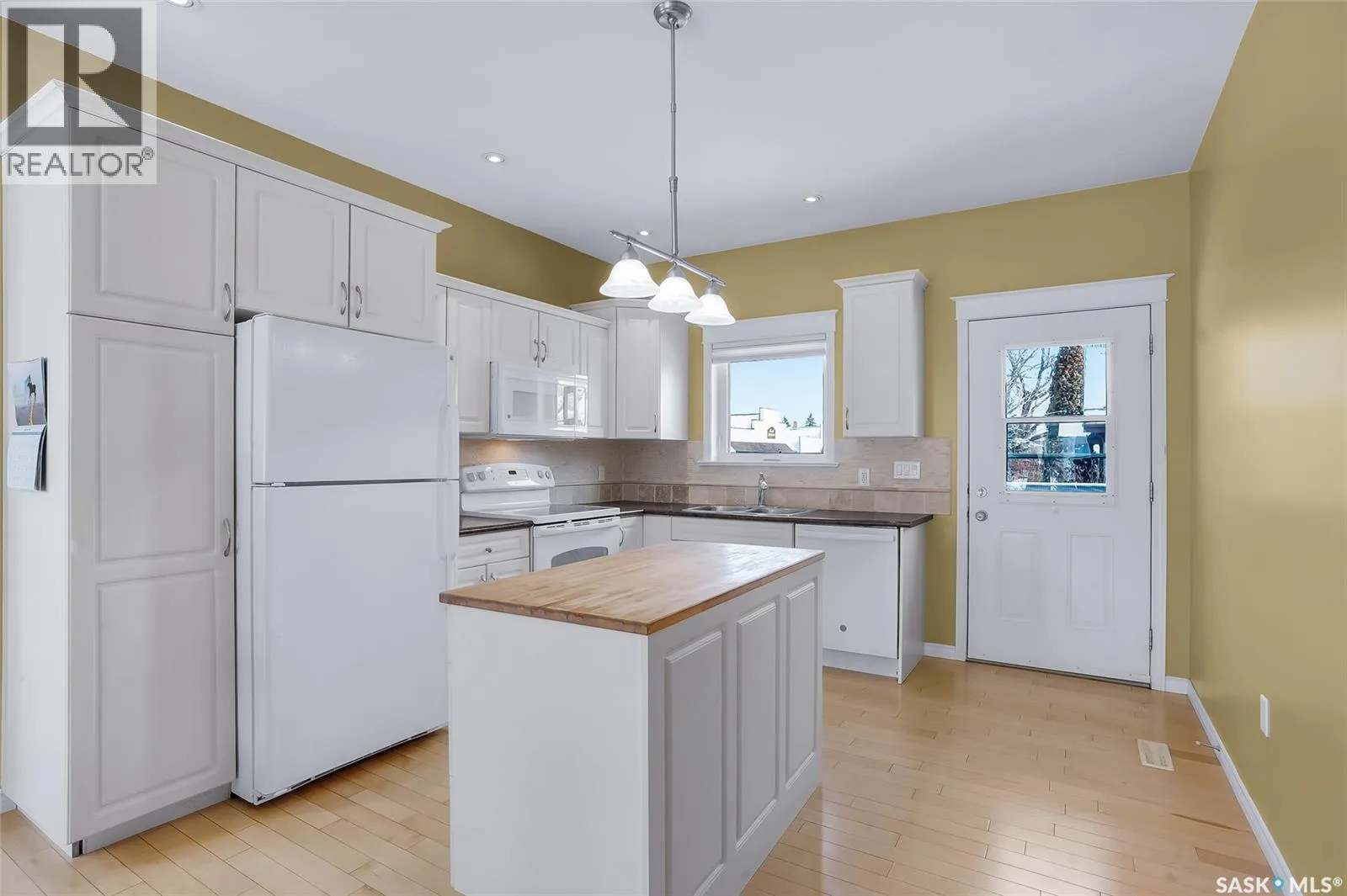 Welcome to 801 1st Avenue in Rosthern, a well-maintained 1,095 sq. ft. freehold unit in a triplex with no condo fees. This spacious home offers an excellent layout with 2 bedrooms on the main floor, 1 bedroom downstairs, plus a large den that only needs a closet to function as a fourth bedroom, making it ideal for growing families or those needing extra space. The main level features a bright open-concept living area, perfect for everyday living and entertaining, along with the convenience of main floor laundry. The home includes 3 bathrooms, highlighted by a comfortable ensuite with in-floor heat and a walk-in tub, designed for safety and ease of use. The fully finished basement adds valuable living space with a large family room and plenty of storage. Located close to Main Street, youâll appreciate the easy access to shopping and local amenities. Outside, the fenced compact backyard offers a garden and patio, providing a private and low-maintenance outdoor space. A great opportunity for comfortable living with the added benefit of freehold ownership and NO CONDO FEES!. (id:27476)