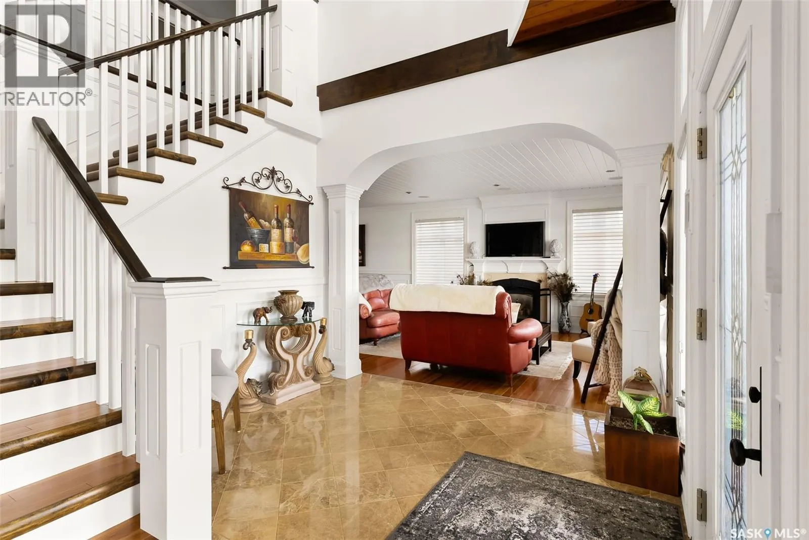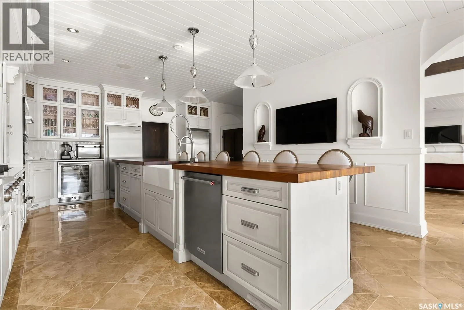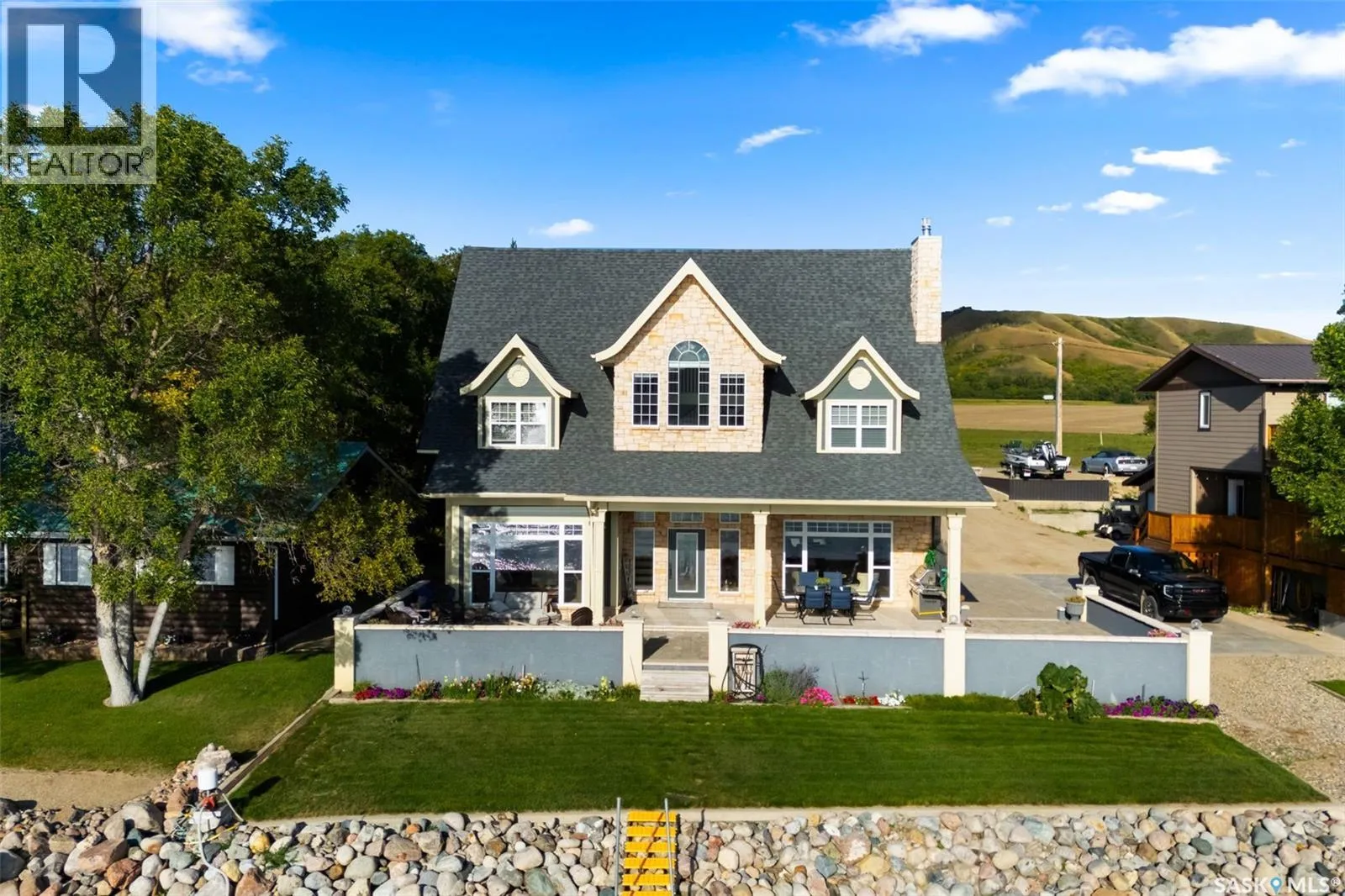 Exceptional lakefront home located at Round Lake. Stunning design and craftsmanship in this 3630 square foot 3 storey property. 5 bedrooms, 3 baths and Custom features throughout including gourmet kitchen with huge island/high end appliances/large walk in pantry/stone countertops and much more, sitting area over looking the lake, large family sized dining space leading to a beautiful living room with gas fireplace. Soaring open 3 storey staircase leads to the upper floors with beautiful lake views, wood flooring, custom washrooms, 2nd floor laundry room, 3rd floor office with vaulted ceilings, 4 car detached/heated garage features lower garage/workshop area and a suite with open concept living-bedroom space/kitchen and 3 piece bath. Beautiful landscaping and outdoor entertaining space with stone patio/boat dock and much more. This year round home is located within 2 hours of Regina and is truly one of a kind in style and workmanship. (id:27476)