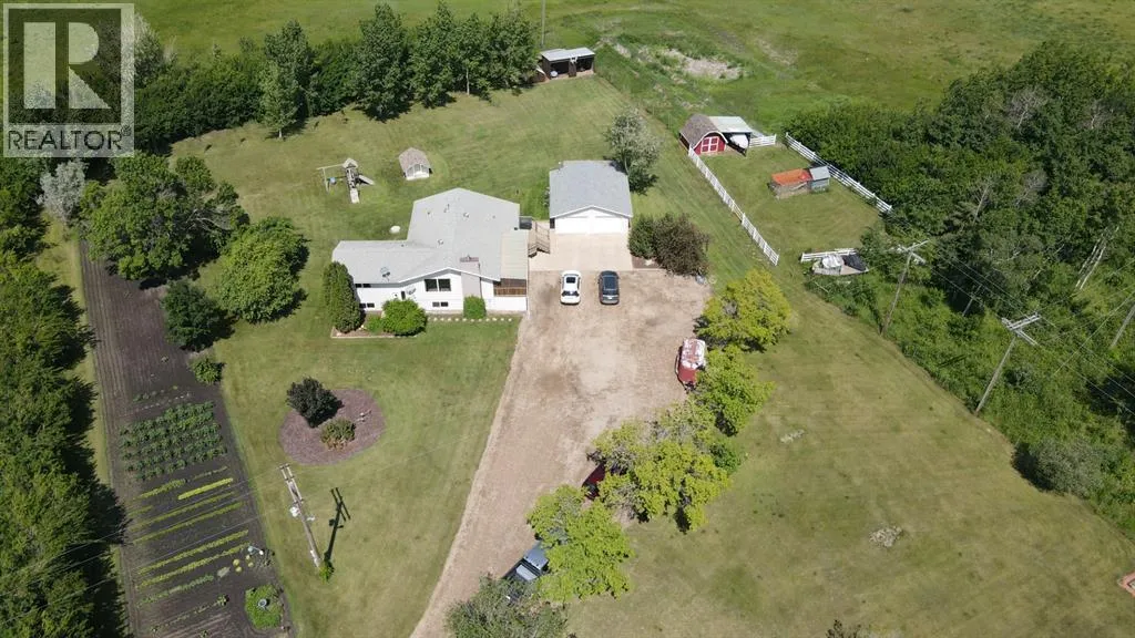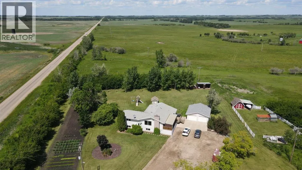 This is an acreage youâll want to see! Nestled on 2.45 beautifully maintained acres just minutes from Lloydminster, this property has everything you need for country living with the convenience of town nearby.The immaculate yard is a true highlight, featuring a large garden, mature trees, a chicken coop, a barn fenced for your animals, and plenty of space for a few cows or chickens. Youâll also find large storage sheds and a 24x26 heated double detached garage, perfect for projects or extra storage. Relax with your morning coffee on the east-facing covered deck while you take in the peaceful surroundings.Inside, this well-cared-for home offers over 1,300 sq. ft. on the main floor, with a thoughtful layout designed for family living. The primary bedroom includes its own 2-piece ensuite and is set apart from the other two bedrooms for added privacy. A bright, spacious kitchen and dining area make hosting large gatherings a breeze. A unique floor plan with basement access from both ends of the house adds convenience.The home has seen updates including new flooring installed, adding a fresh touch throughout. Downstairs, enjoy a large family room with a cozy gas fireplace, a bar for entertaining, a 4th bedroom, and a full bathroom.Additional features include:All appliances included24x26 heated garageNew septic system installed 6 years agoBus service to Marshall SchoolThis is a property where memories are madeâfamily-friendly, move-in ready, and set up for your hobby farm dreams.?? Donât miss this rare opportunityâacreages like this are hard to find! (id:27476)
