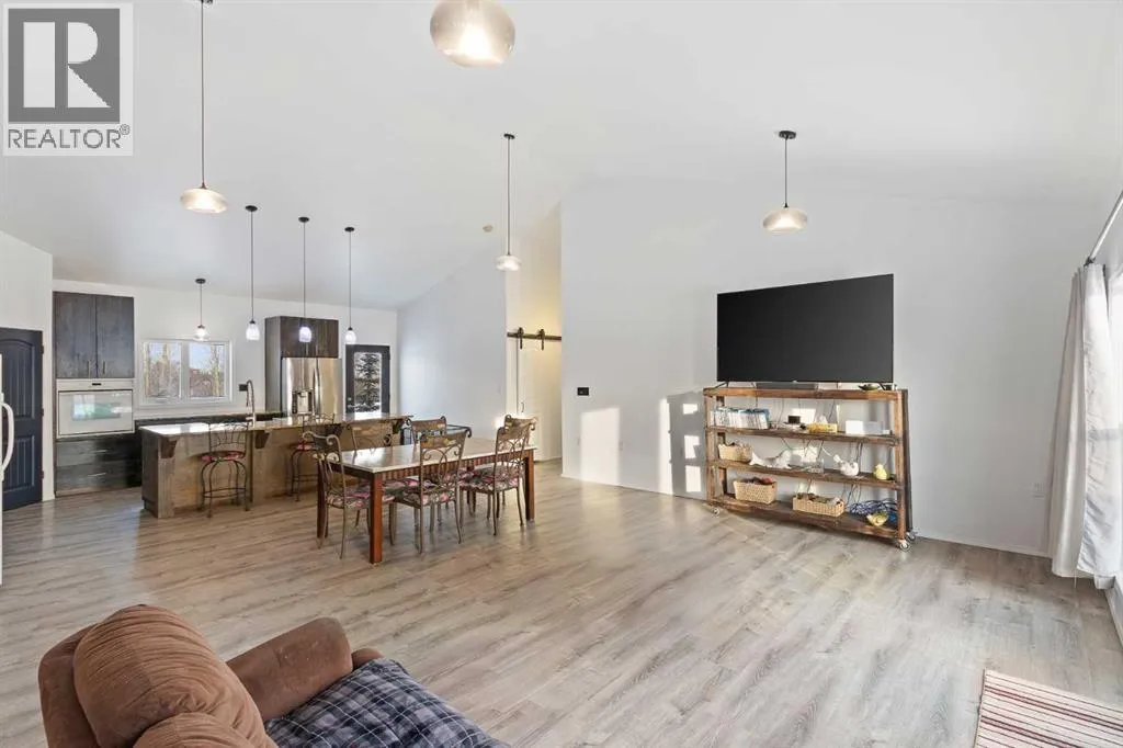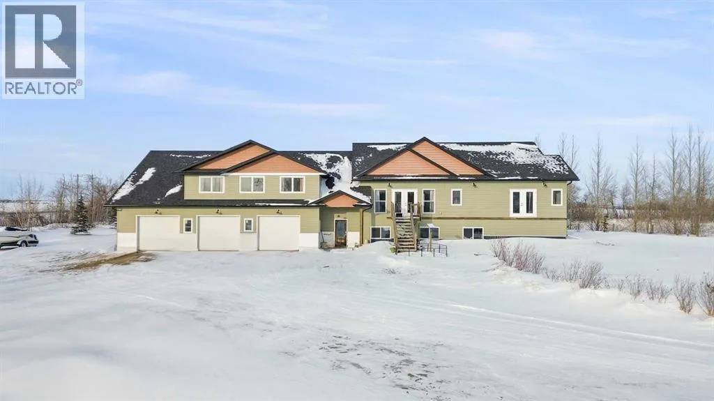 Situated on 10 acres surrounded in trees at 21 Val Lee Road in Northminster Estates just minutes out of Lloyd. This is a unique custom home. This home has a MASSIVE attached garage with infloor heat. There are three single bay doors and a 14 ft door with access to the fourth shop bay. There is a bathroom rough in the garage aswell. There is a massive garden, two dug outs and an orchard that surrounds the home. There is a drilled well and a septic field. This home has ample space with an unfinished basement that boasts large bright windows, there is a full bathroom rough in laundry rough in, spacious living rec room, space for two or three bedrooms if desired, a cold storage room and the utility room that contains a RO system for filtered water for added convenience. As you enter the main you are greeted with ample windows and open concept living with vinyl laminate throughout. There is a large island with quartz counters and custom cabinets. The upper level hosts a spacious flex space, that could be another bedroom, living area or theater space. The main contains a full bathroom, mainfloor laundry two other bedrooms. The primary is massive and has access out to another potential deck space. The walkin closet has vaulted ceilings and built ins. There is a five piece ensuite with a tile shower. This home customacreage is unique and is one of a kind. (id:27476)