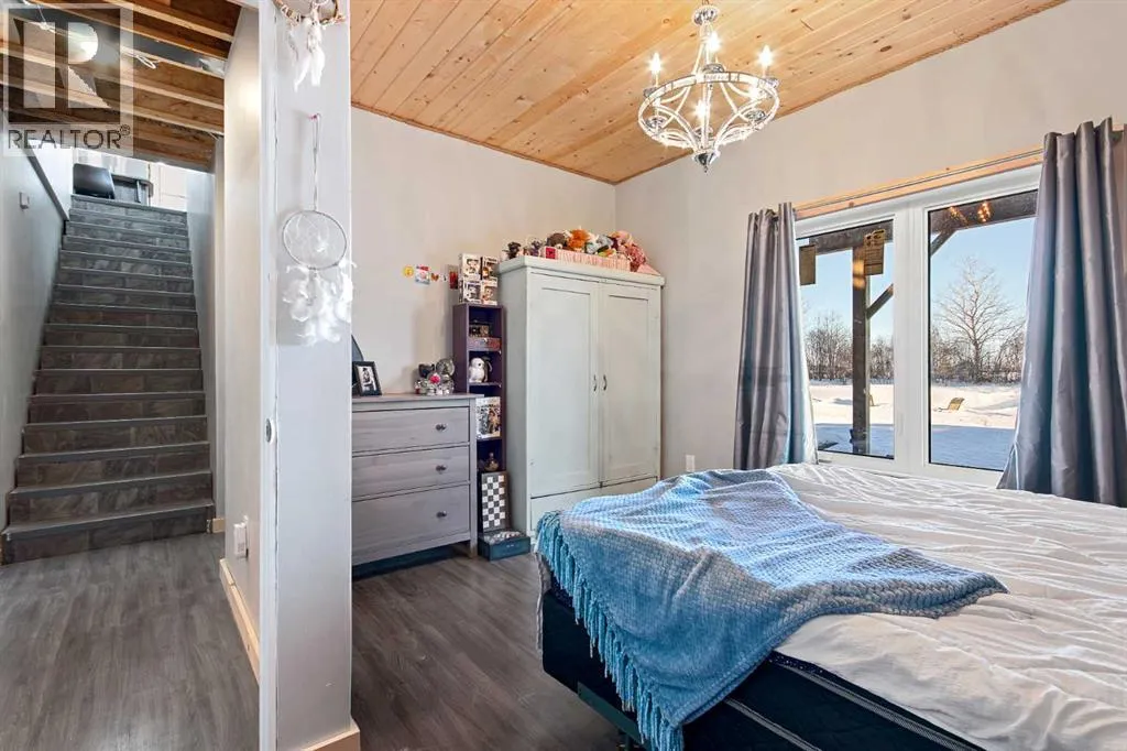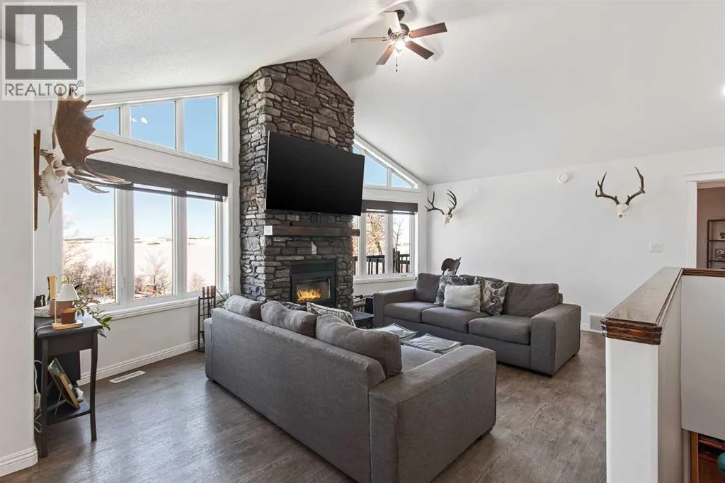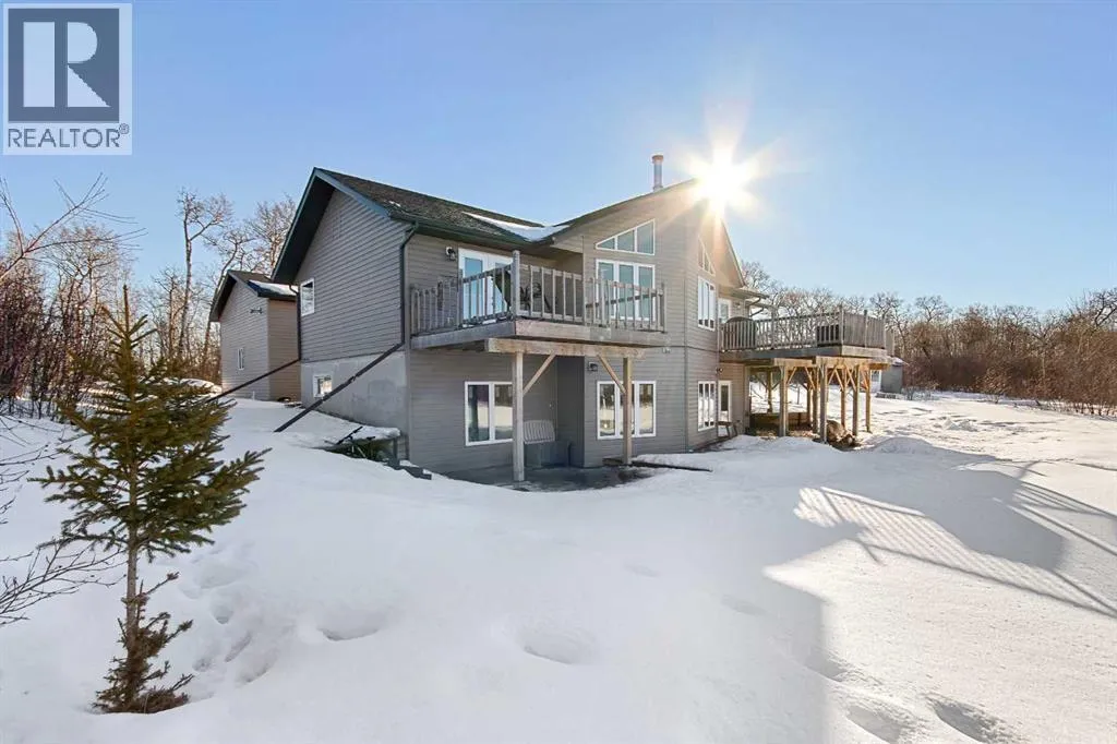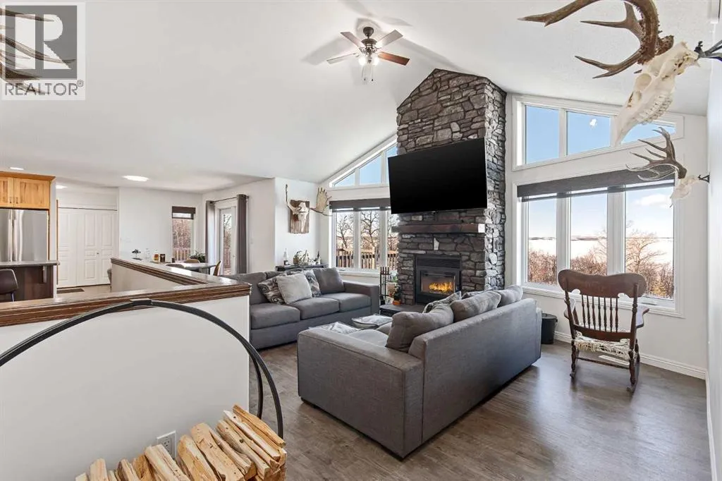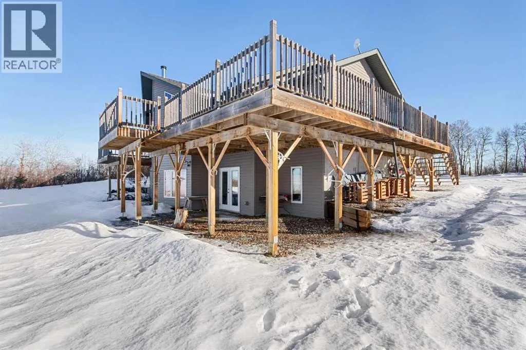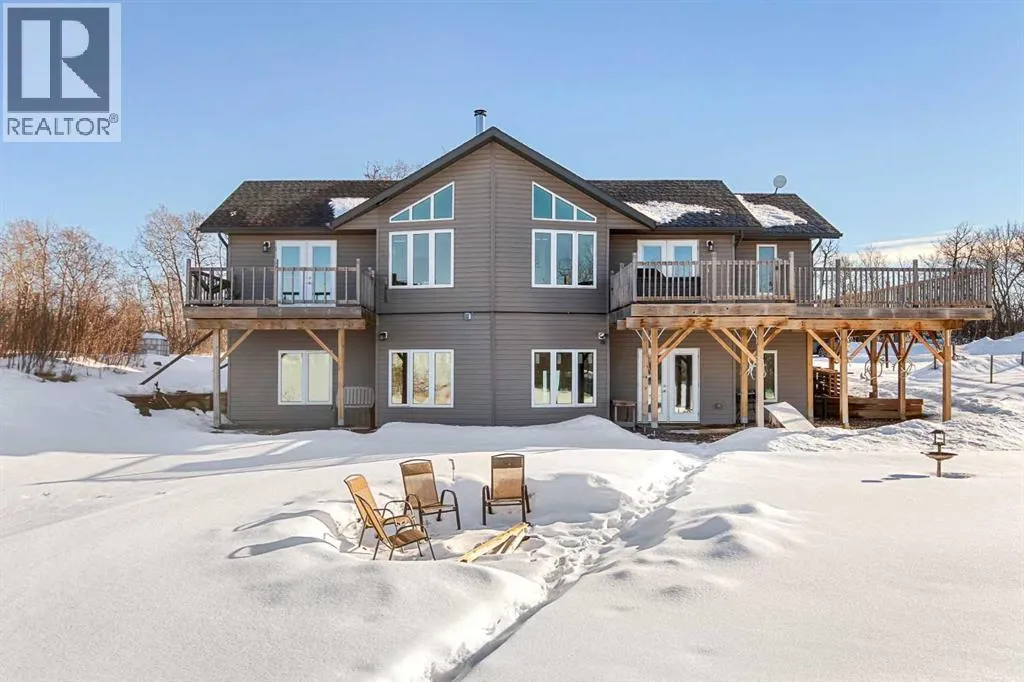 This unique 5-acre property overlooking Greenstreet Lake offers the privacy, views, and lifestyle that make acreage living so special. Surrounded by mature trees with expansive lake views, the setting feels peaceful, private, and completely connected to nature. You are immersed with nature views from every window! This home is steps to small town living and paved all the way to Lloyd! As you enter the home it is bright and welcoming, filled with natural light from large windows and finished with a clean, modern feel throughout, with no carpet. The main living space is anchored by a stunning stone wood-burning fireplace, creating warmth and character. A large open-concept kitchen with a large island and pantry. This space flows into the dining and living area for open concept living. The main entry is immersed in the wrap around deck to enjoy all year long! There is upper laundry and a half bath. The master has a large ensuite and walkin closet, there is another spacious bedroom and full bathroom. The walkout basement adds incredible functionality, opening directly to the yard and natural landscape. It is bright and airy and contains two big bedrooms with bright windows, another spot for a full bathroom. There is a bright rec room and another bedroom with a half bath currently used as a home based salon but this could be converted as desired. This home has immense storage. Outside, the property is complete with a large heated detached garage with a metal interior, designed for easy cleaning and year-round use. Central air conditioning adds comfort, while the acreage itself delivers space, privacy, and breathtaking views. This is a rare opportunity to own five acres overlooking Greenstreet Lake â a property that truly offers the lifestyle people are searching for. (id:27476)