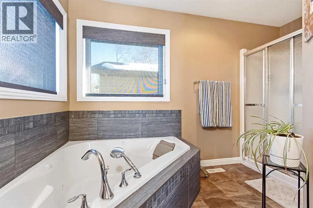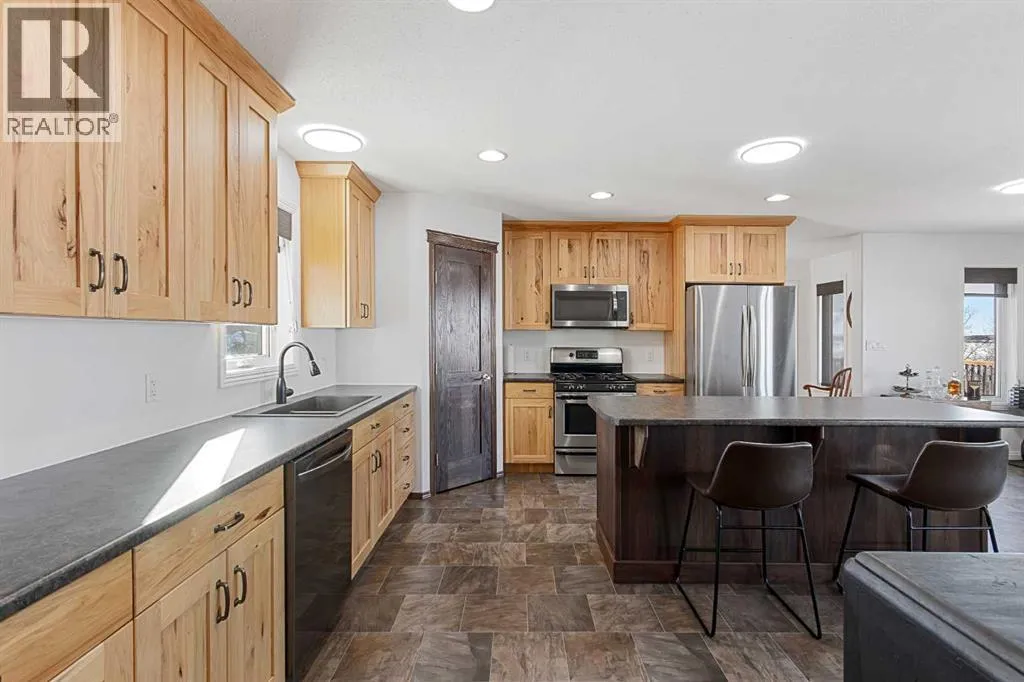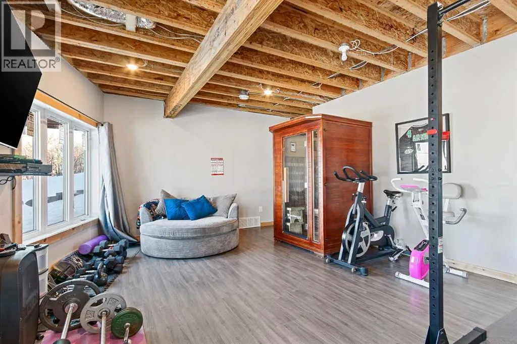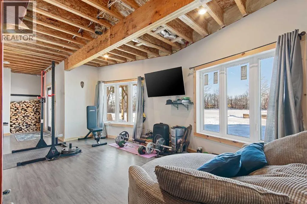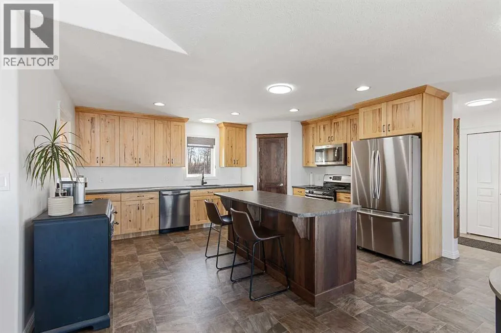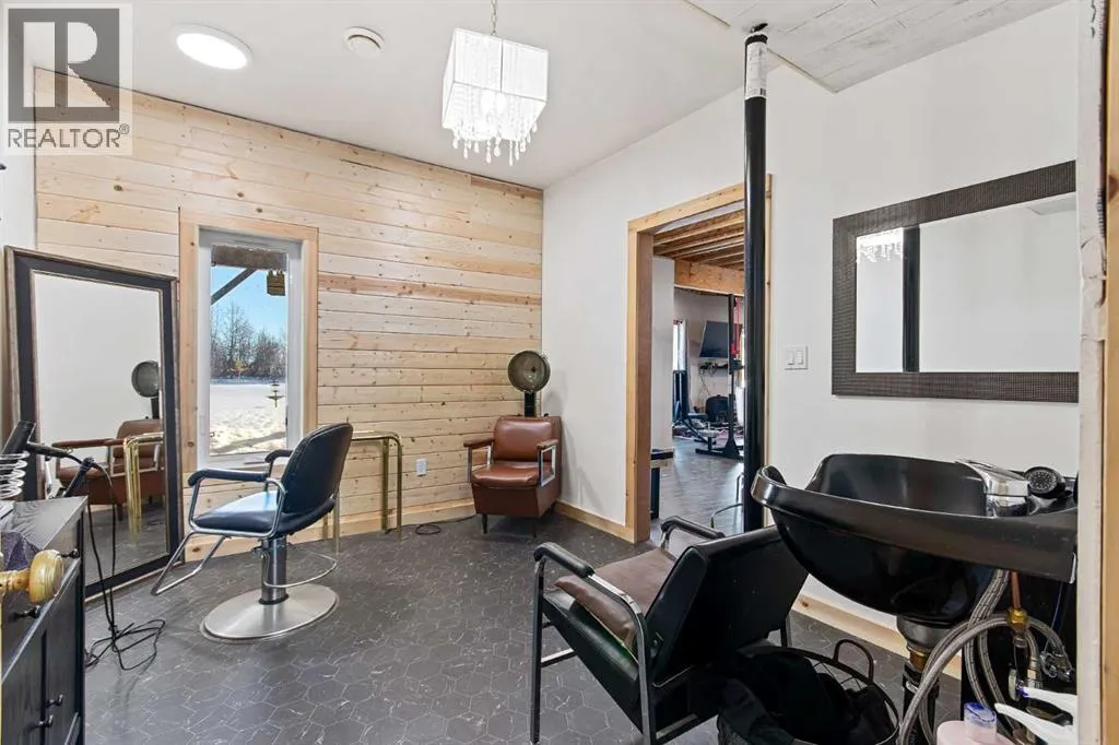 This unique 5-acre property overlooking Greenstreet Lake offers the privacy, views, and lifestyle that make acreage living so special. Surrounded by mature trees with expansive lake views, the setting feels peaceful, private, and completely connected to nature. You are immersed with nature views from every window! This home is steps to small town living and paved all the way to Lloyd! As you enter the home it is bright and welcoming, filled with natural light from large windows and finished with a clean, modern feel throughout, with no carpet. The main living space is anchored by a stunning stone wood-burning fireplace, creating warmth and character. A large open-concept kitchen with a large island and pantry. This space flows into the dining and living area for open concept living. The main entry is immersed in the wrap around deck to enjoy all year long! There is upper laundry and a half bath. The master has a large ensuite and walkin closet, there is another spacious bedroom and full bathroom. The walkout basement adds incredible functionality, opening directly to the yard and natural landscape. It is bright and airy and contains two big bedrooms with bright windows, another spot for a full bathroom. There is a bright rec room and another bedroom with a half bath currently used as a home based salon but this could be converted as desired. This home has immense storage. Outside, the property is complete with a large heated detached garage with a metal interior, designed for easy cleaning and year-round use. Central air conditioning adds comfort, while the acreage itself delivers space, privacy, and breathtaking views. This is a rare opportunity to own five acres overlooking Greenstreet Lake â a property that truly offers the lifestyle people are searching for. (id:27476)