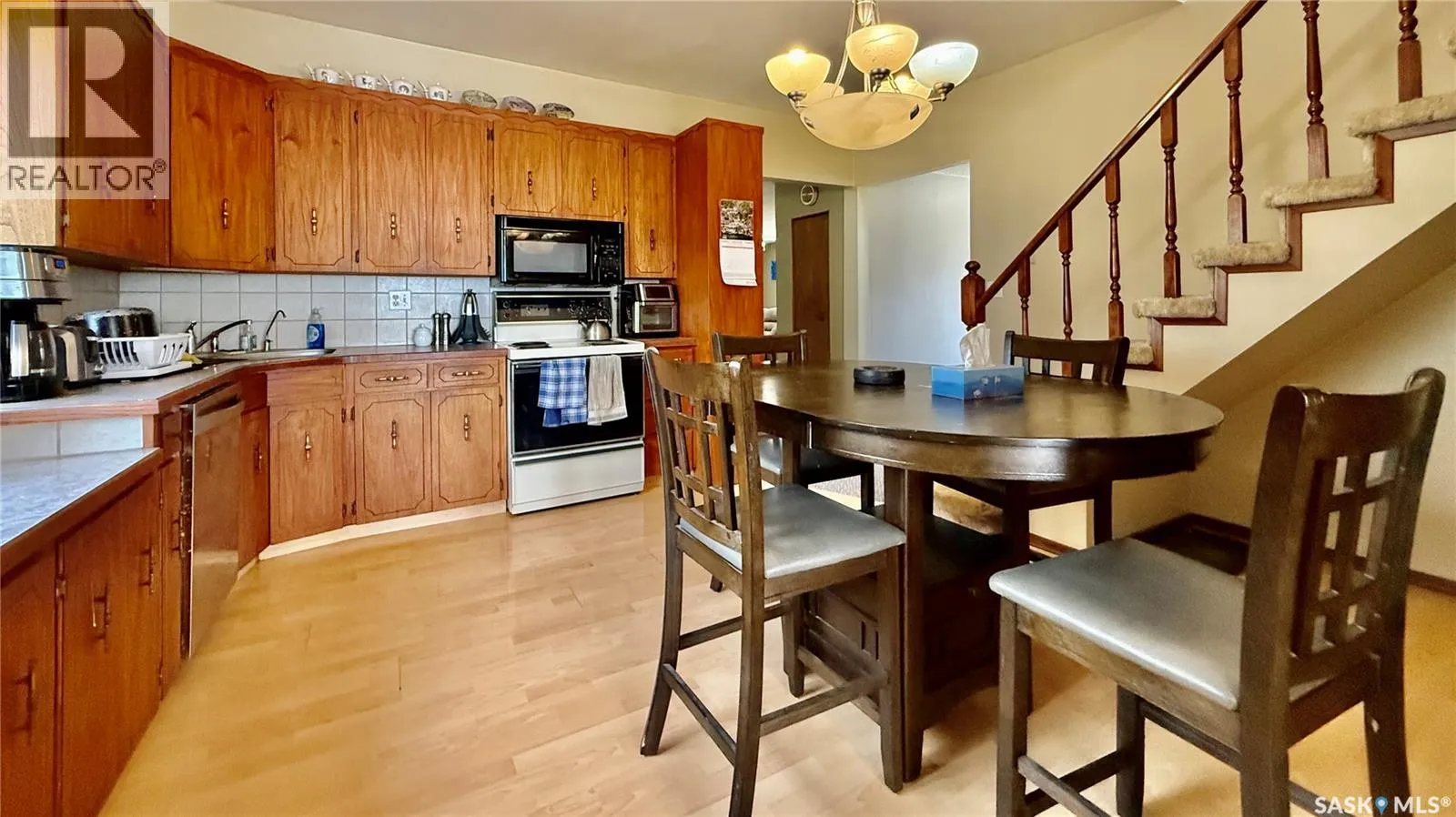 BIk/Par A-Plan 102140198 Ext 0 - ISC Parcel #202867263 Discover the perfect blend of ample space, charm and modern amenities on this picturesque 10-acre property in the RM of Saskatchewan Landing. Located just a 17 minute drive from Swift Current and 14 minutes from the scenic Saskatchewan Landing Provincial Park, this acreage offers both tranquility and convenience.? The 2,150 sq ft home, originally built in 1918, was thoughtfully expanded in 1989 to include a spacious two-car attached garage. Inside, you'll find five bedrooms and two and a half bathrooms, providing ample space for family and guests. The expansive family room serves as the heart of the home, perfect for gatherings and relaxation. The main floor features a bright kitchen, a generous dining area, and a large primary bedroom with double closets. Upstairs, four additional bedrooms and a two-piece bath accommodate a growing family or visitors. The partially finished basement includes a family room, a three-piece bath, and a laundry/mechanical room.? For those seeking workspace or storage, the property boasts a 38' x 60' quonset with a concrete floor and power, as well as a 32' x 40' shop featuring multiple overhead doors and a heated, insulated partitioned area, ideal for a workshop or additional storage.? Water needs are well-covered with a reliable well, and a septic system in place. The mature yard includes a garden area, a natural slough, and abundant tree cover, offering privacy and a serene setting.? Proximity to Saskatchewan Landing Provincial Park adds to the property's appeal. The park, situated along the South Saskatchewan River Valley at the west end of Lake Diefenbaker, offers a variety of recreational activities, including hiking, swimming, boating, and fishing. Whether you're an outdoor enthusiast or simply appreciate natural beauty, the park provides year-round opportunities for enjoyment.? This acreage is more than just a home; it's a lifestyle opportunity for those seeking space, functionality, and proximity to nature.? (id:27476)
