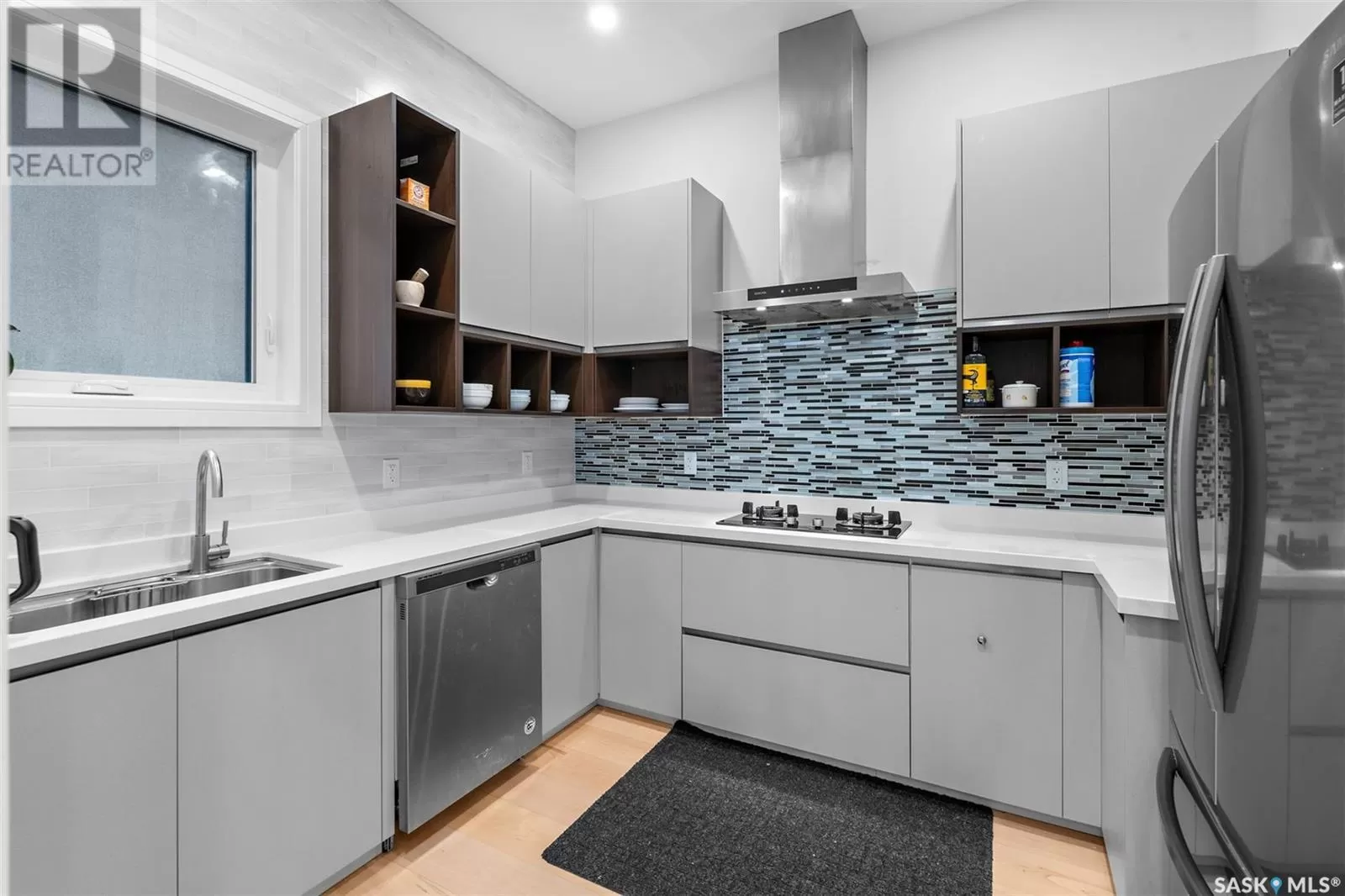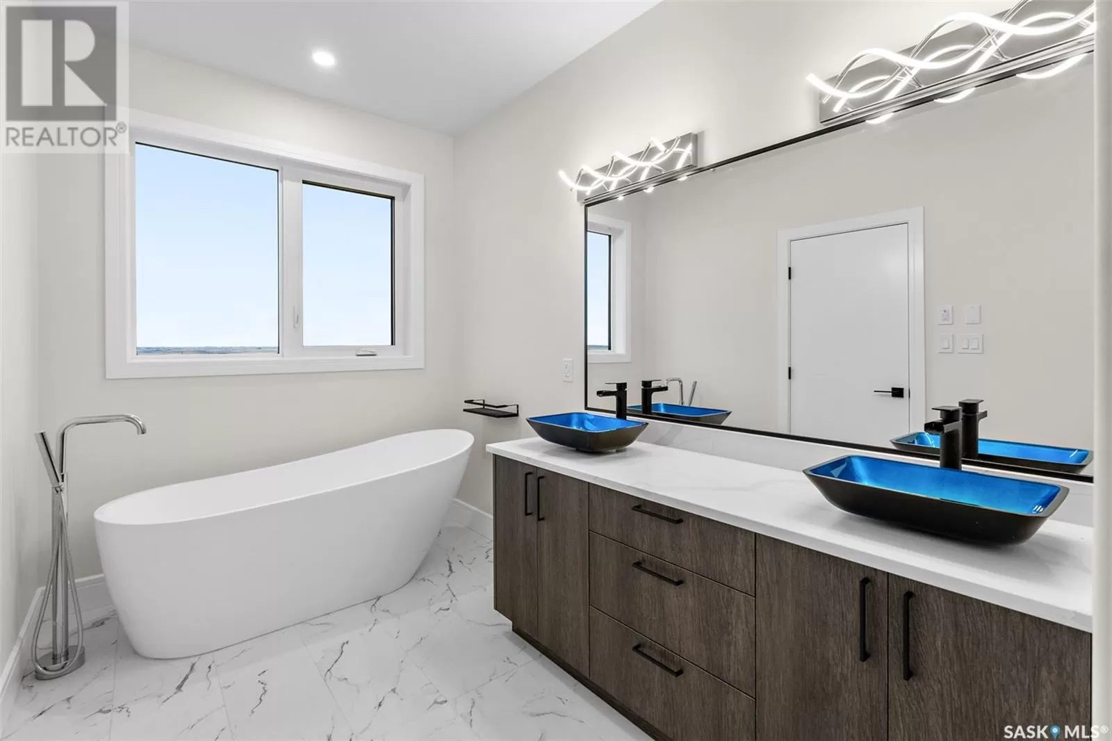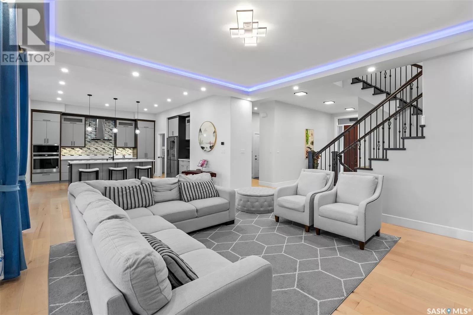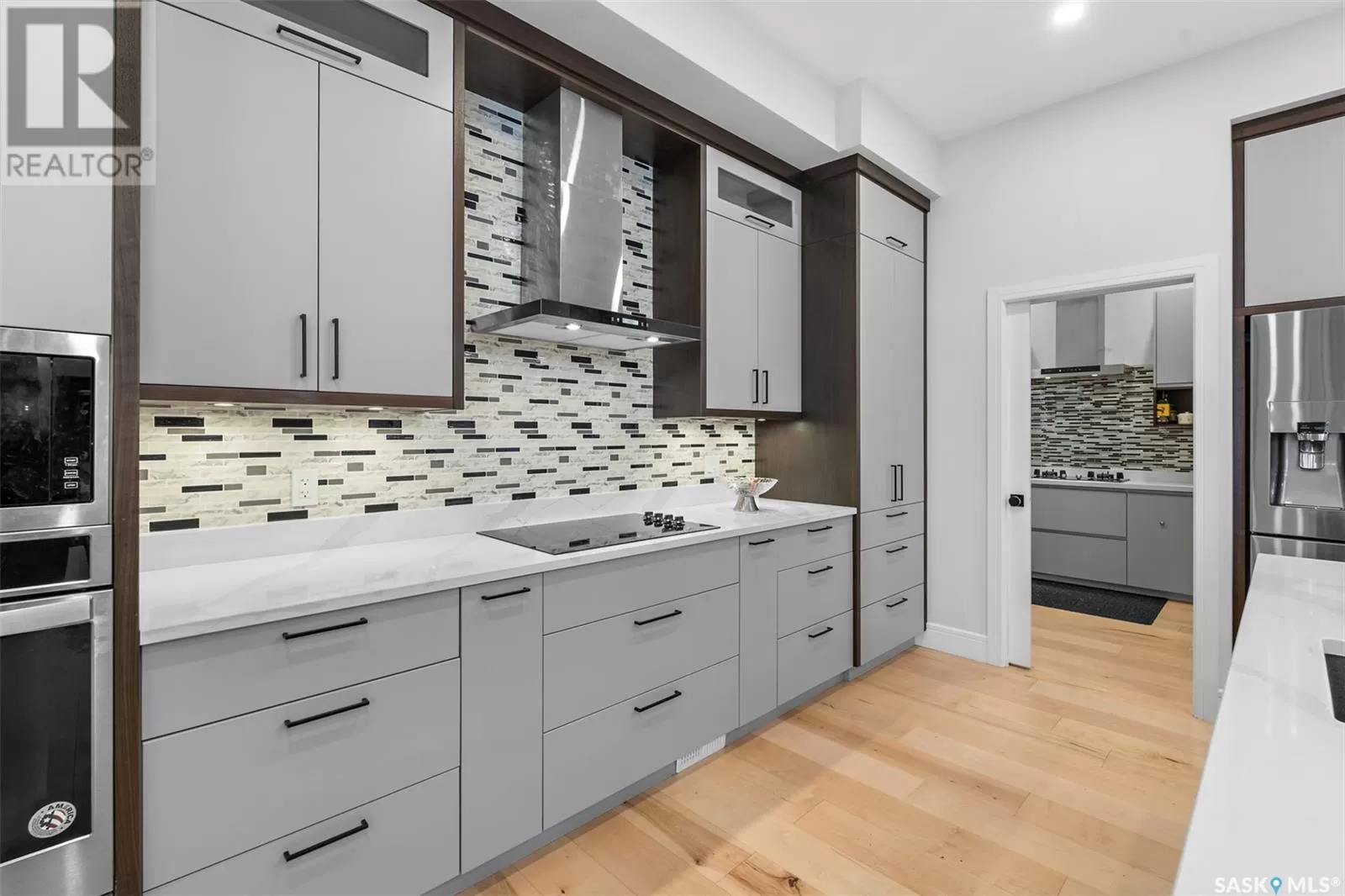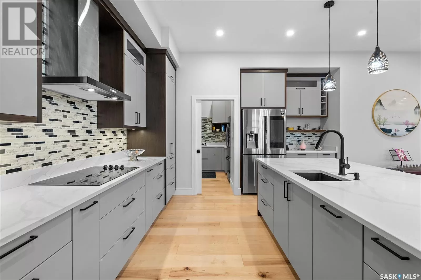 Welcome to 407 Kenashusk Cres. This exceptional home with more than 4400 sq ft living space represents luxurious simplicity. Fantastic location backing the NE swale with panorama view of the serene park, pond and walking paths. This gorgeous home offers 6 bedroom, 5 bath, 2 kitchen, 1 living room, 1 family room, professionally finished walkout basement with bedroom, den, bathroom and family room,. No expense has been spared. The exterior features Sagiper boarding and EFIS stucco completed with stone for better sound and heat insulation. Large covered deck is maintenance free. Inside the house you will find all the bells and whistles! Spacious foyer with soaring ceiling, spacious living room with tray ceiling, electrical fireplace, built-in cabinets and featured wall, gourmet kitchen plus a enclosed spice kitchen with custom cabinets, quartz counter tops, back splash and high end stainless steal appliance package including gas stove. Large dining space has a patio door leading to the back deck. High-end engineering floor throughout. The up level has 9 feet ceiling and awesome layout with 5 generous-sized bedrooms, 3 bathrooms and a bonus space. Master bedroom is spacious and features a walk in closet, large 5 piece bath including soaking tub and his and her sinks; thereâs another bedroom which also has a 3 piece ensuite. Laundry room is conveniently located on the 2nd floor as well. The walkout basement is professionally developed and it features 9ft ceilings, laminate flooring, very bright family room, spacious game room / recreation space, 1 extra bedroom and 4 piece bathrooms. Backyard features patio area, garden area, underground sprinkler system and maintenance-free composite fence. Other notable features include 3 zoned heating control system, heated two car garage with 3 car driveway in the front, HRV, humidifier, and central AC. This property is one of a kind. Absolutely must-see!*** Take a look at VIRTUAL TOUR to get a sense of this fantastic house.*** (id:27476)