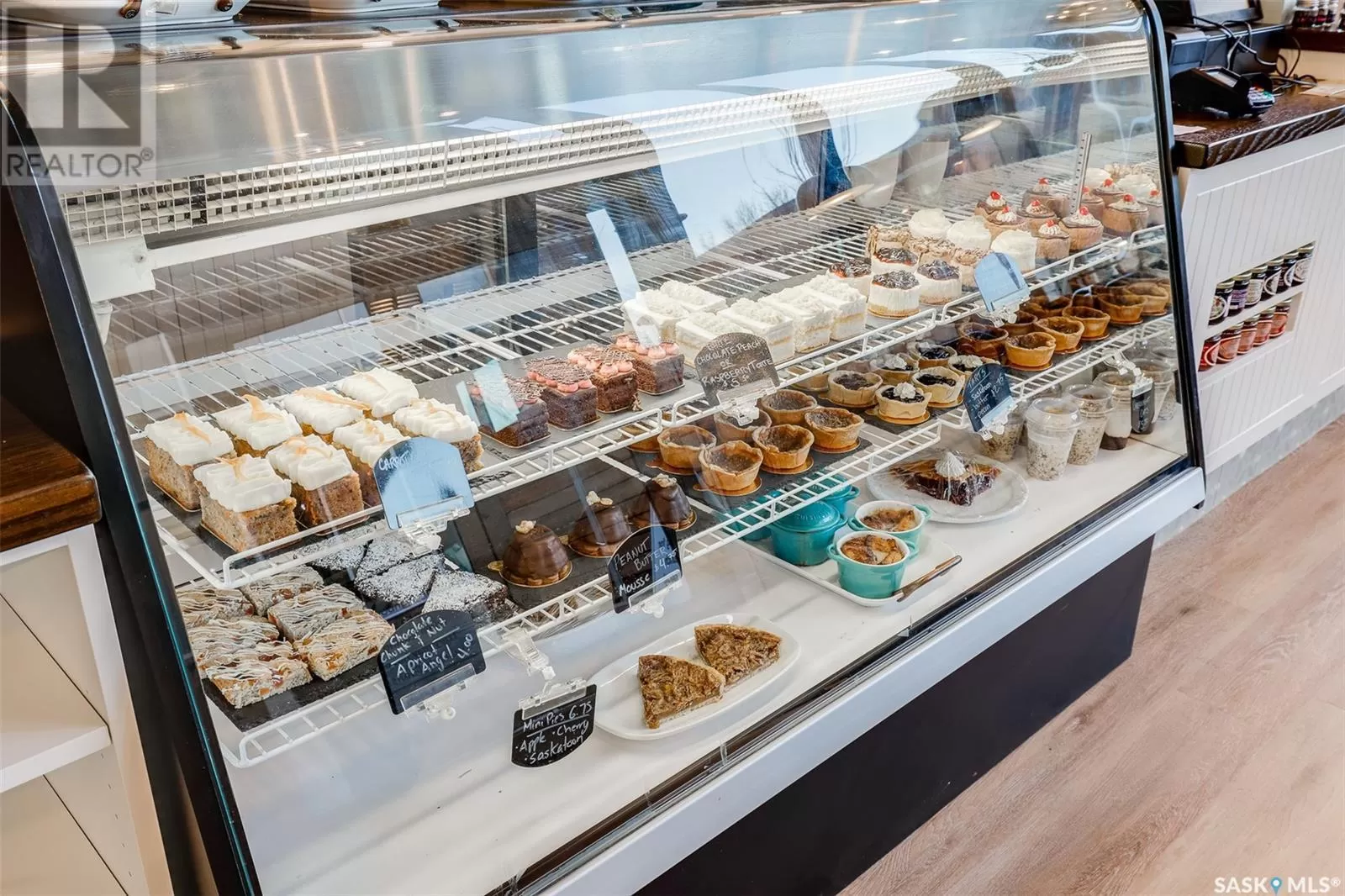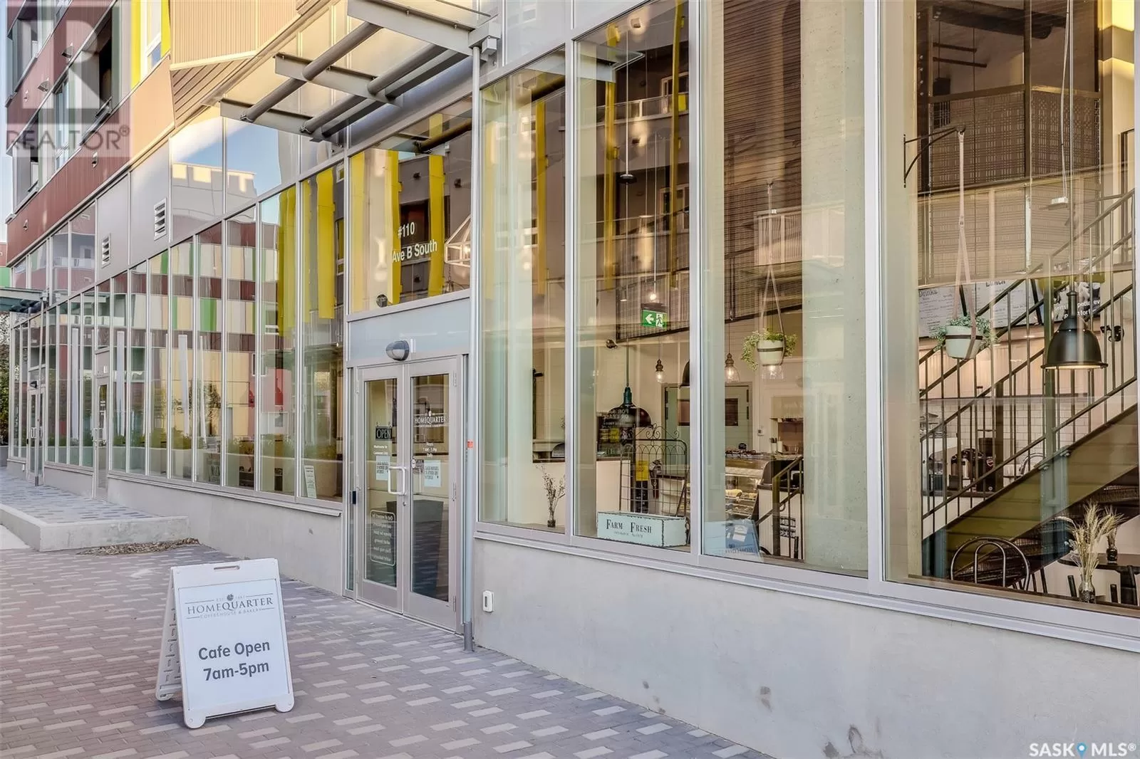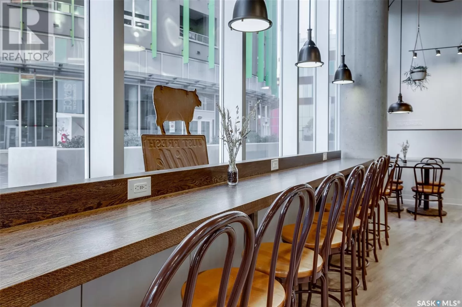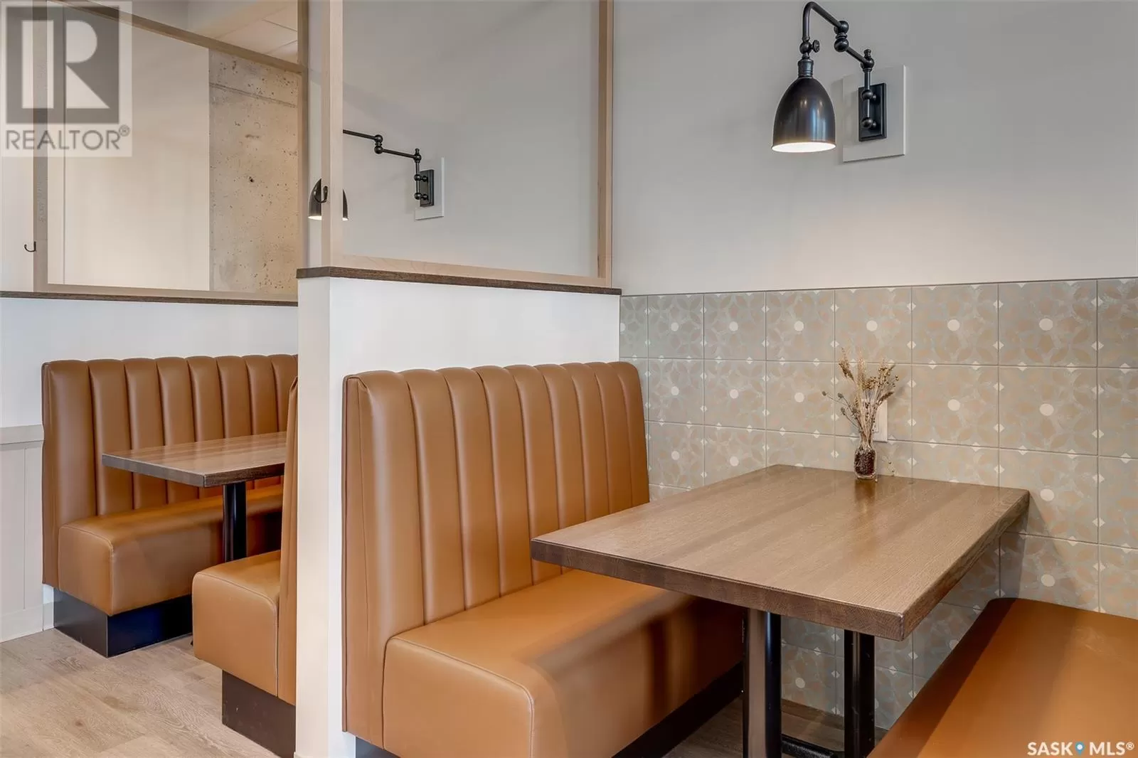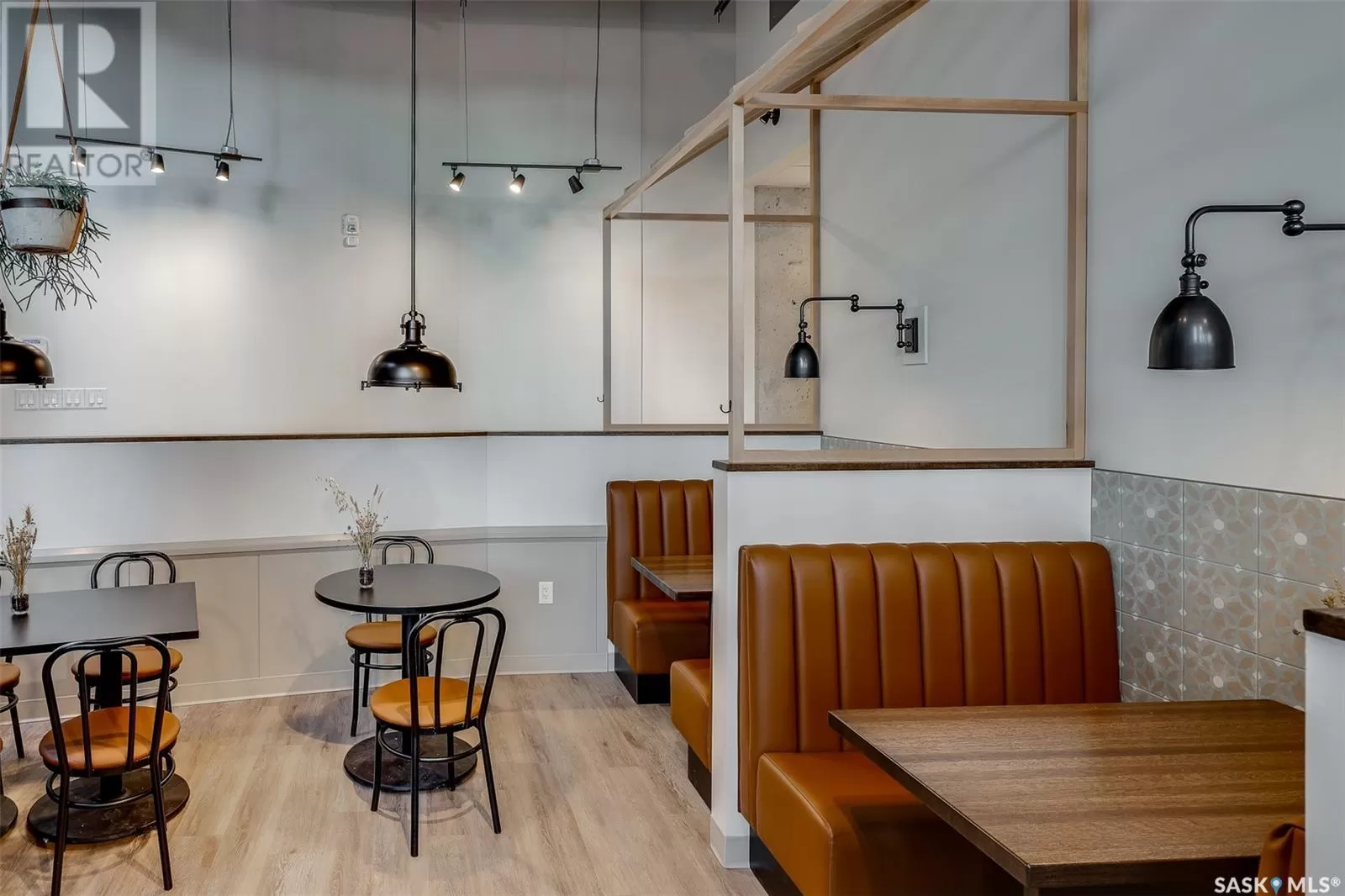 Home Quarter Coffeehouse & Bakery is a beloved space to grab a coffee and delicious baking, however they also offer many other options ie: breakfast foods. This popular business is located within The Banks condominiums on the corner of 19th Street and Avenue B, sharing a courtyard with other prominent businesses, conveniently below over 100 residences that love supporting the business, and across from Gather Local market. This concrete space has 18' ceilings, a steel mezzanine for extra seating, and beautiful windows spanning the length of the space creating a bright and airy space to enjoy all year around. Plenty of seating, and a gas fireplace give you a place to cozy up during cold winter days. Being only 1 block from the River Landing trails, and quick access to downtown by foot or bike, this is definitely a lifestyle location that is reminiscent of Vancouver & Victoria BC. Future upside potential value is strong as Riversdale continues to improve year over year. (id:27476)