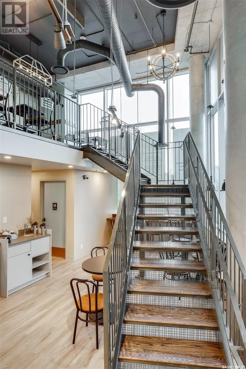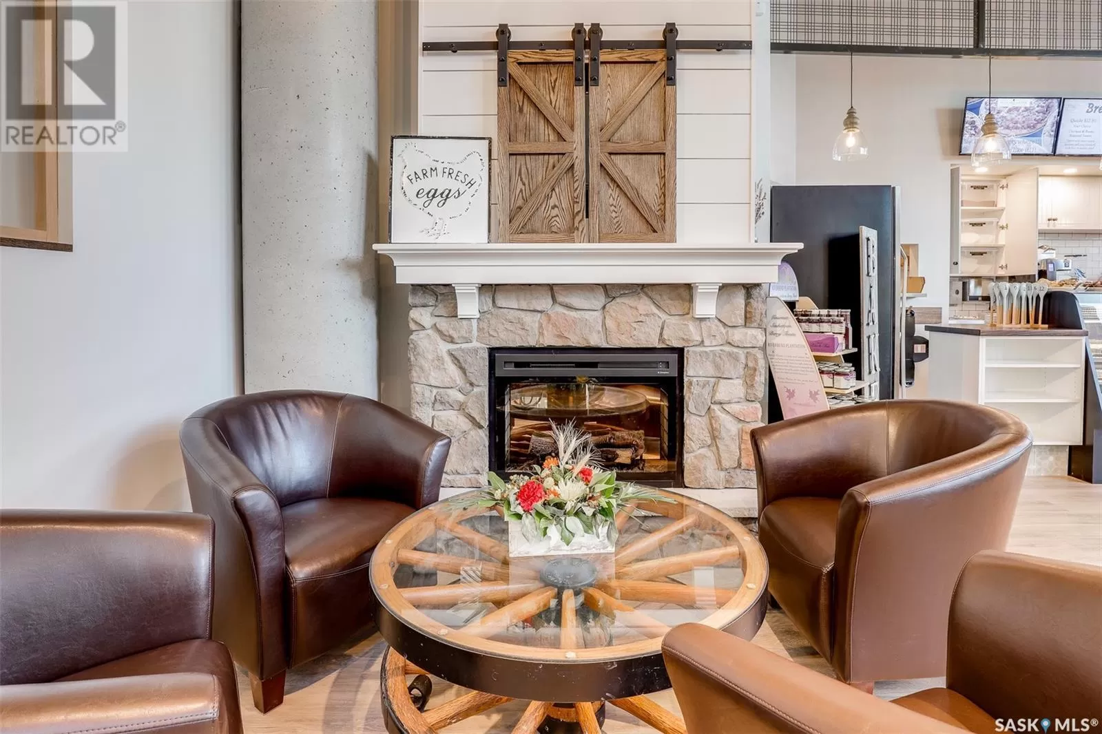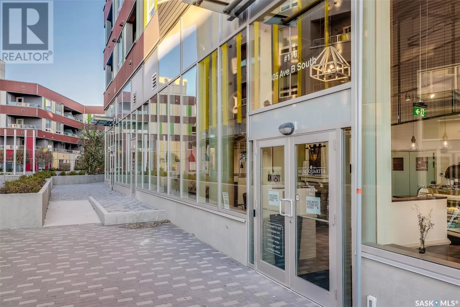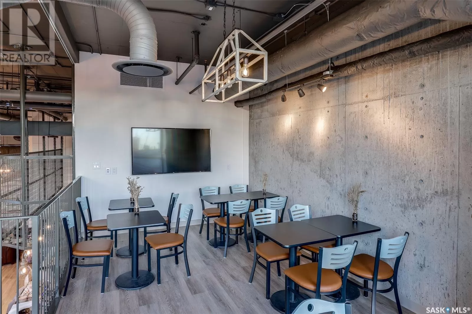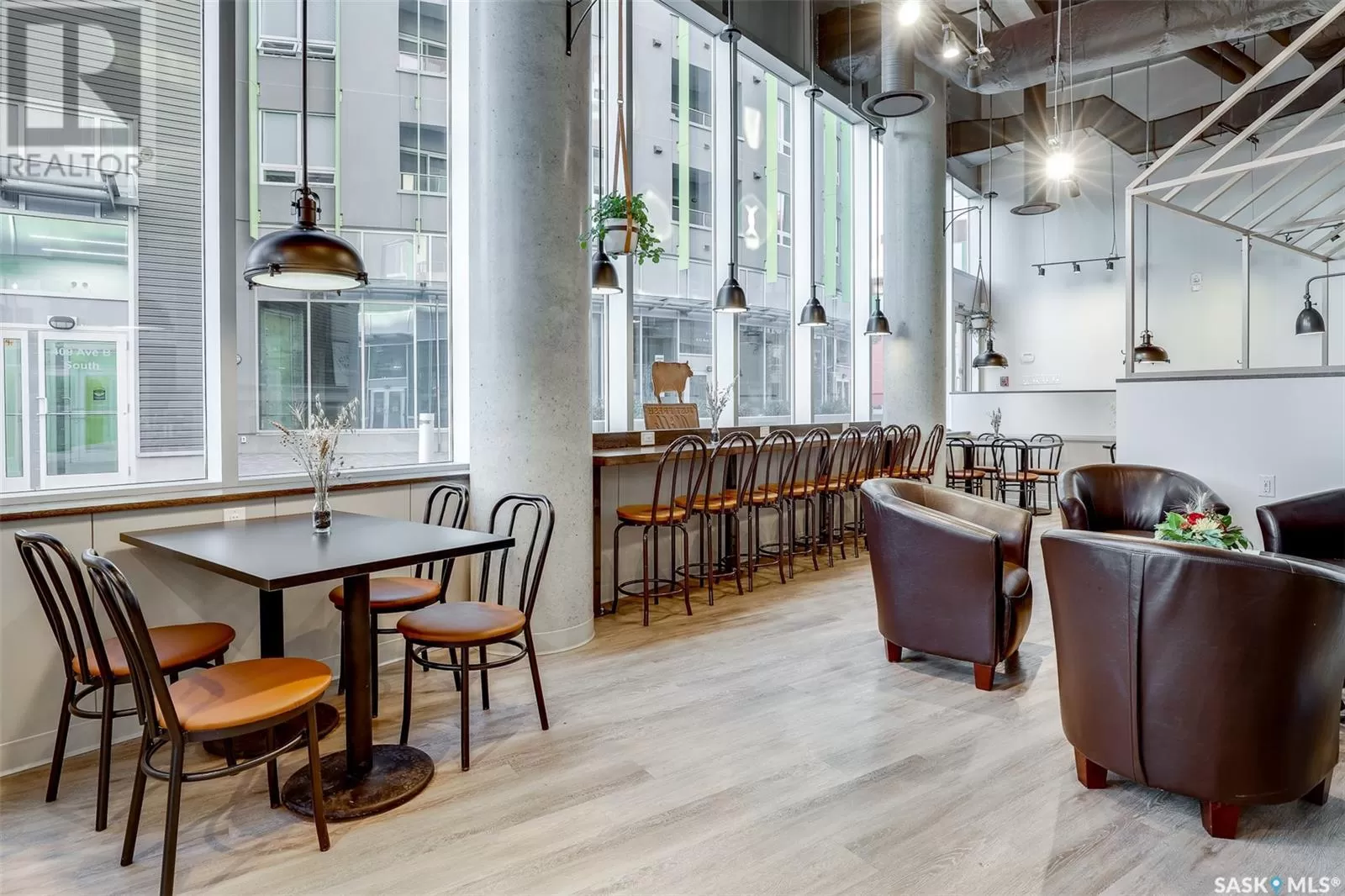 Home Quarter Coffeehouse & Bakery is a beloved space to grab a coffee and delicious baking, however they also offer many other options ie: breakfast foods. This popular business is located within The Banks condominiums on the corner of 19th Street and Avenue B, sharing a courtyard with other prominent businesses, conveniently below over 100 residences that love supporting the business, and across from Gather Local market. This concrete space has 18' ceilings, a steel mezzanine for extra seating, and beautiful windows spanning the length of the space creating a bright and airy space to enjoy all year around. Plenty of seating, and a gas fireplace give you a place to cozy up during cold winter days. Being only 1 block from the River Landing trails, and quick access to downtown by foot or bike, this is definitely a lifestyle location that is reminiscent of Vancouver & Victoria BC. Future upside potential value is strong as Riversdale continues to improve year over year. (id:27476)