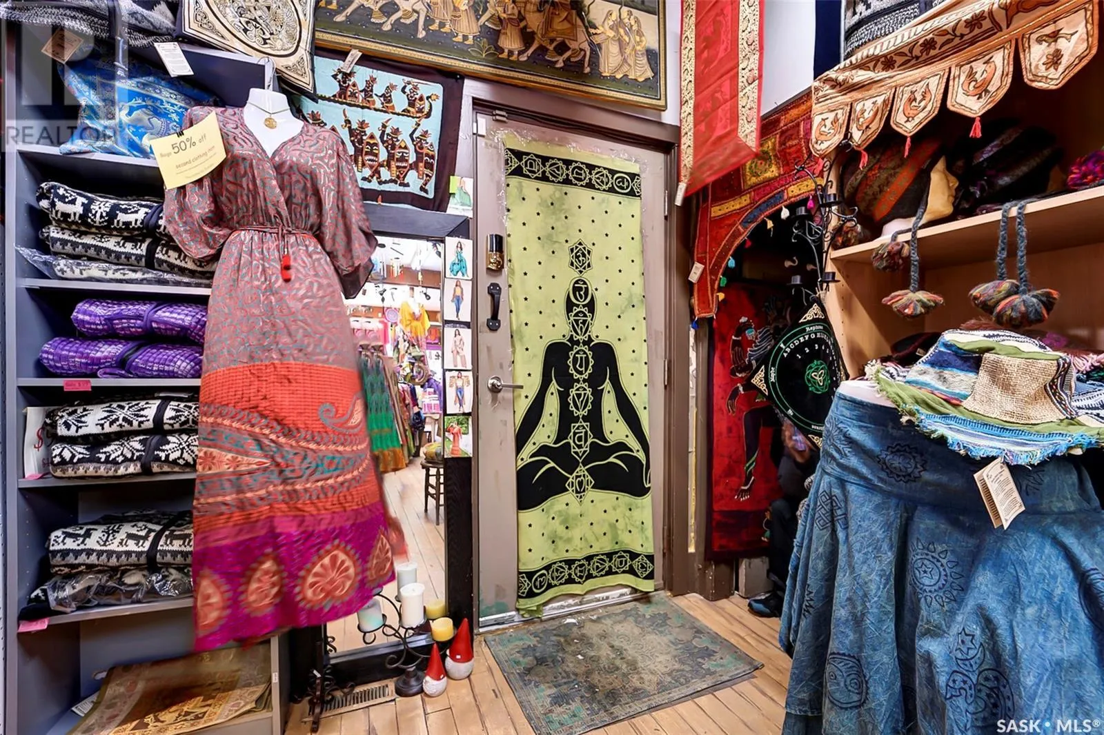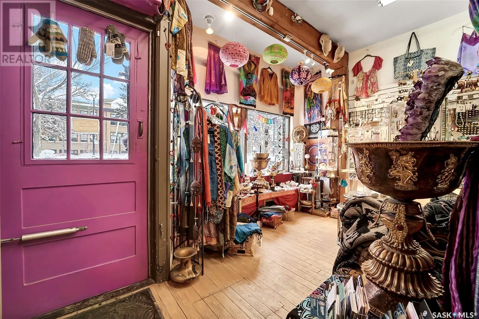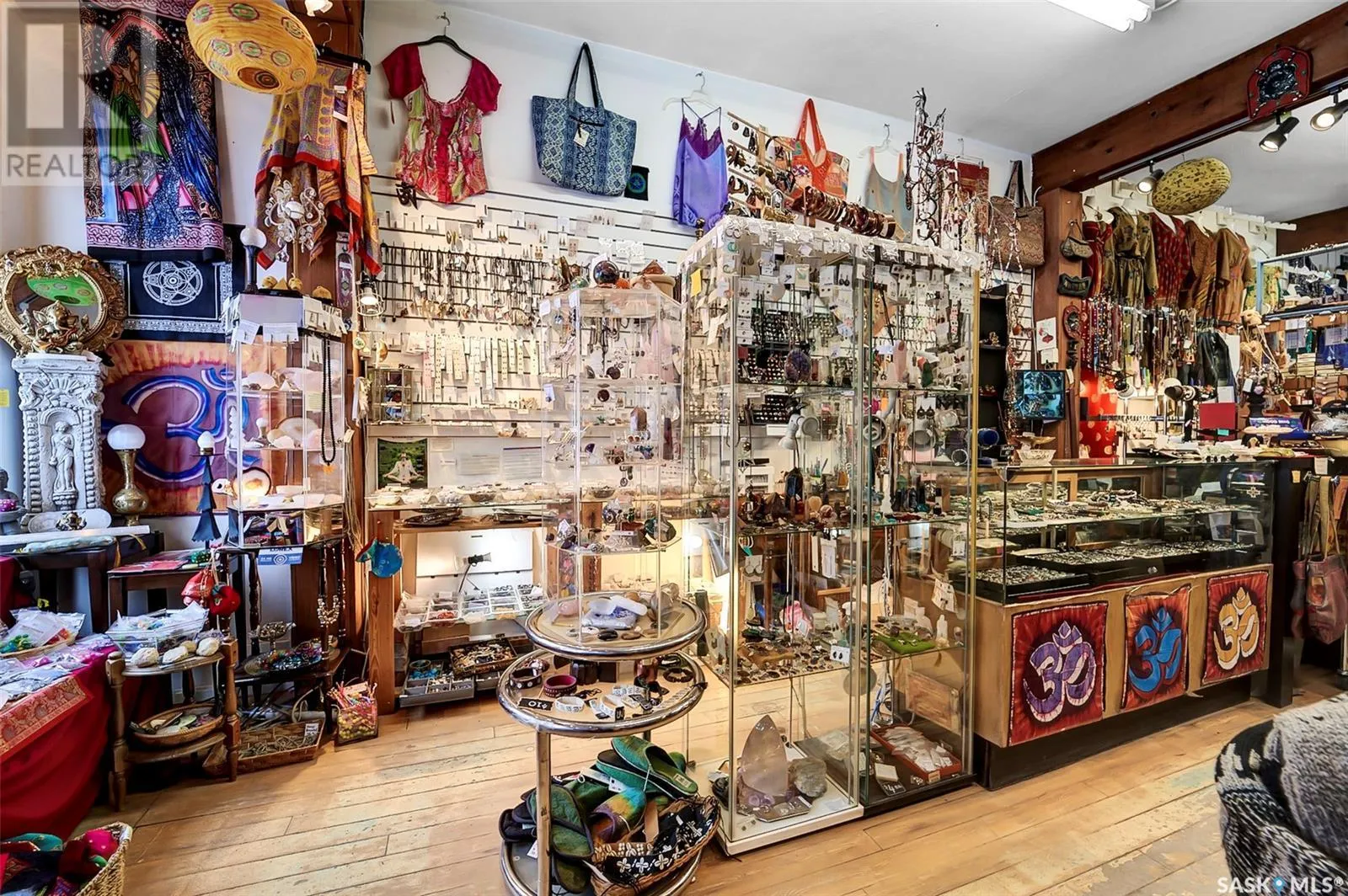 A PRIME COMMERCIAL OPPORTUNITY WITH THE PERFECT LOCATION AND AMPLE PARKING!! Itâs a district known for its laid back atmosphere - thatâs trendy with exceedingly lovely specialty shops sprinkled throughout. Situated along Broadway Avenue, seize the opportunity to own this beautiful boutique that is top of mind for exceptional customer service and commitment to metaphysical wellness! Successfully operated for more than a decade, Dharma Chakra has just shy of 655 square feet and boasts of an open-concept that is spacious yet comfortable and cozy for its loyal clientele. Coupled with high visibility, heavy foot traffic and convenient accessibility - this business is tucked between two other storefronts within the same structure helping to offset expenses! Step inside, where you will find a polished but casual environment that is a constellation of vibrant clothing, local goods and ethically sourced products like singing bowls, crystals and kimonos offset by earthy hues. Curated with care, this well-appointed store showcases oversized windows that cascades light throughout the space. Complete with lovely hardwood floors, fixtures and complemented by glistening display cases to give a new buyer - a head-start! This property is perfect for those who love textiles and thoughtful discussions about the products aimed at providing lasting wellness within. The added BONUS - when there's the annual street fair/sidewalk sales or parking spots are just hard to snag - problem solved - thereâs parking out back for customers as well as your staff! Further enhancements to the space include a bathroom downstairs for staff, storage for stock as well as improvements like a new roof and water heater in recent years! Mere minutes from downtown, come take a look and fall in love with the store along with the neighbourhood that thrives on creativity and collaborating!! Inventory to be sold separately, Financial information available with an executed confidentiality agreement. (id:27476)