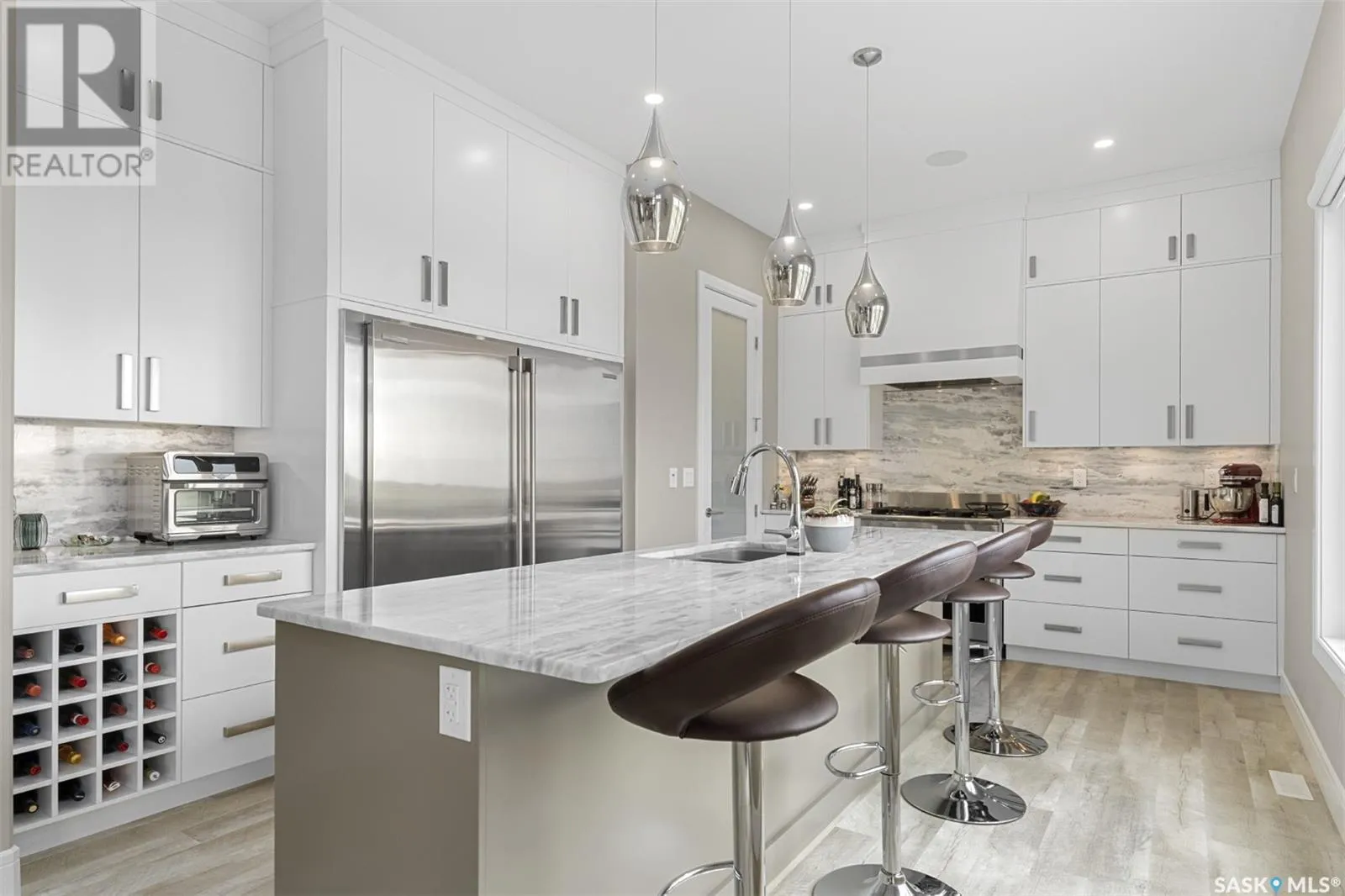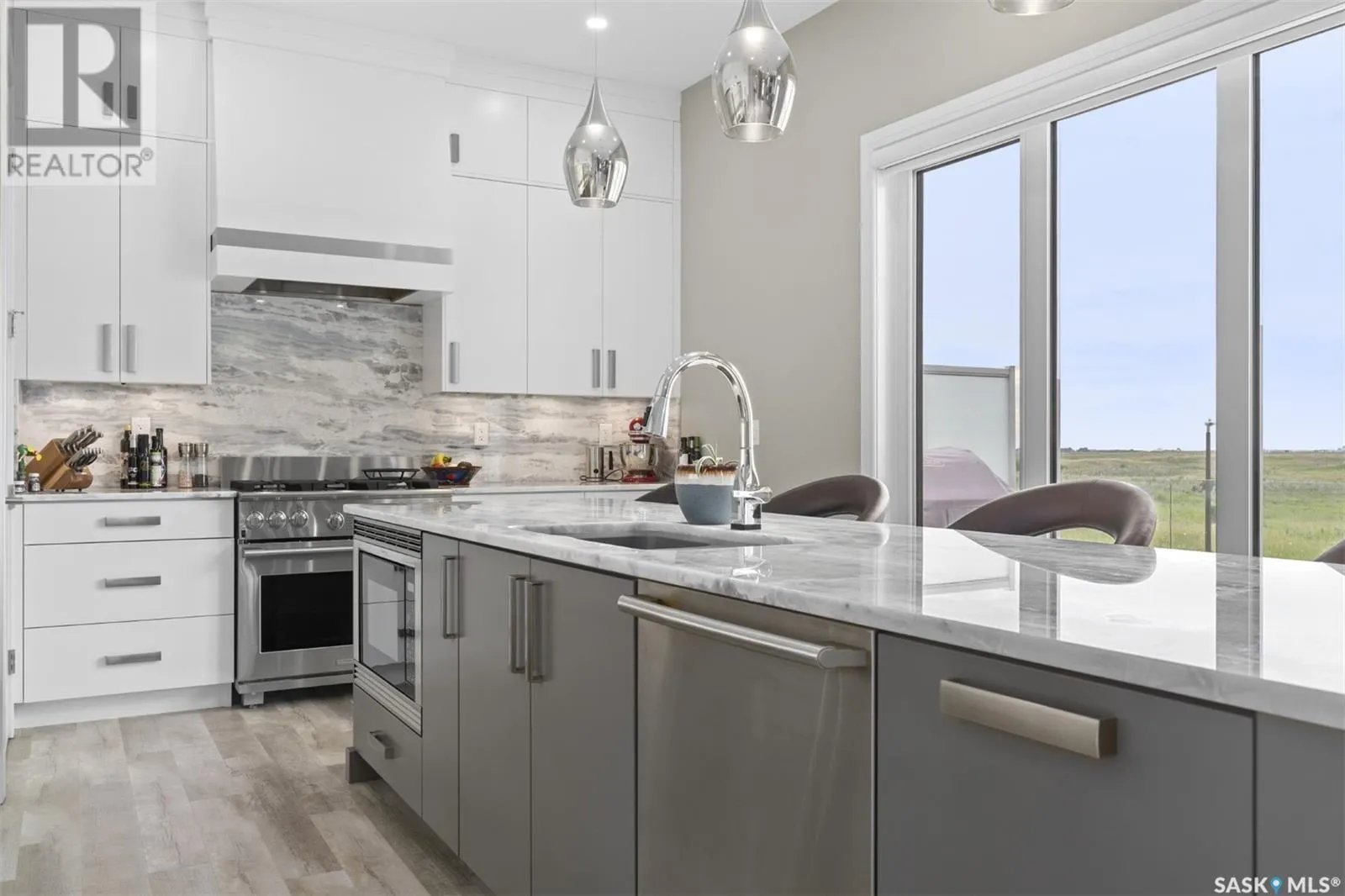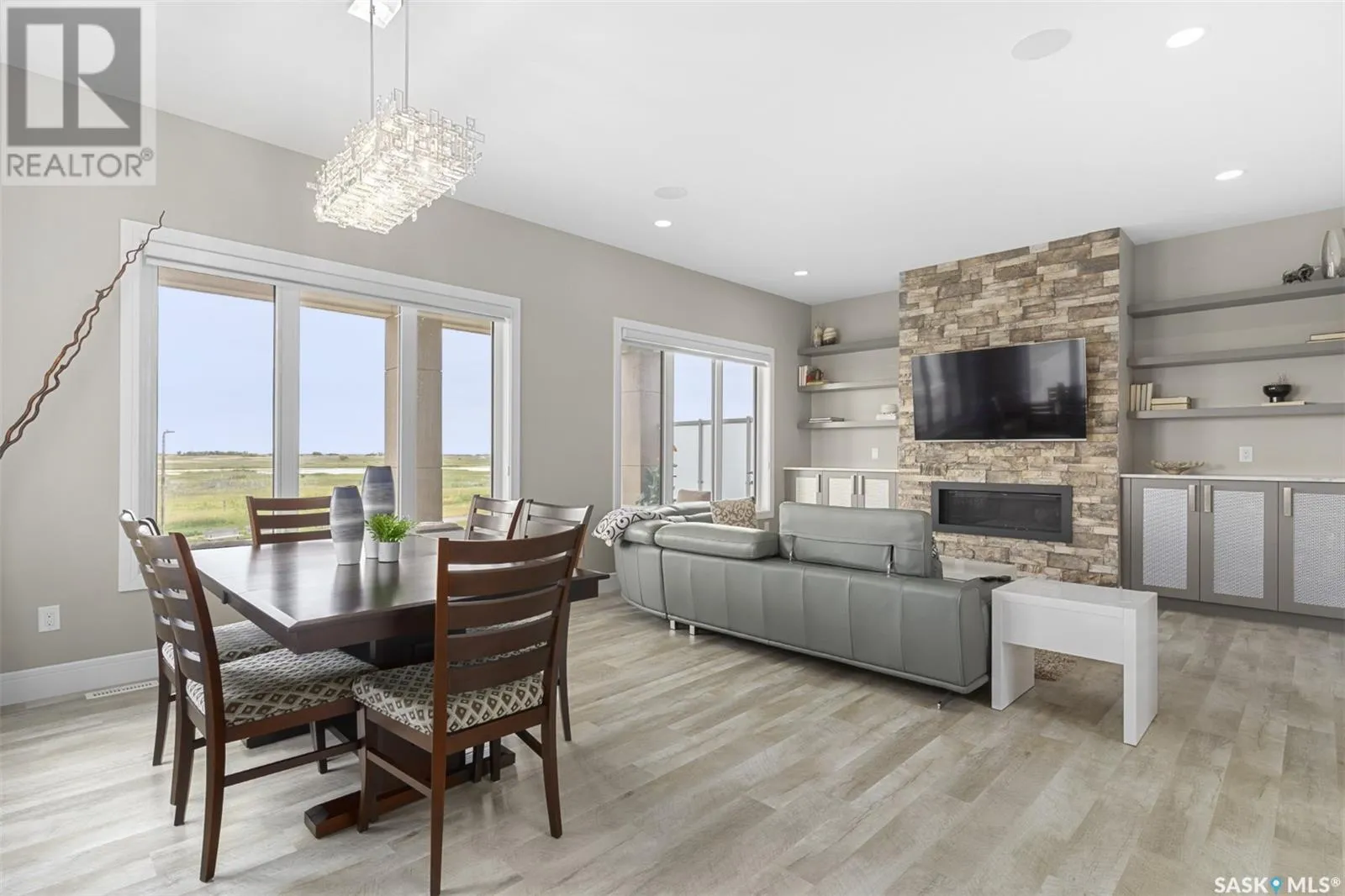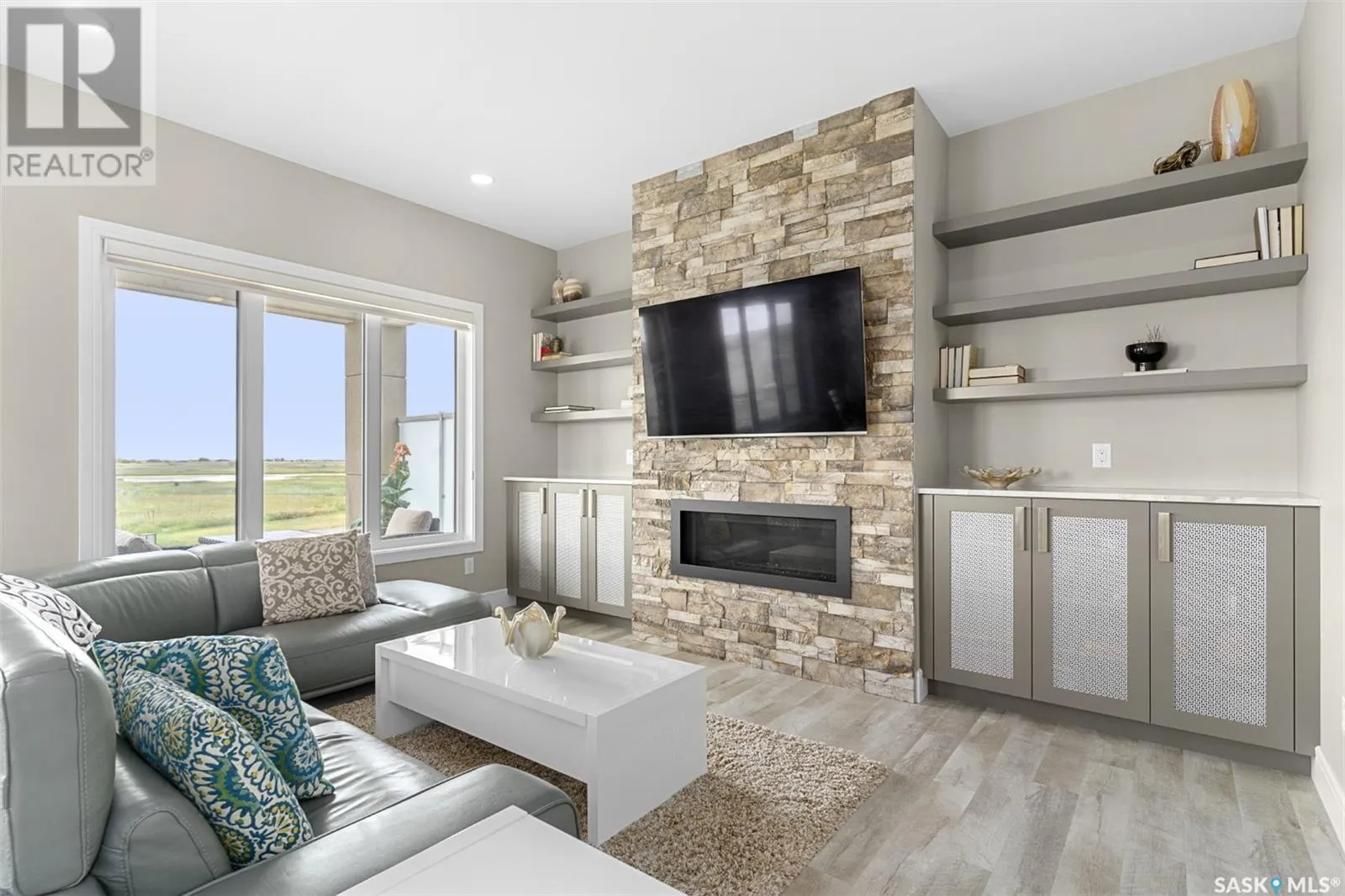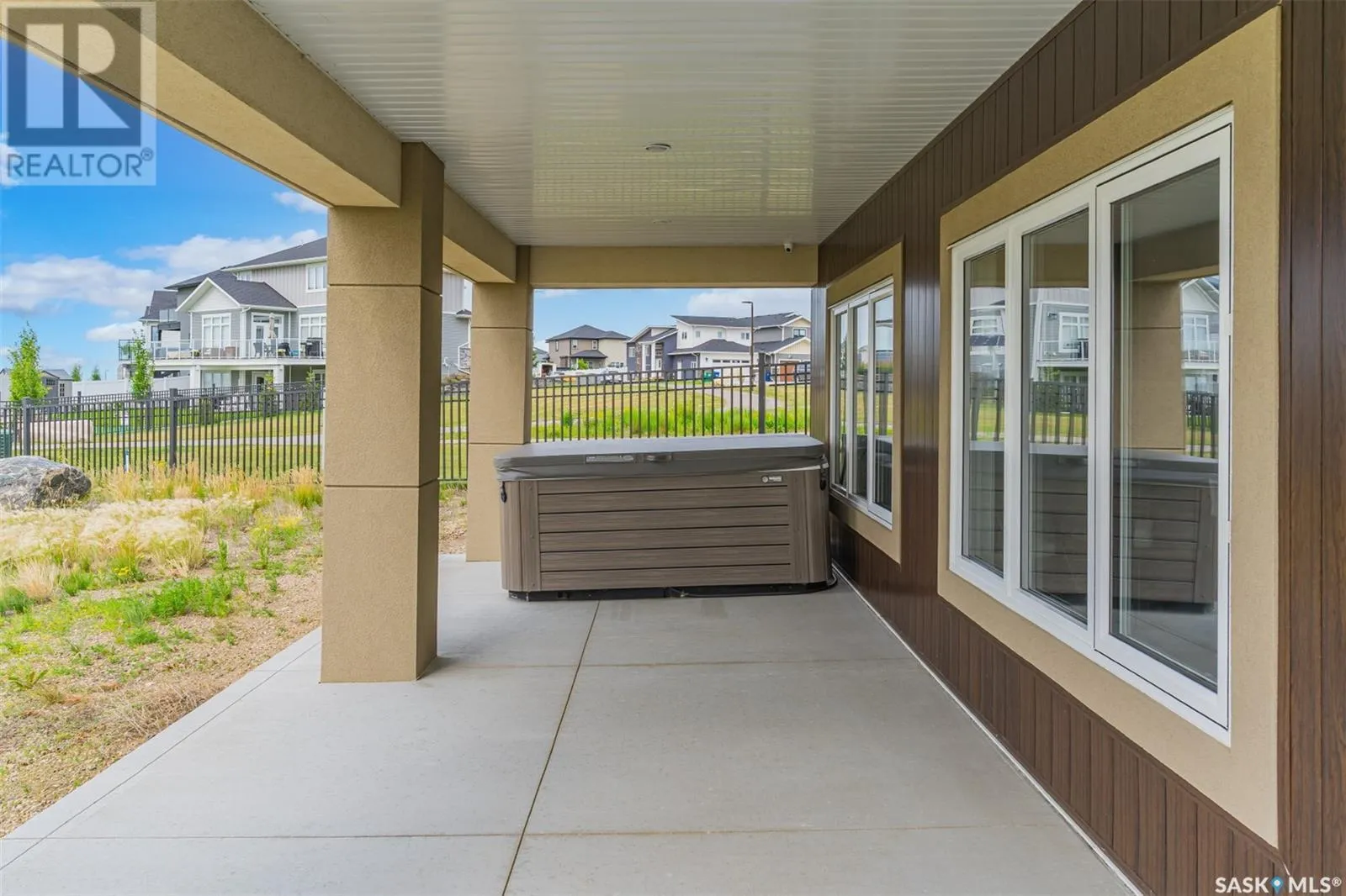 An exquisite 2 story walkout home nestled in beautiful surroundings of the Meewasin Northeast Swale. This home sits in a tranquil setting, enveloped by the sights, sounds and scents of nature. Entering you're greeted by grand and inviting spaces, warmed by natural gas fireplaces and a multitude of windows that capture light and stunning views. The kitchen is a perfect blend of style and functionality, featuring a 10 foot island, quartz counters & backsplashes, ideal for family and entertaining. Equipped with professional-grade appliances like a sub-zero refrigerator, gas range and others, the kitchen caters to all your culinary needs. The walk through pantry provides ample storage, leading to a boot room with direct garage access. The main floor also includes an office, laundry room and a two-piece bathroom. A custom garage extends your living space, complete with an epoxy floor coating, in-floor heating and room for vehicles, storage and more. Step out onto the expansive 460 square foot deck for outdoor dining, relaxation and enjoying mesmerizing sunsets. Upstairs, you'll find a spacious bonus room, a luxurious primary bedroom featuring a gas fireplace, a lavish 5-piece ensuite, a dressing room and sizeable deck perfect for morning coffee or evening drinks enjoying the sunset. Two additional bedrooms and a 4-piece bathroom complete the second floor. Living space continues with a fully developed walkout basement - family and games room, wet bar, additional bedroom, bathroom storage and utility rooms. Walk on onto the patio and take a dip into the hot tub and enjoy the view! This unique property is situated in Aspen Ridge offering access to the stunning ecosystems of native prairie grasses and a natural wildlife corridor leading to the South Saskatchewan River. Experience the breathtaking views and tranquility from your new home at 651 Bolstad Turn. Do not miss your opportunity to view this exception property today! (id:27476)