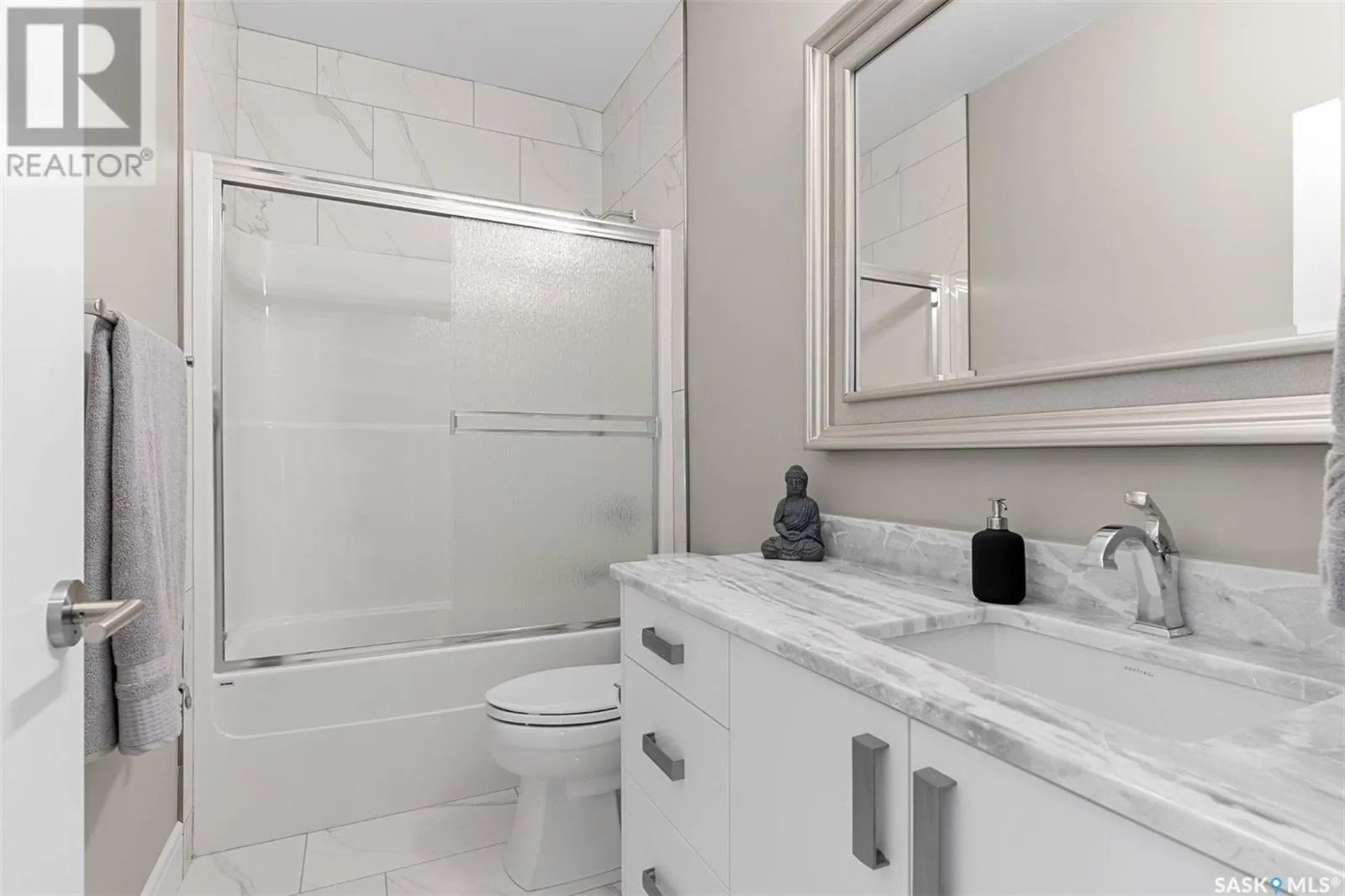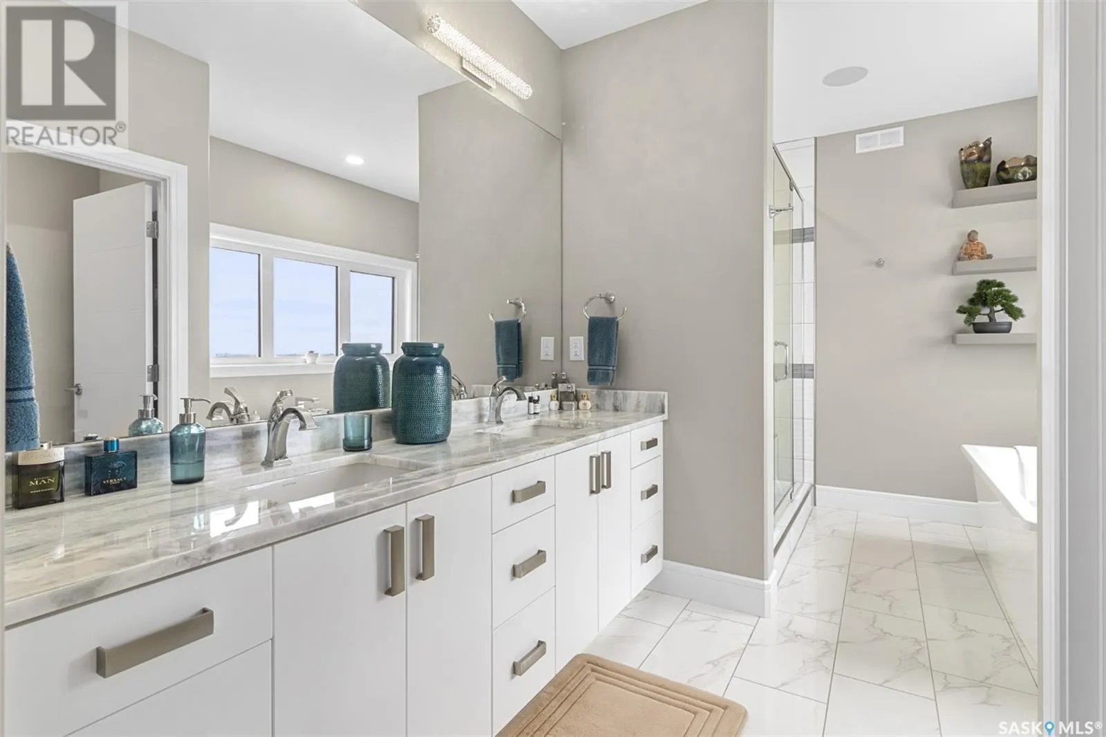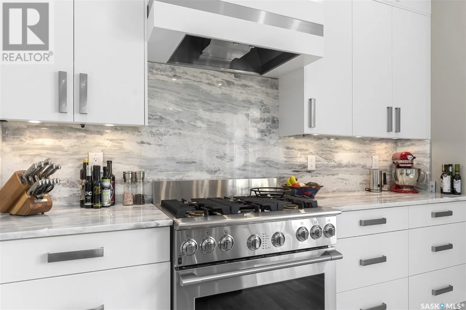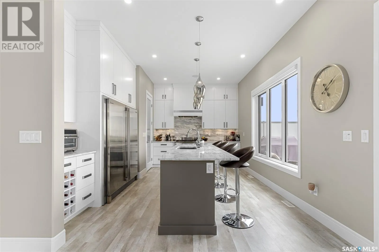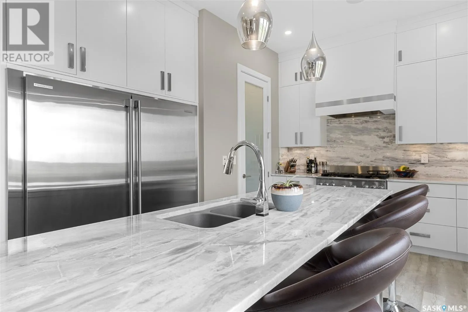 An exquisite 2 story walkout home nestled in beautiful surroundings of the Meewasin Northeast Swale. This home sits in a tranquil setting, enveloped by the sights, sounds and scents of nature. Entering you're greeted by grand and inviting spaces, warmed by natural gas fireplaces and a multitude of windows that capture light and stunning views. The kitchen is a perfect blend of style and functionality, featuring a 10 foot island, quartz counters & backsplashes, ideal for family and entertaining. Equipped with professional-grade appliances like a sub-zero refrigerator, gas range and others, the kitchen caters to all your culinary needs. The walk through pantry provides ample storage, leading to a boot room with direct garage access. The main floor also includes an office, laundry room and a two-piece bathroom. A custom garage extends your living space, complete with an epoxy floor coating, in-floor heating and room for vehicles, storage and more. Step out onto the expansive 460 square foot deck for outdoor dining, relaxation and enjoying mesmerizing sunsets. Upstairs, you'll find a spacious bonus room, a luxurious primary bedroom featuring a gas fireplace, a lavish 5-piece ensuite, a dressing room and sizeable deck perfect for morning coffee or evening drinks enjoying the sunset. Two additional bedrooms and a 4-piece bathroom complete the second floor. Living space continues with a fully developed walkout basement - family and games room, wet bar, additional bedroom, bathroom storage and utility rooms. Walk on onto the patio and take a dip into the hot tub and enjoy the view! This unique property is situated in Aspen Ridge offering access to the stunning ecosystems of native prairie grasses and a natural wildlife corridor leading to the South Saskatchewan River. Experience the breathtaking views and tranquility from your new home at 651 Bolstad Turn. Do not miss your opportunity to view this exception property today! (id:27476)