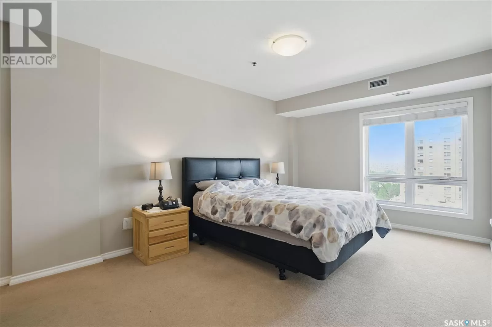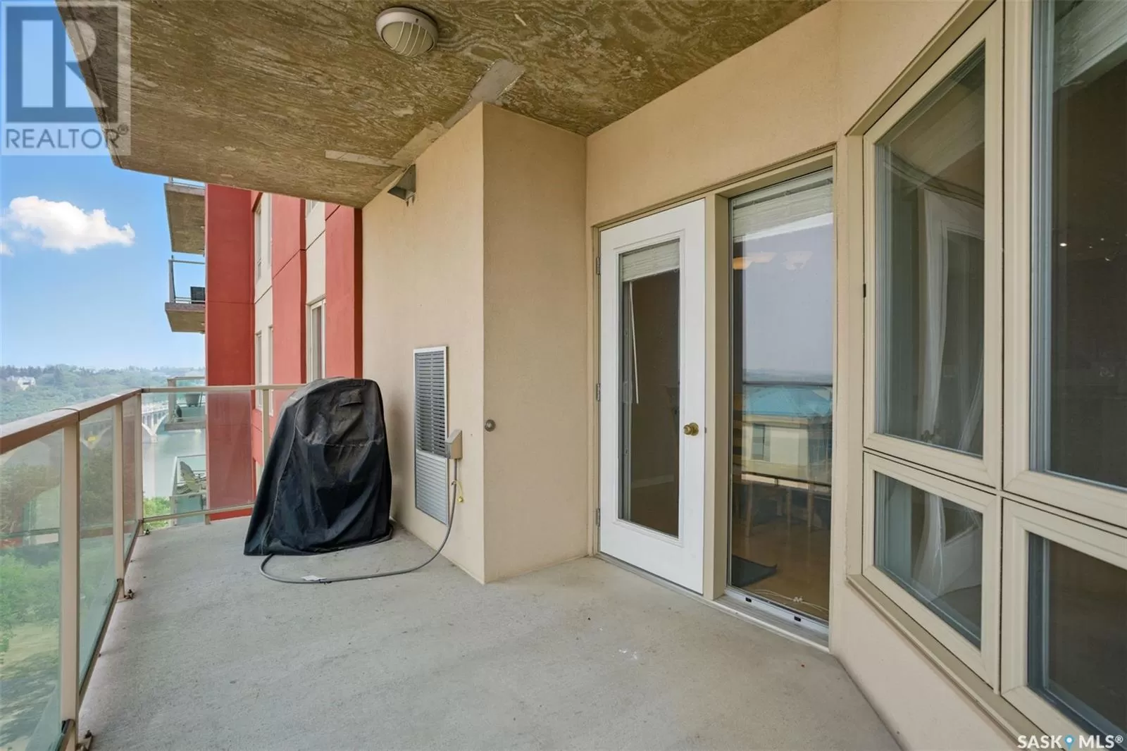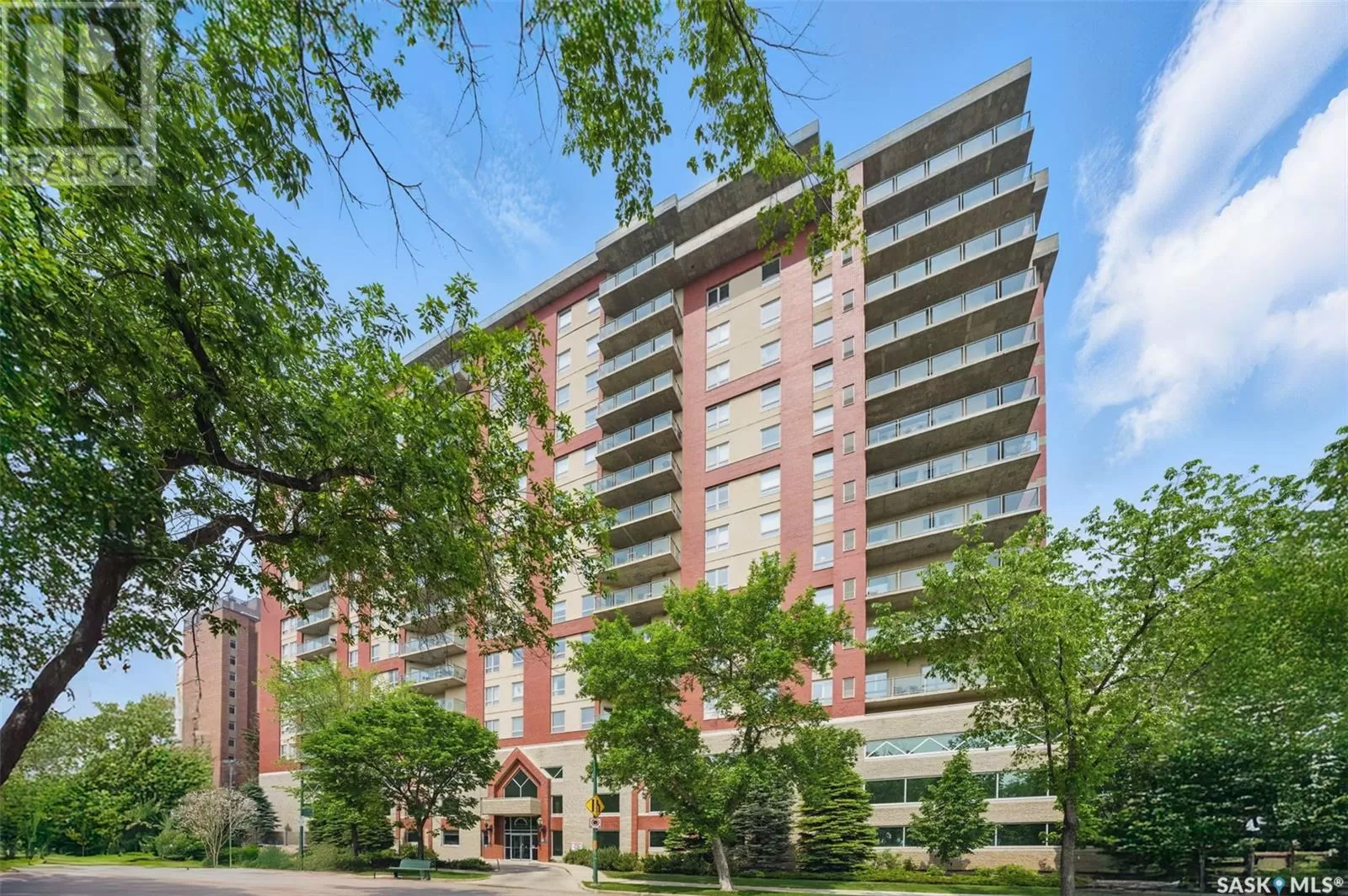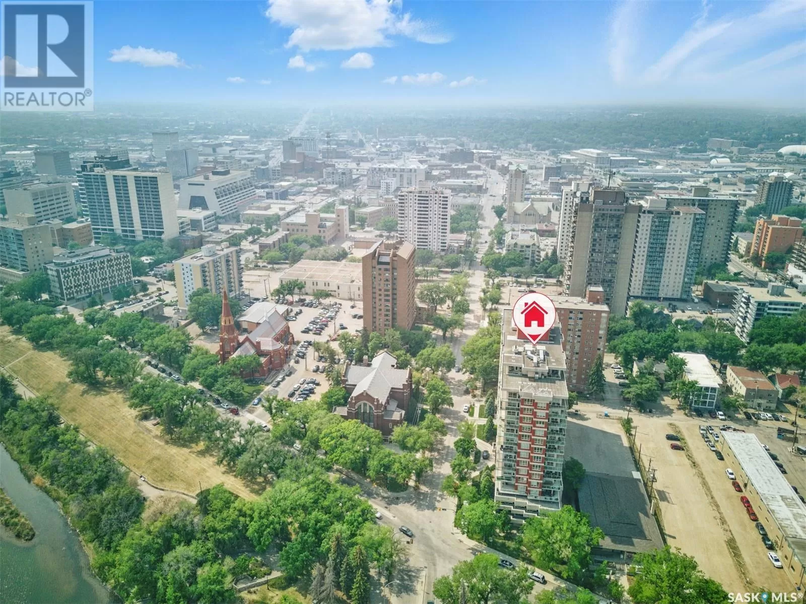 Welcome to the Riverfront! One the best locations in Saskatoon. This prestigious 10th floor condo has spectacular views of the river, Kinsmen Park, University Bridge, and the Children's Hospital. This move in ready 2 bed, 2bath suite, boasts maple shaker cabinets, island kitchen, open, bright living and dining rooms, huge master bedroom with walk-in closet, and en-suite bathroom. There's in-suite laundry, a spacious balcony with natural gas BBQ, central air, heated underground parking, and two storage lockers. The building offers extra perks such as exercise room with new equipment, pool table, meeting room, rentable guest suites, security cameras, and an on-site caretaker. Just steps from all the riverfront activities, downtown, and RUH. Condo fees include heat, insurance, water, sewer, garbage, and building maintenance. Newer fridge and microwave. Can remain fully furnished if desired. Don't miss this deal today! (id:27476)