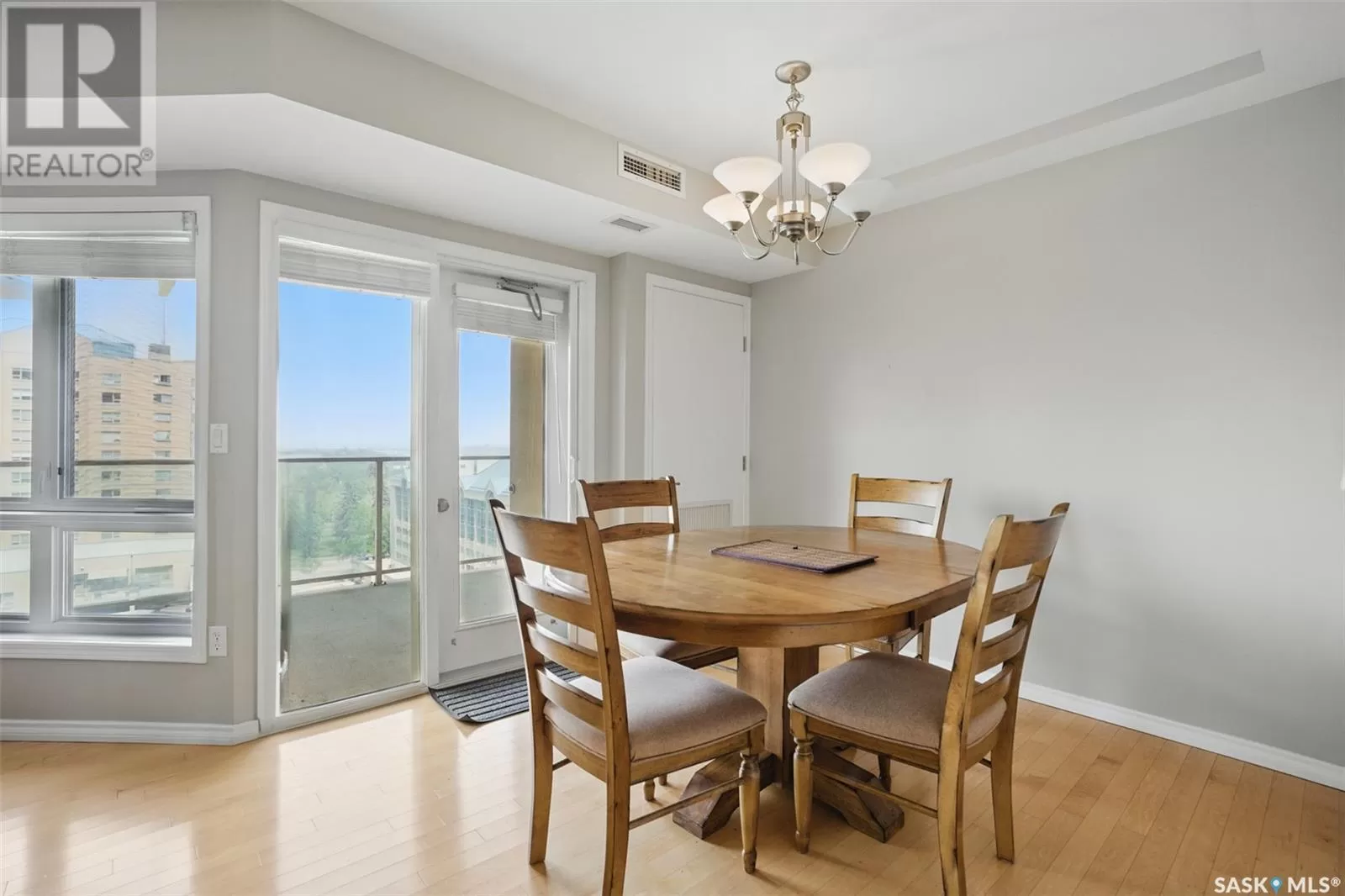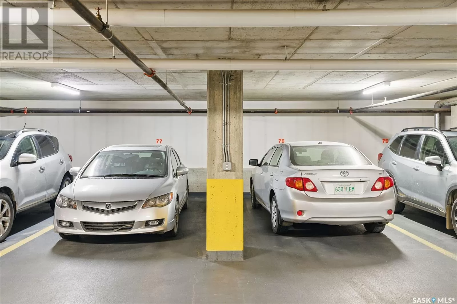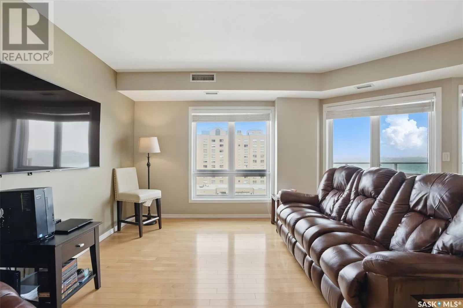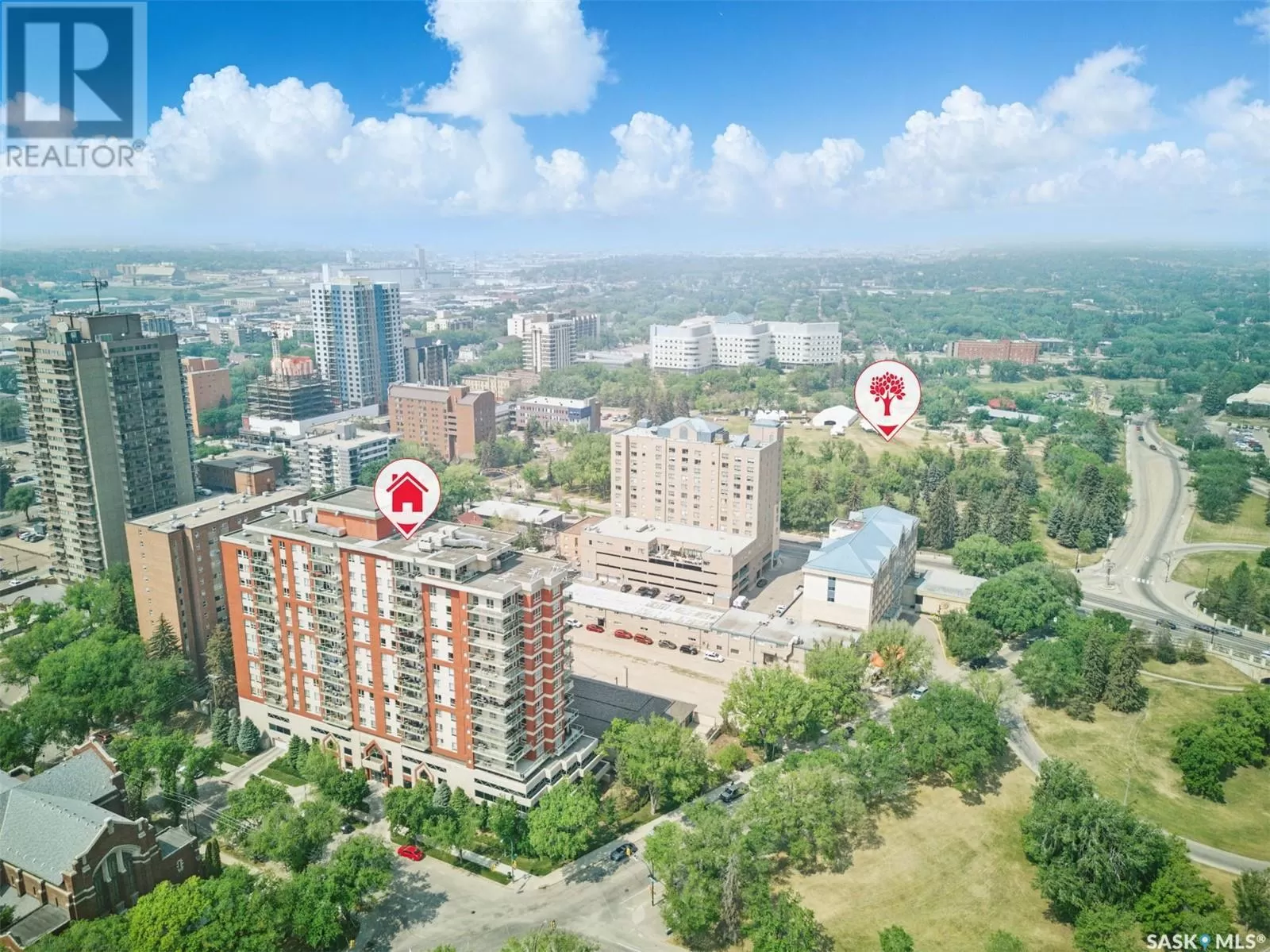 Welcome to the Riverfront! One the best locations in Saskatoon. This prestigious 10th floor condo has spectacular views of the river, Kinsmen Park, University Bridge, and the Children's Hospital. This move in ready 2 bed, 2bath suite, boasts maple shaker cabinets, island kitchen, open, bright living and dining rooms, huge master bedroom with walk-in closet, and en-suite bathroom. There's in-suite laundry, a spacious balcony with natural gas BBQ, central air, heated underground parking, and two storage lockers. The building offers extra perks such as exercise room with new equipment, pool table, meeting room, rentable guest suites, security cameras, and an on-site caretaker. Just steps from all the riverfront activities, downtown, and RUH. Condo fees include heat, insurance, water, sewer, garbage, and building maintenance. Newer fridge and microwave. Can remain fully furnished if desired. Don't miss this deal today! (id:27476)