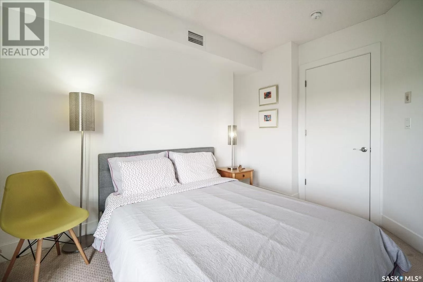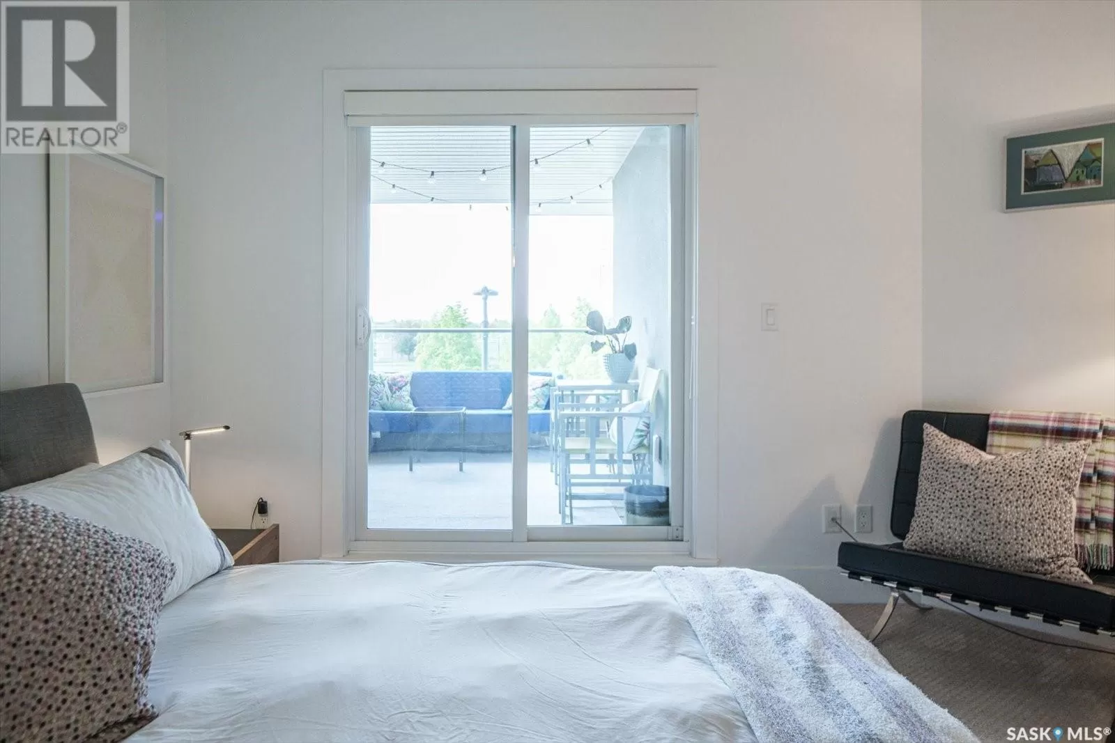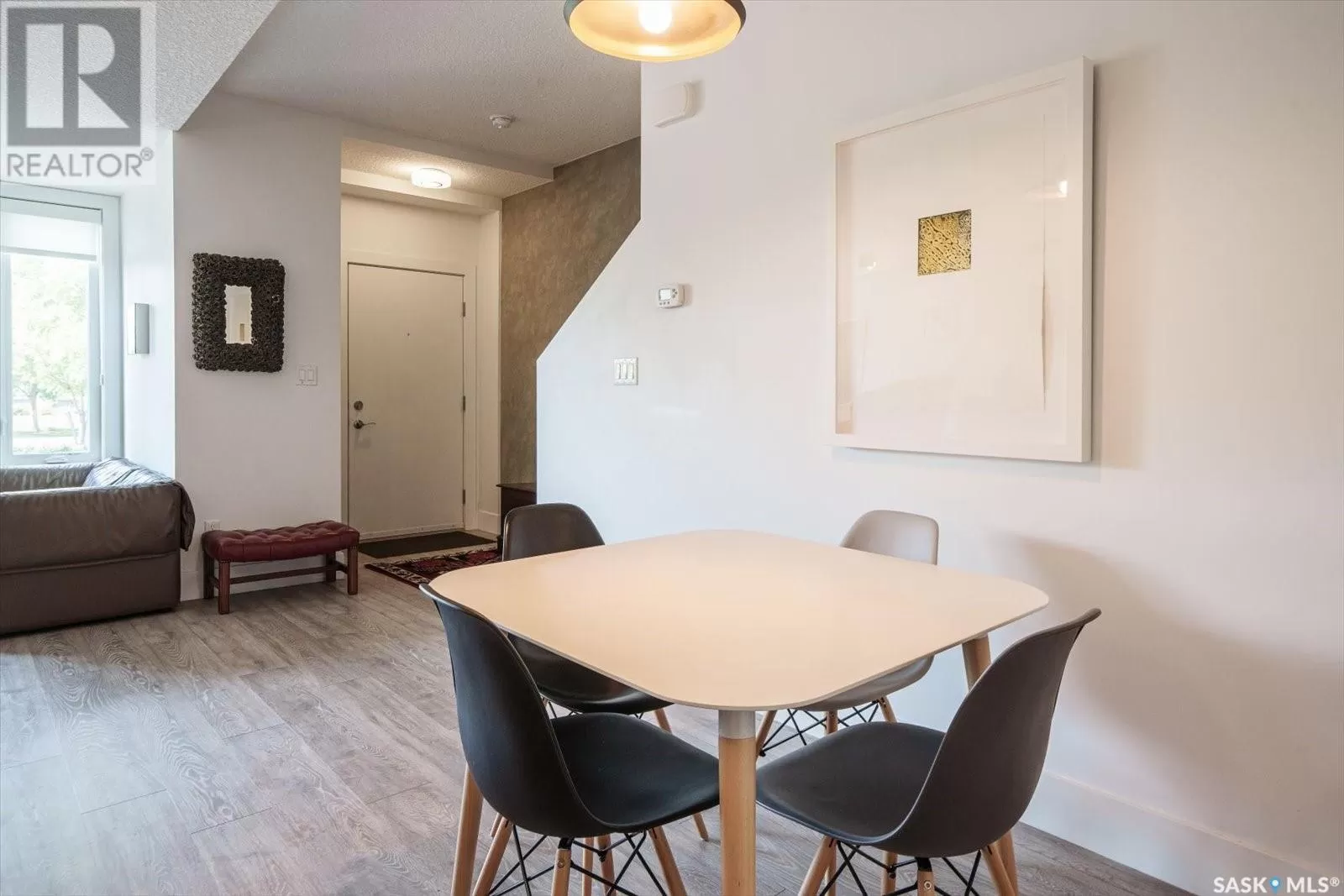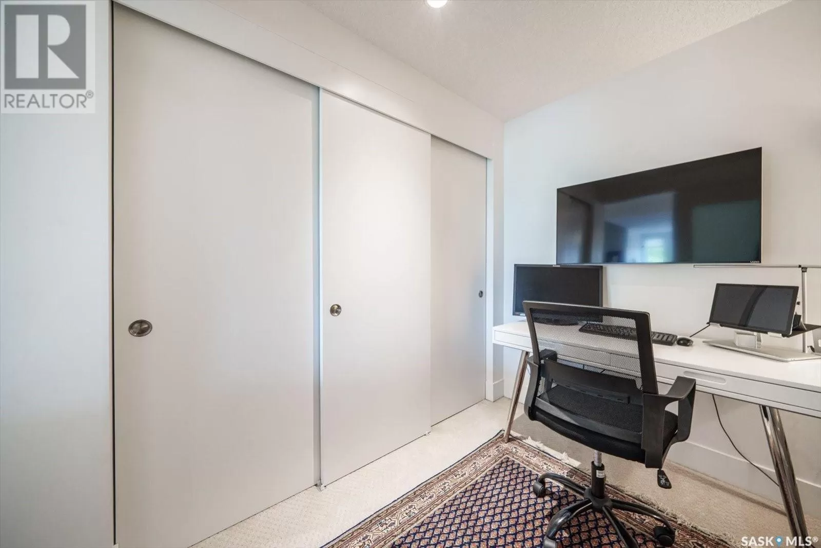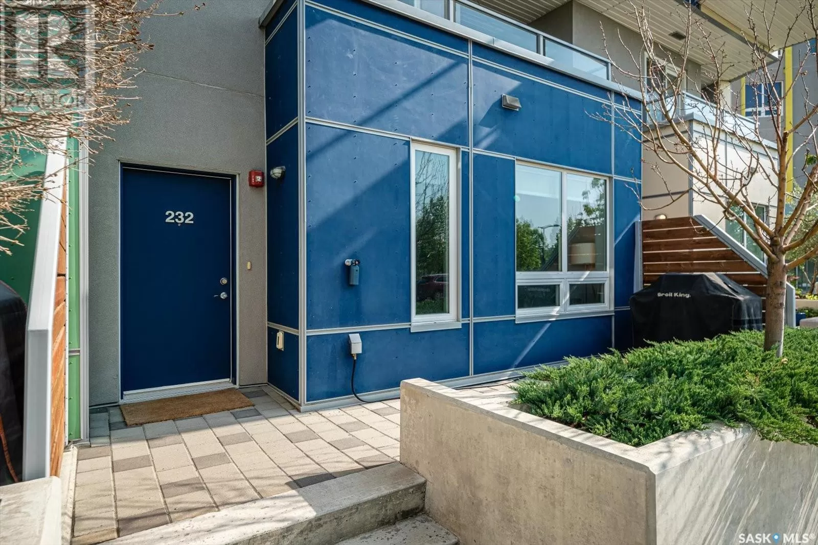 Sophisticated architecture and functional design come together in this centrally located, modern two-storey condominium. Located in River Landingâjust steps from the Remai Modern, Meewasin Trail, and the cityâs best cafésâthis home is ideal for an active professional or as a revenue property alike. Facing a lovely park and next to the Gather Local Market, the unit offers rare outdoor living with two private balconiesâeach accessible from the upper-level bedroomsâand a private, landscaped patio on the main floor. The main level features open, well-proportioned, and light-filled living spaces. A central kitchen with island, stainless steel appliances, dedicated dining area, and a bright living room with large windows anchor the space. A generous den on this level makes for an ideal home office or flex space. A walk-in pantry, powder room, and enclosed storage room complete the floor. Upstairs, two spacious bedrooms each have access to their own private terrace. The primary includes a walk-in closet and its own ensuite, while the second bedroom is steps from another full bath and the in-suite laundry. Two underground parking stalls, a storage locker, in-suite ventilation system, and access to bike storage round out the offering. Pets permitted with restrictions. Condos of this caliber rarely come to marketâwell-positioned for both lifestyle and long-term value. (id:27476)