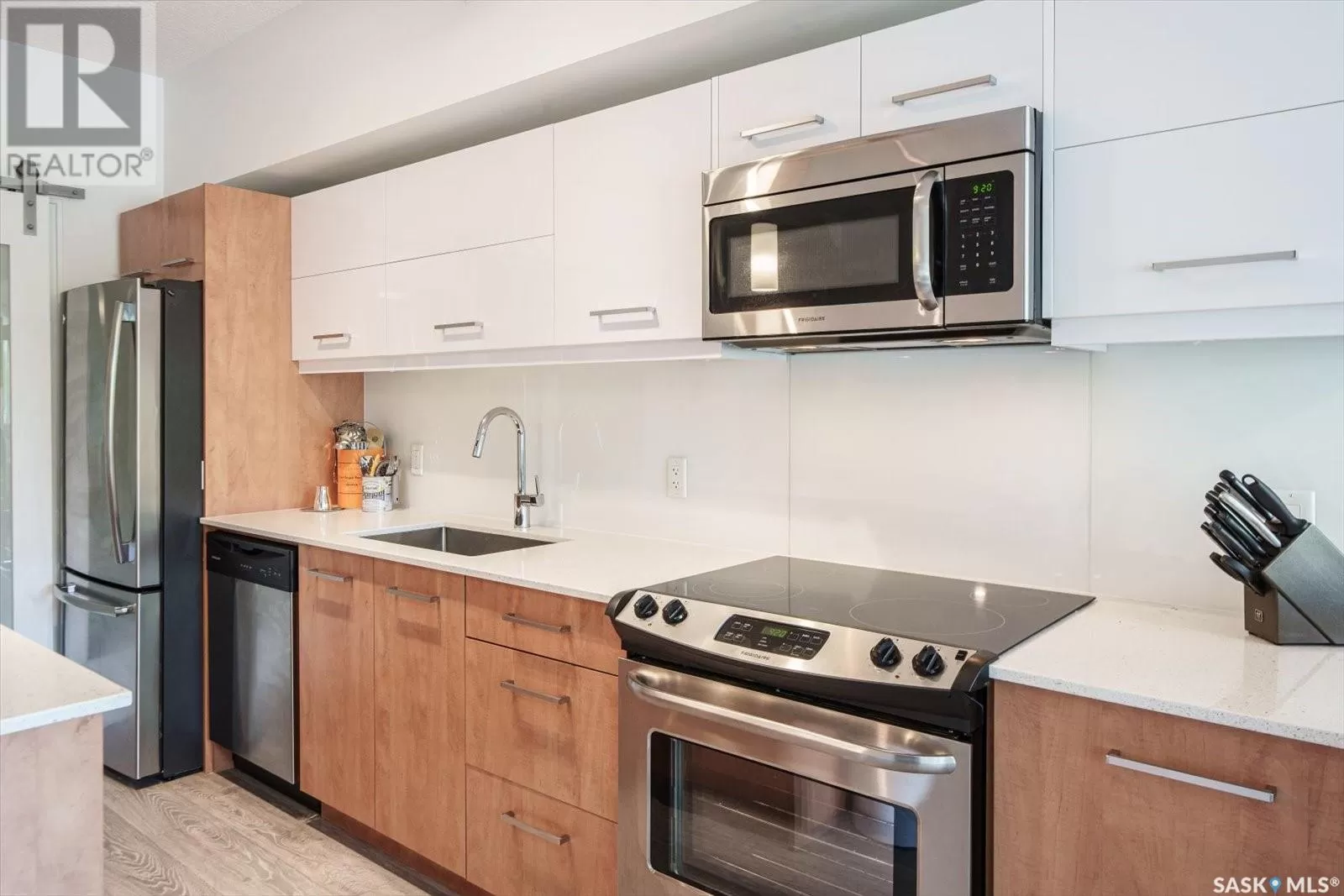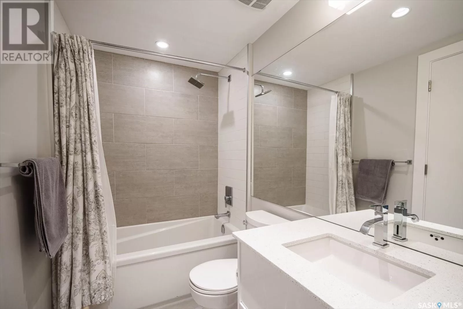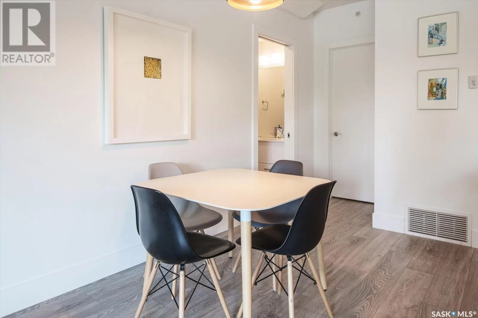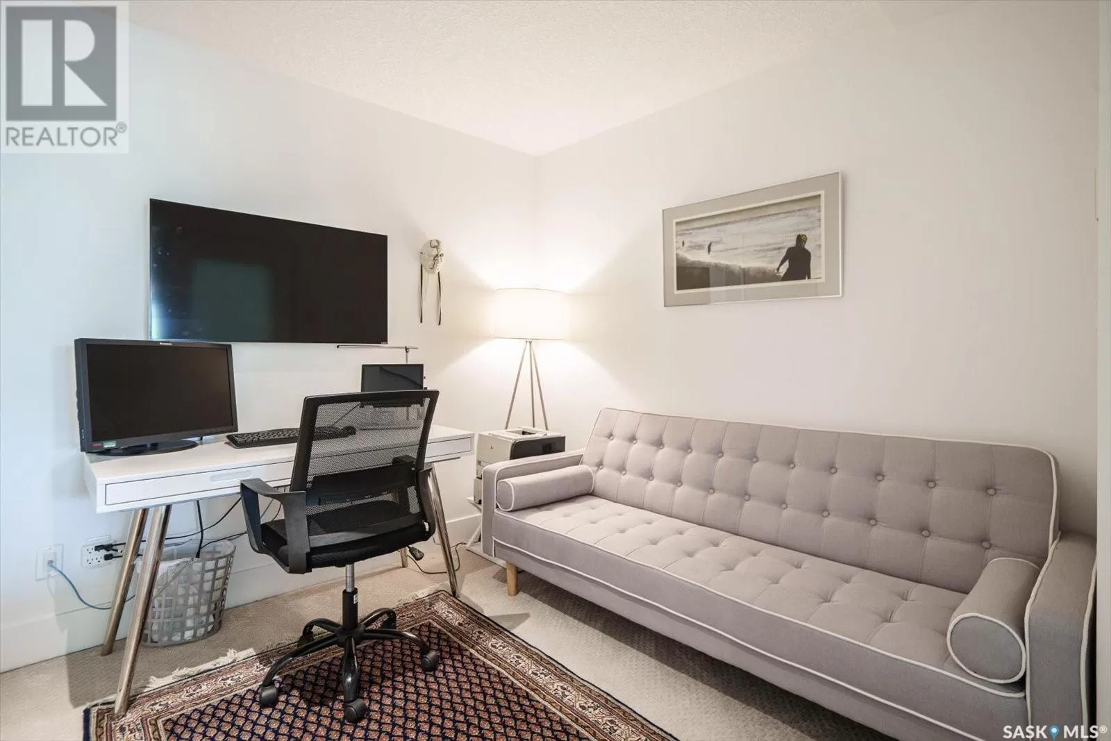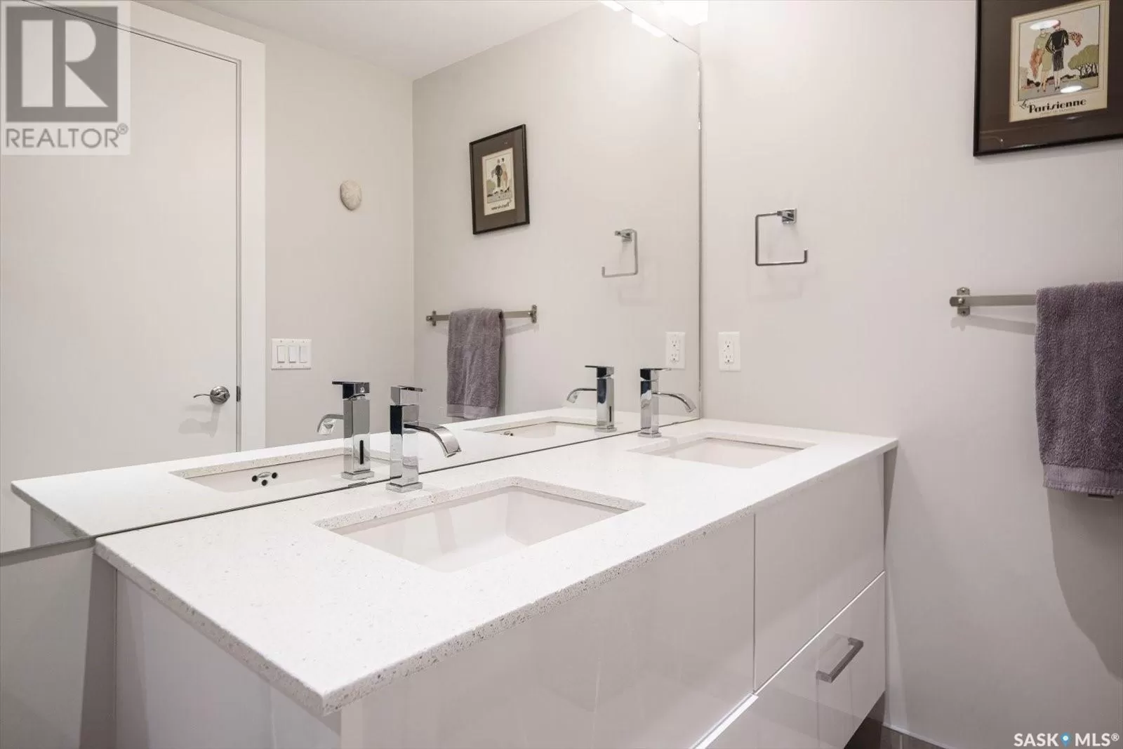 Sophisticated architecture and functional design come together in this centrally located, modern two-storey condominium. Located in River Landingâjust steps from the Remai Modern, Meewasin Trail, and the cityâs best cafésâthis home is ideal for an active professional or as a revenue property alike. Facing a lovely park and next to the Gather Local Market, the unit offers rare outdoor living with two private balconiesâeach accessible from the upper-level bedroomsâand a private, landscaped patio on the main floor. The main level features open, well-proportioned, and light-filled living spaces. A central kitchen with island, stainless steel appliances, dedicated dining area, and a bright living room with large windows anchor the space. A generous den on this level makes for an ideal home office or flex space. A walk-in pantry, powder room, and enclosed storage room complete the floor. Upstairs, two spacious bedrooms each have access to their own private terrace. The primary includes a walk-in closet and its own ensuite, while the second bedroom is steps from another full bath and the in-suite laundry. Two underground parking stalls, a storage locker, in-suite ventilation system, and access to bike storage round out the offering. Pets permitted with restrictions. Condos of this caliber rarely come to marketâwell-positioned for both lifestyle and long-term value. (id:27476)