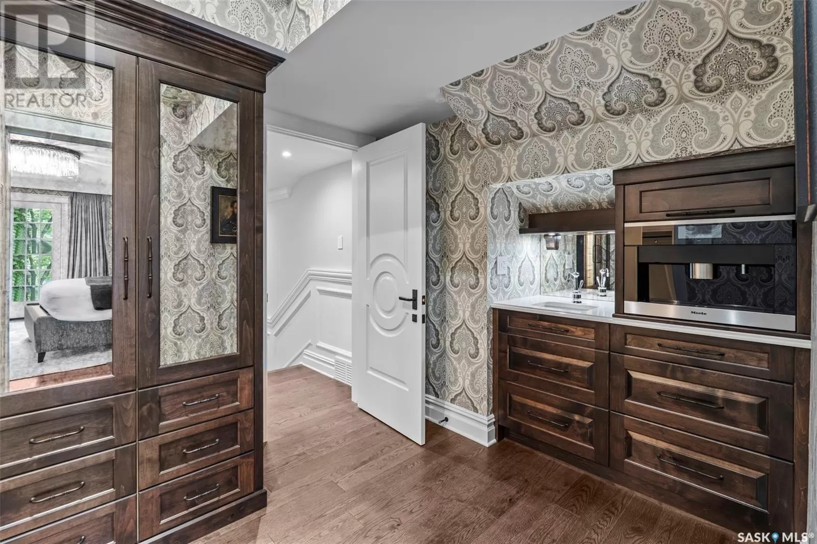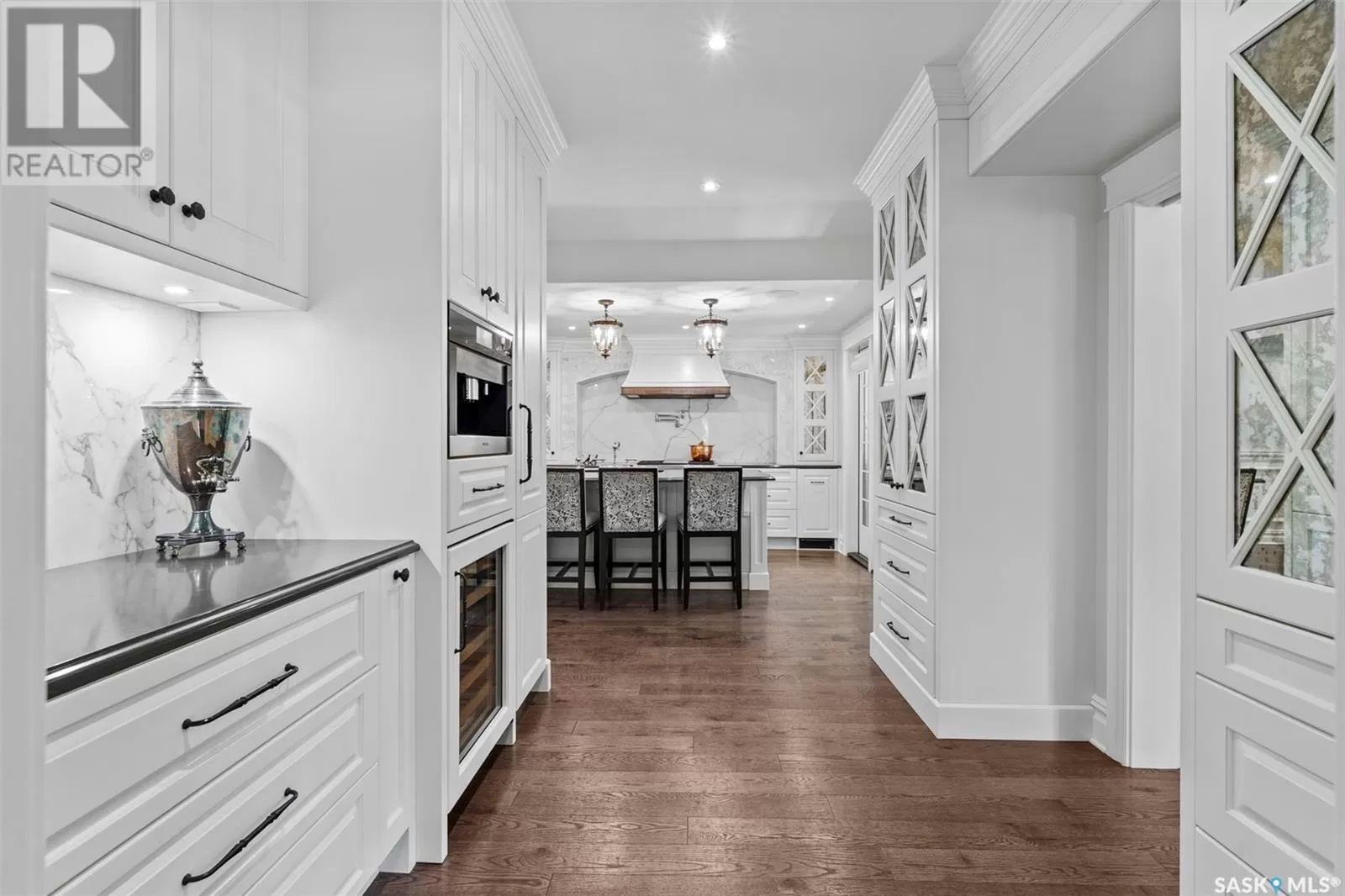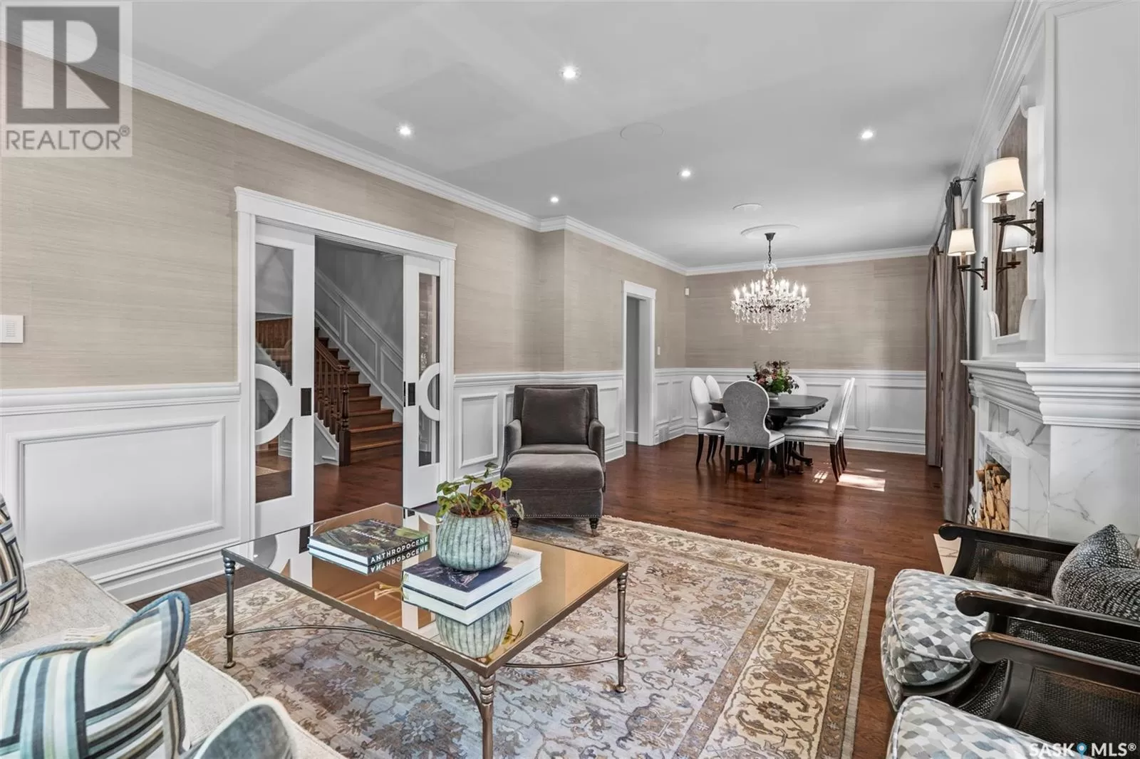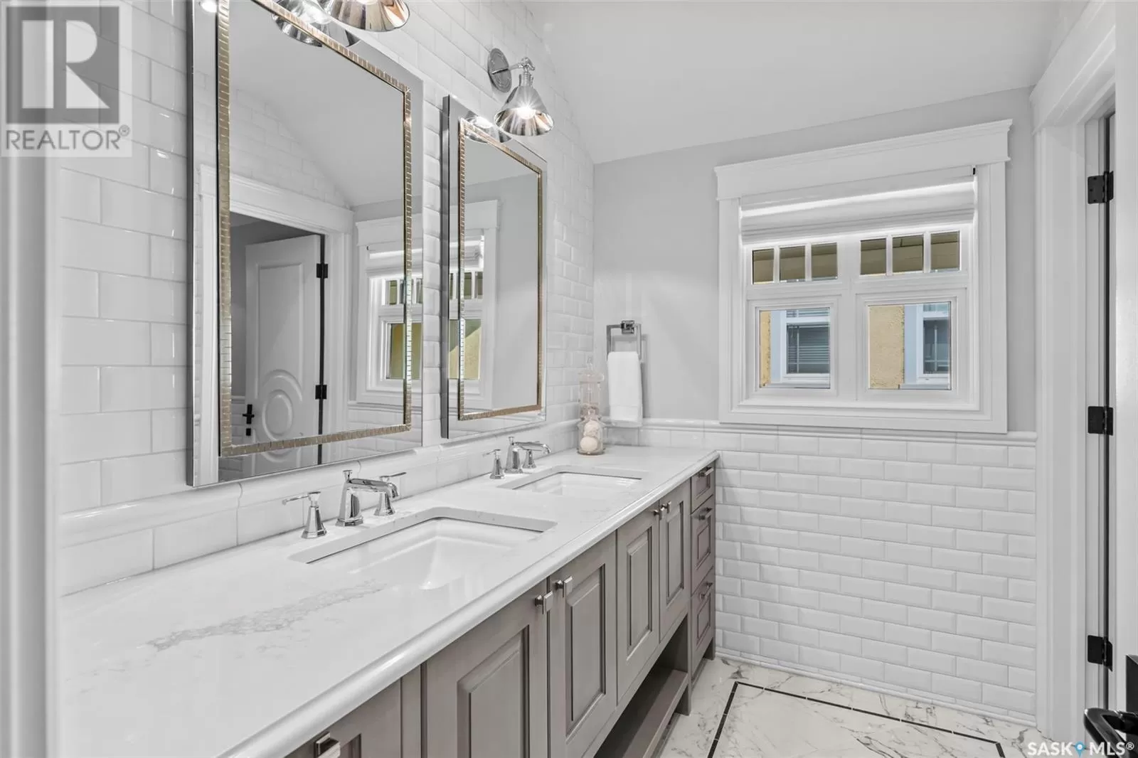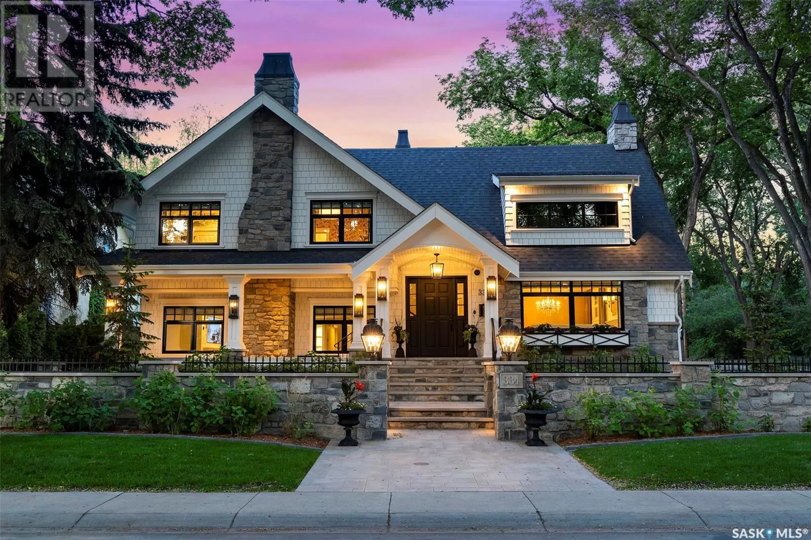 Located on a corner lot, directly across from Labatt Park and steps from river access at Gabriel Dumont Park, this extensively renovated home offers over 4,000 square feet of thoughtful above-grade living space. Originally built in 1965, it underwent a full, down-to-the-studs renovation in 2017 led by Atmosphere Design and Maison Design+Build. The exterior features hand-laid limestone, creating memorable and timeless street appeal. Inside, you'll find Redl cabinetry throughout, top-tier integrated appliances, and Italian marble. The layout includes five bedrooms with four on the upper level and a guest suite with ensuite in the finished basement. The primary suite spans over 800 square feet and the additional upstairs study and main floor office provide multiple quiet spaces to work from home. Outdoor living was thoughtfully considered, with a covered backyard patio that includes integrated audio, infrared ceiling heaters, phantom screens, built-in grill, and hot tub. A second, streetside patio offers additional heated, covered seating with views of Labatt Park. The double attached garage is well finished with built-in cabinetry and provides access to an independently heated and cooled flex space. With very intentional design and millions in renovations, this is a meaningful opportunity to own a timeless home at below the ownerâs and replacement cost. (id:27476)