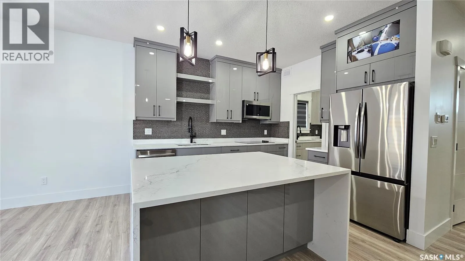 Open House Every Saturday: 11AM - 1PM Welcome to this Custom built Modified Bi-Level, meticulously designed by Gill Homes with Comfort and Style in Mind. This house features 5 bedrooms & 4 bathrooms including a finished 2 bedroom legal basement suite offering income potential to help offset your mortgage cost. You are welcomed by a soaring foyer and elegant tile flooring that leads you to the main area which boasts a spacious Living room displaying a custom Wall featuring an electric fire place, generously planned Dining area and not to mention the massive windows throughout that floods the whole area with tons of natural light. Main Gourmet kitchen features High-end finishes, Oversized Island, Custom Cabinets is then complimented by an Additional Spice/Butler Kitchen equipped with Natural Gas Stove making it a Chef's dream come true! Main floor also shares 2 secondary bedrooms with one of them offering a walk-in closet and a 4-pc Bathroom that shows premium finishes. Master Bedroom features an Accent wall, generously designed Walk-in Closet and a luxury 5pc en-suite with his/her sinks and a Steam Shower. Main suite basement area also offers an openhandedly designed bonus room that can be used as per your imagination with a 1/2 washroom attached. 2-Bedroom Legal Basement suite has reasonably sized bedrooms, a 4pc bath, spacious Living area with an open concept kitchen offering practicality to the space and income potential aswell. Finished Garage with heater, 14x11 Deck, all appliances, Zebra blinds package, Central Vacuum, Concrete Driveway including walkway to basement suite and front landscaping are all INCLUDED making it a move in ready HOME! Donât miss this opportunityâschedule your viewing today! (id:27476)