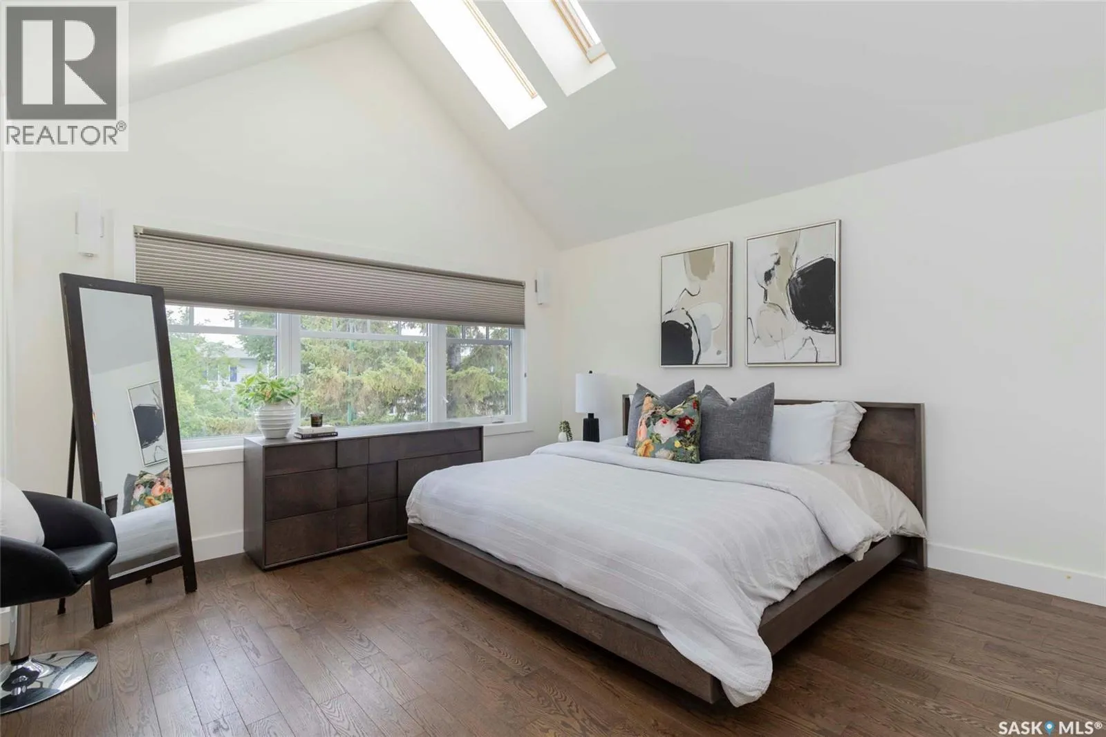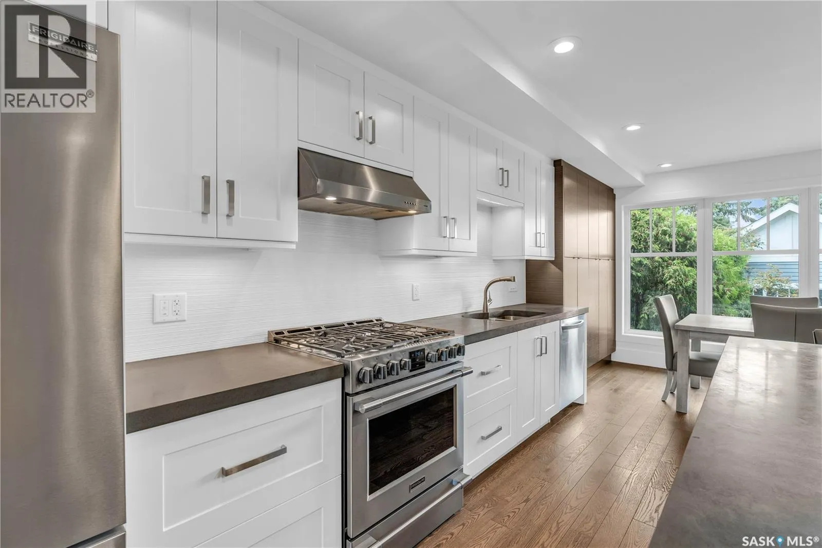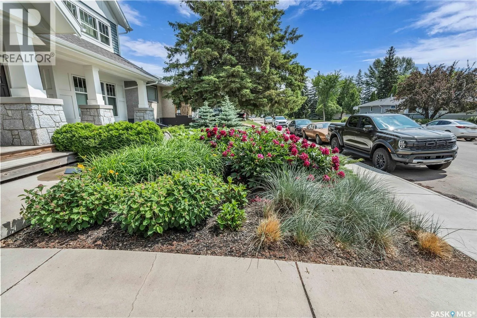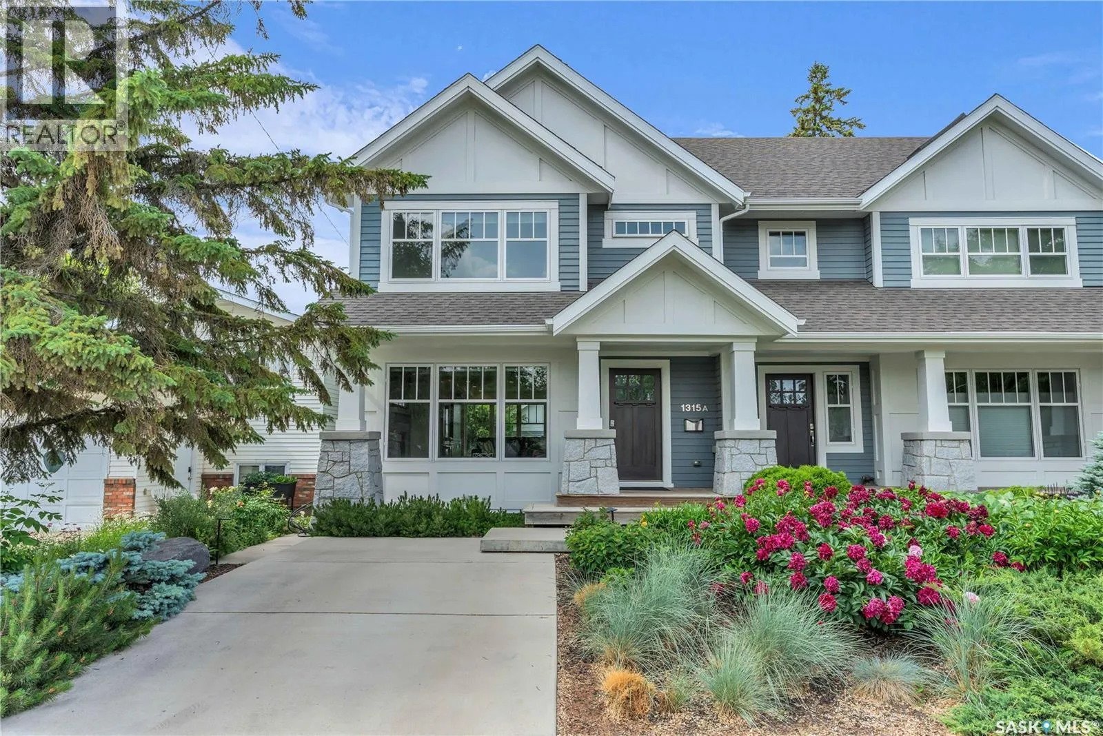 Welcome to 1315A 11th St E, a thoughtfully designed Craftsman-style home that blends timeless elegance with modern energy efficiency. This home is built with high quality finishes, and you can see it in the details. The main floor boasts a chefâs kitchen with custom cabinetry, a large island topped with 2" bluestone, and premium appliances including a gas range, and Miele speed and steam ovens. The bright living room features coffered ceilings, a gas fireplace with masonry surround, and large south-facing windows. Upstairs, the primary suite includes vaulted ceilings, skylights, and a spa-inspired ensuite with a walk-in tile shower. The bathrooms feature floating bluestone vanities, with a jet tub in the main bath. The spacious secondary bedrooms offer ample storage with built-in shelving and in-closet lighting. The basement is filled with natural light thanks to oversized windows and timber-framed window wells, and includes a home office, family room, and generous storage. Oriented to maximize passive solar gain, the home features natural materials, radiant in-floor heating on all levels, dual insulation (spray foam and reflective), and an offset stud wall system to eliminate thermal bridging. The professionally landscaped yard is finished with bluestone tile, LED lighting, and low-maintenance micro-drip irrigation. A heated, insulated double garage provides space for two vehicles, plus an additional driveway in front and parking behind the garage. A rare blend of beauty, efficiency, and craftsmanship in a prime location! (id:27476)