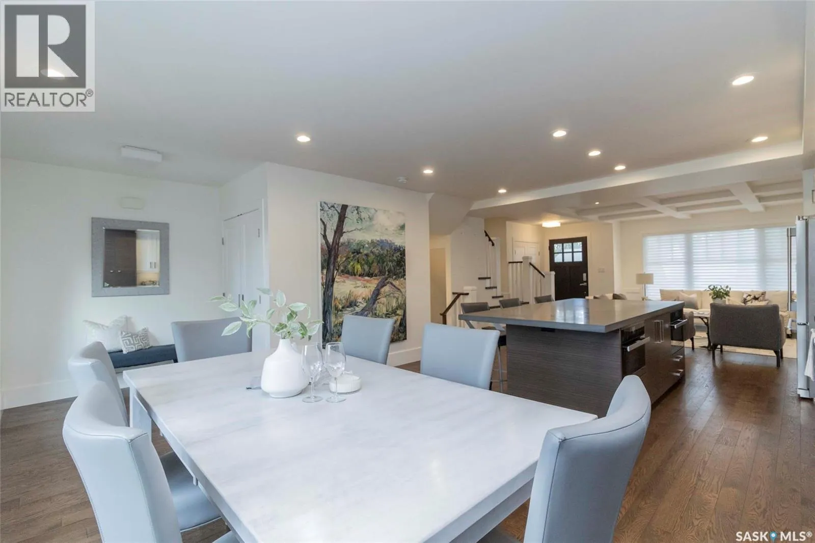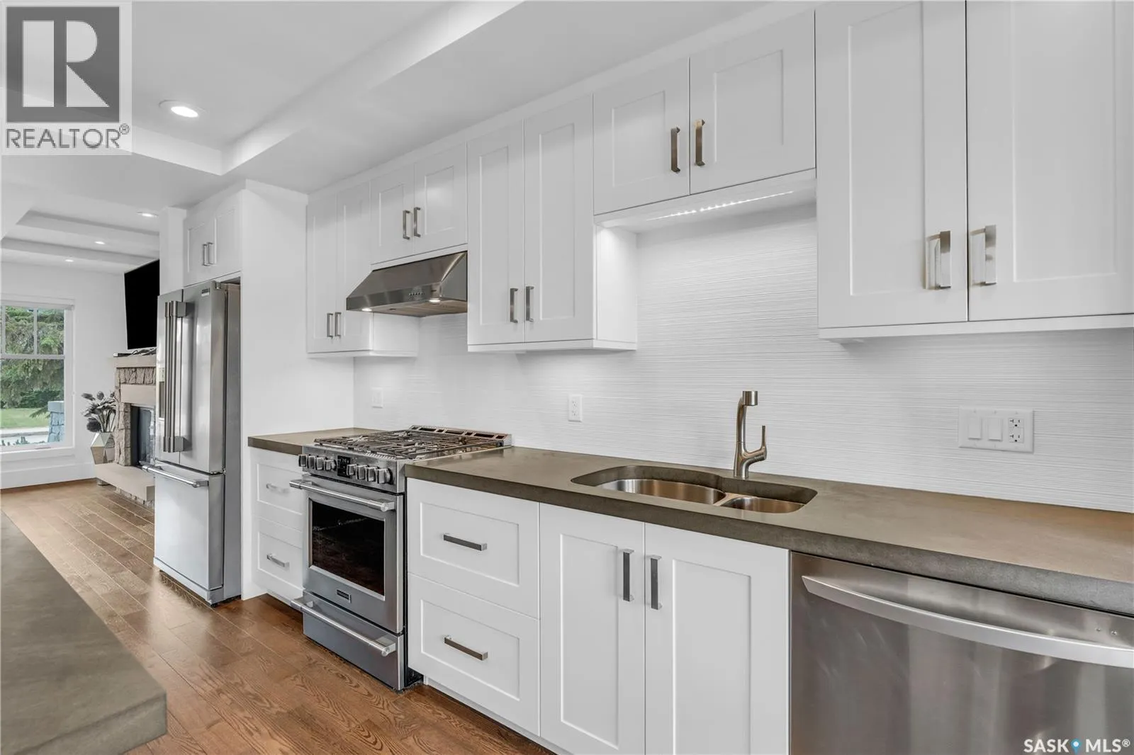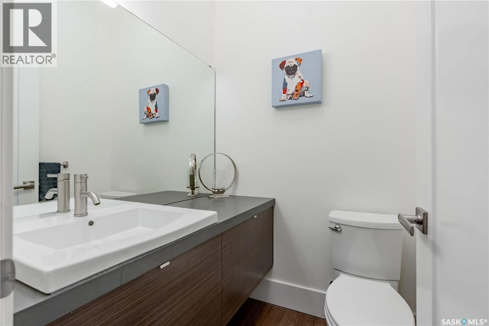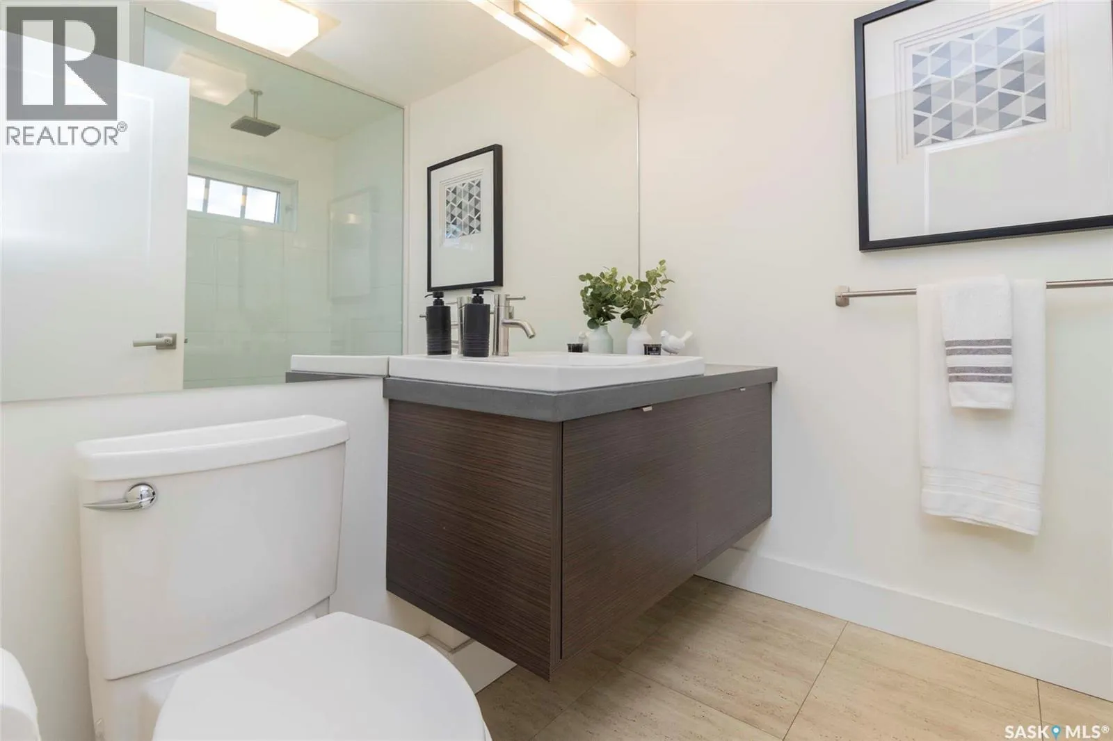 Welcome to 1315A 11th St E, a thoughtfully designed Craftsman-style home that blends timeless elegance with modern energy efficiency. This home is built with high quality finishes, and you can see it in the details. The main floor boasts a chefâs kitchen with custom cabinetry, a large island topped with 2" bluestone, and premium appliances including a gas range, and Miele speed and steam ovens. The bright living room features coffered ceilings, a gas fireplace with masonry surround, and large south-facing windows. Upstairs, the primary suite includes vaulted ceilings, skylights, and a spa-inspired ensuite with a walk-in tile shower. The bathrooms feature floating bluestone vanities, with a jet tub in the main bath. The spacious secondary bedrooms offer ample storage with built-in shelving and in-closet lighting. The basement is filled with natural light thanks to oversized windows and timber-framed window wells, and includes a home office, family room, and generous storage. Oriented to maximize passive solar gain, the home features natural materials, radiant in-floor heating on all levels, dual insulation (spray foam and reflective), and an offset stud wall system to eliminate thermal bridging. The professionally landscaped yard is finished with bluestone tile, LED lighting, and low-maintenance micro-drip irrigation. A heated, insulated double garage provides space for two vehicles, plus an additional driveway in front and parking behind the garage. A rare blend of beauty, efficiency, and craftsmanship in a prime location! (id:27476)