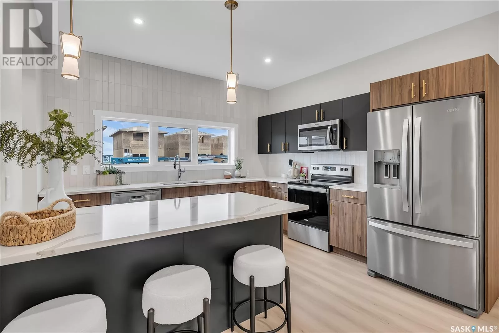 Welcome to the 'Century' - a charming 3-bedroom 2.5 bath home crafted by North Prairie Developments! This lovely home presents an exciting opportunity for homeowners with the option to add a legal basement suite, made even more enticing by eligibility for the SSI grant. Through this program, you could receive up to 35% of the basement suite development costs, making this an excellent investment opportunity. Step inside and be greeted by 9' ceilings and a spacious foyer that leads into the bright and airy living room. An abundance of natural light filters through the kitchen, illuminating the space and highlighting the architectural charm of the archways that grace the main floor, adding character and distinction to every corner. Upstairs, retreat to the spacious primary room featuring a walk-in closet and an ensuite with a built-in makeup area. Two additional bedrooms offer versatility for growing families or hosting guests, while second-floor laundry adds convenience to your daily routine. Outside, enjoy the ease of front landscaping already in place including underground sprinklers. Additionally, a 20'x20' concrete pad comes included. Don't miss out on the opportunity to make the 'Century' your forever home, complete with charm, functionality, and the potential for added value. Schedule your viewing today! **Under construction - target completion Sept 20205** (id:27476)