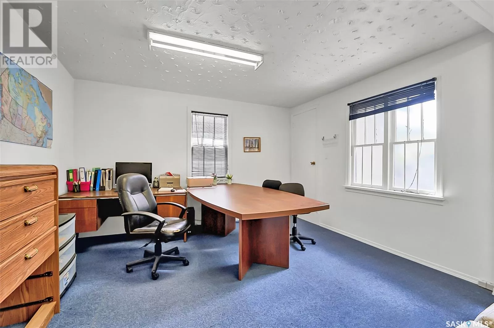 Welcome to 315 Ave F South in Riversdale, zoned MX1 with some discretionary usage. This former raised bungalow style home has been converted to office space offering 1040 sq ft on the main level, but including basement the total leasable space is 1636sf. This office has 4 rooms on the main level that can be used as boardroom/meeting rooms, lunch room, reception and office as well as a 3 piece washroom. The lunch room will be easy to convert back to a formal kitchen because there is a sink, a door to the deck and backyard which lead to the double garage. There is a separate entrance to the lower level that offers 3 more office areas, 3 piece bathroom and a smaller kitchenette area. This house would be perfect for home based business , affordable office space or change back to a residential house after talking to the city. Previously operated as a law firm and later on it fully leased out for the last couple of years as office. Mx1 district uses information attached on the listing and checks out with your agent. (id:27476)