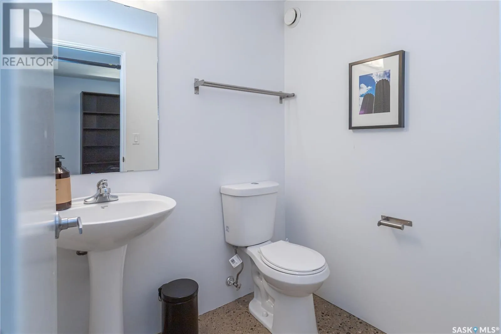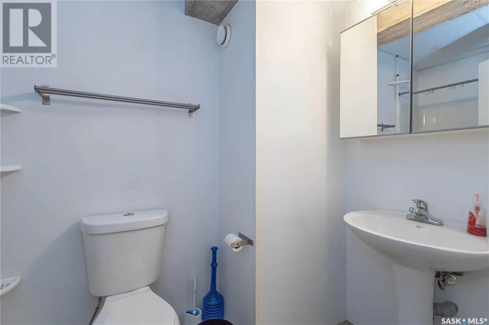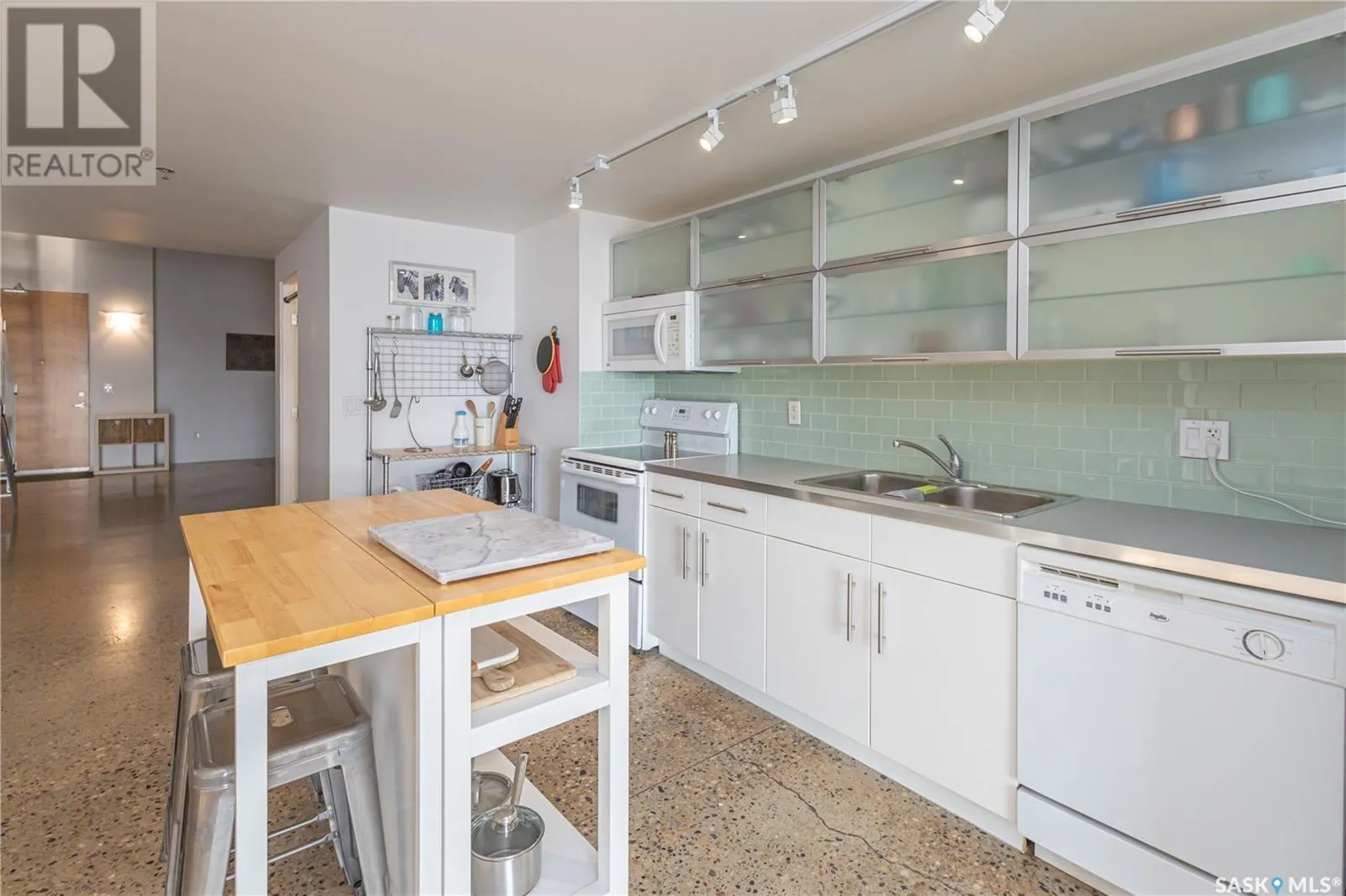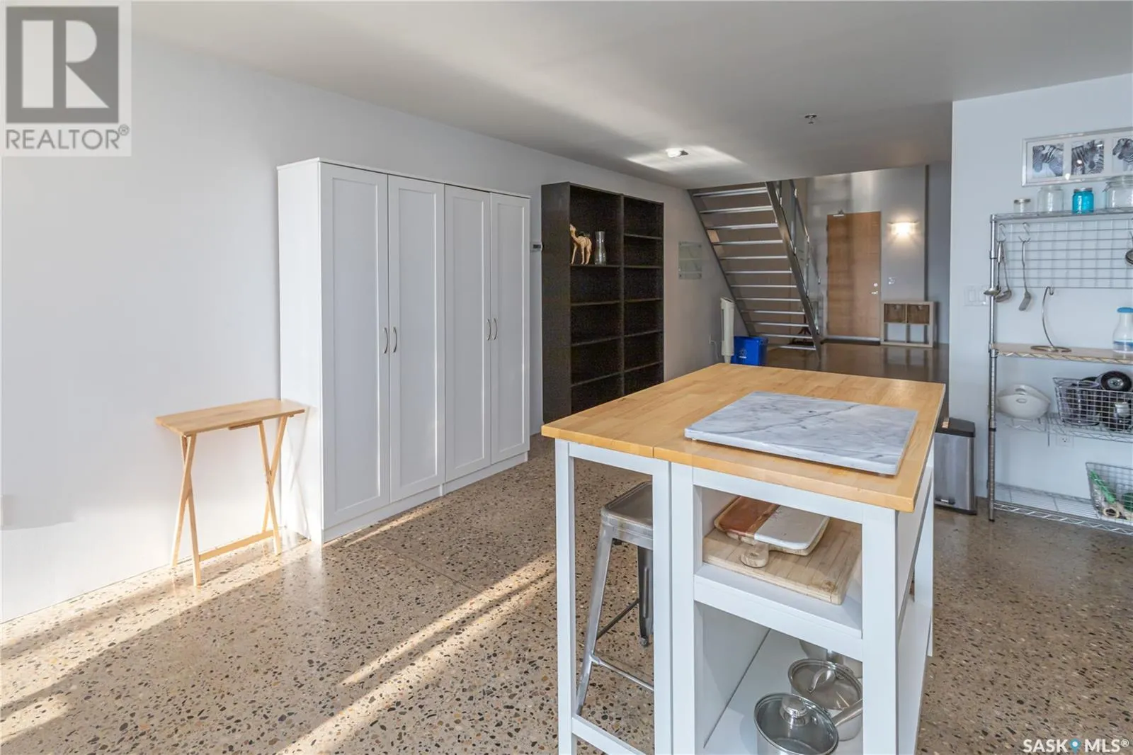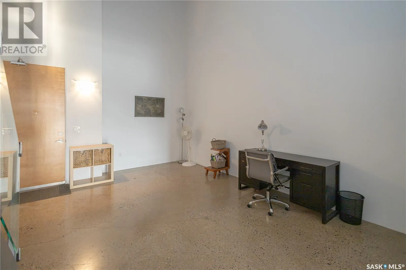 Experience the best of downtown living in this spacious and modern 1,268 sq ft loft condo, located in the sought-after 2nd Ave Lofts. With its industrial-chic design, polished concrete floors, stainless steel accents, and soaring ceilings, this 4th floor unit blends urban style with everyday comfort. The open-concept layout features a sleek kitchen with a center island perfect for entertaining. Upstairs features a large open loft bedroom, a 4 pc bathroom and laundry. A 2nd bedroom could be added to the left of the foyer. The building itself is just as impressive, with open-air corridors, accented by glass railings, a dramatic skylight-filled atrium, and a contemporary lobby that makes a statement. Enjoy the rooftop terrace complete with a pergola-covered BBQ area, perfect for relaxing or hosting friends. Additional perks include a fitness centre, elevator, and secure underground heated parking. One underground parking stall included. Quick possession is available, just move in and start enjoying downtown living at its finest! Condo fees include power and heat! Buyer/Buyer's Agent to verify all measurements. Call to book your viewing today. (id:27476)