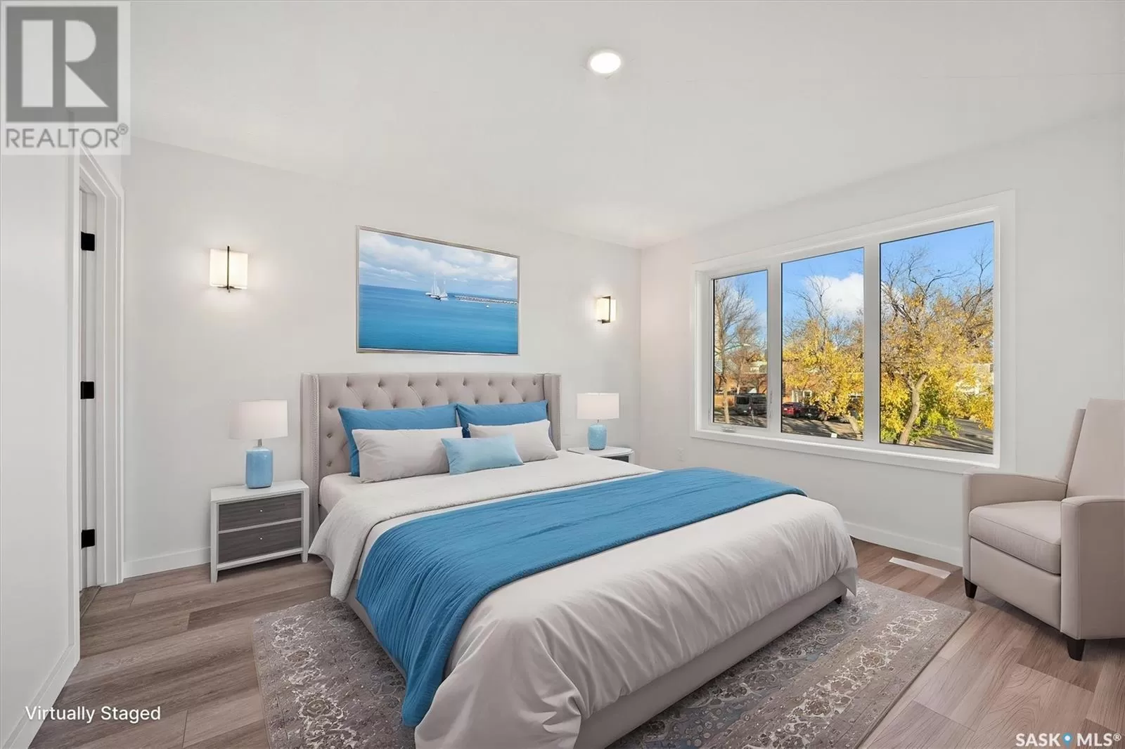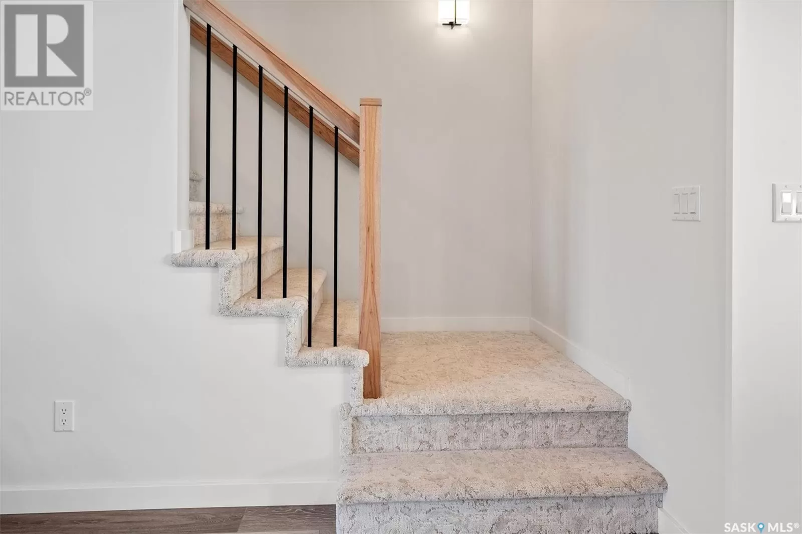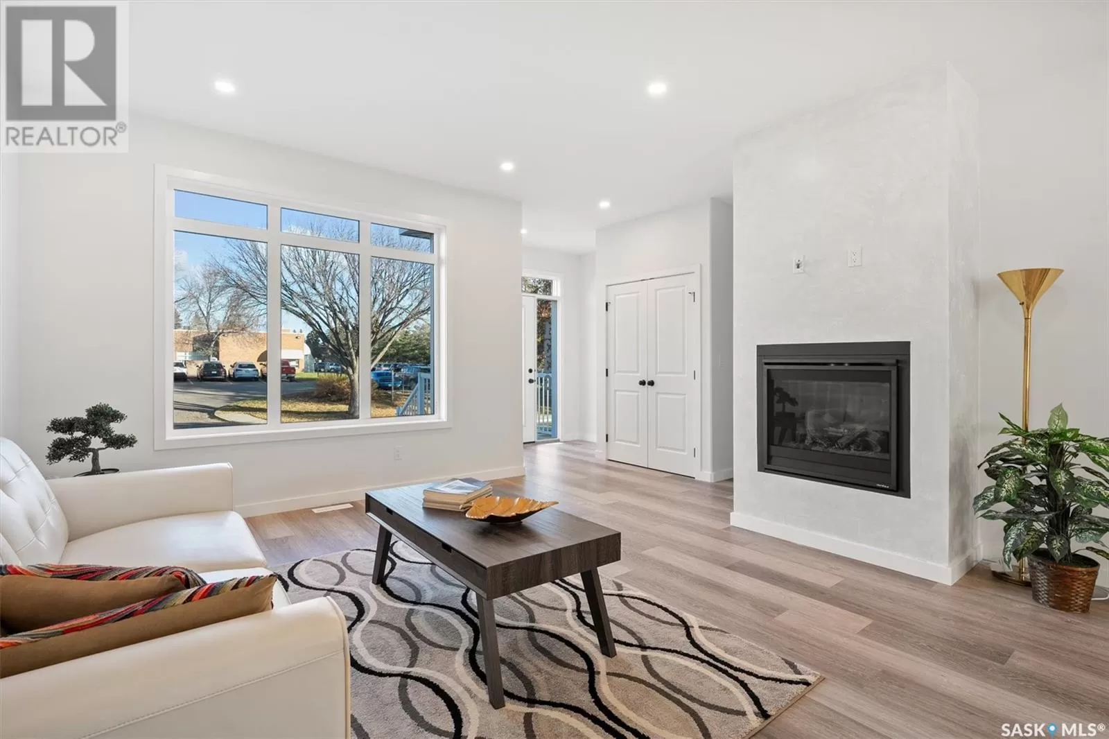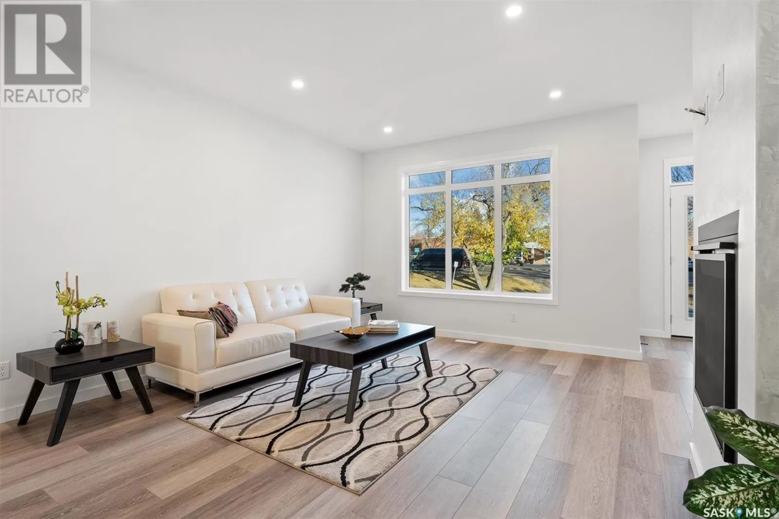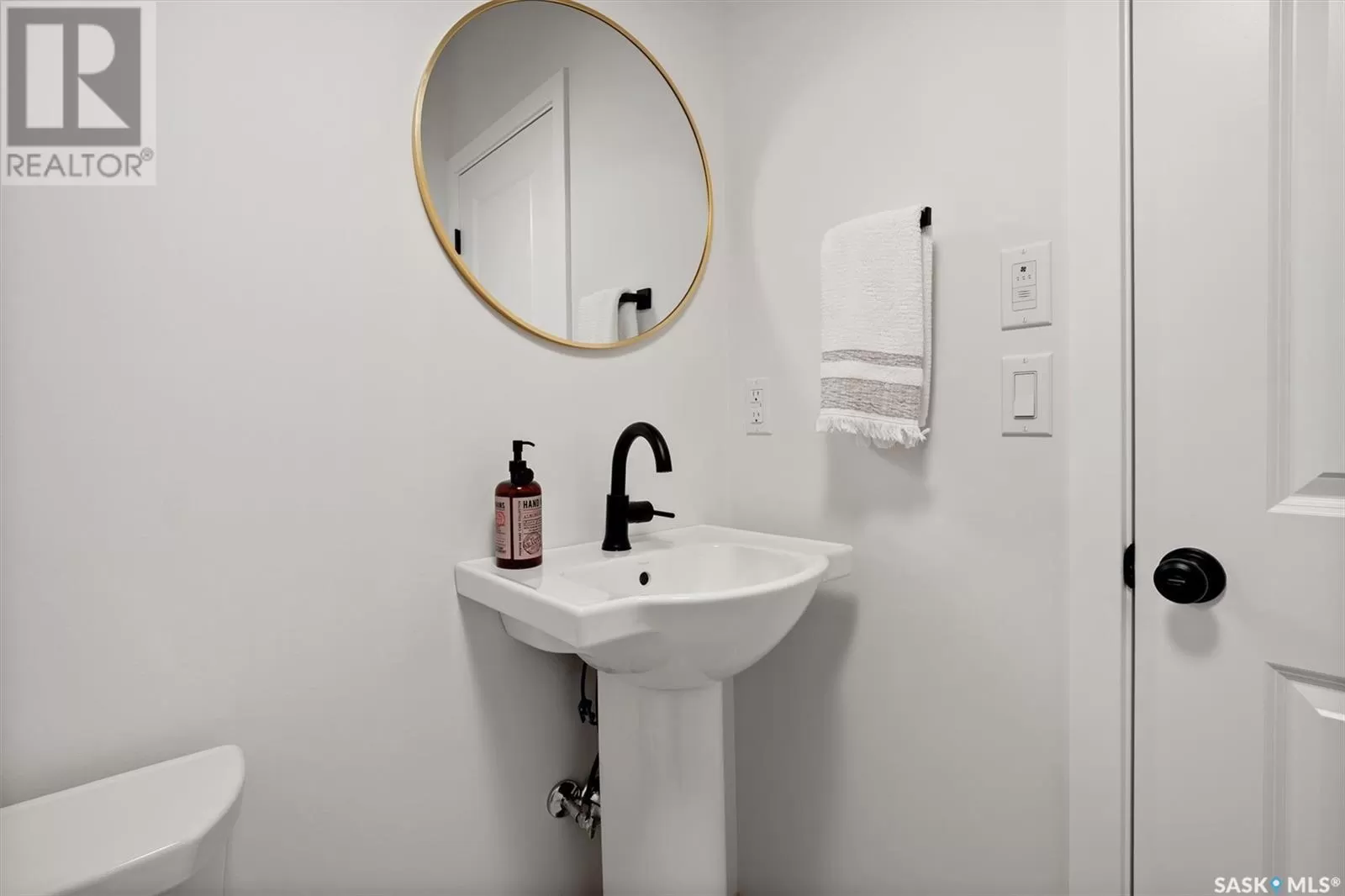 This free standing custom built 2 storey walkout home was built by Capilano Developments and is located in prime Varsity View. Given the unique opportunity of being within walking distance to the University of Saskatchewan the vision was to design a flexible plan appealing to professionals looking to be close to the hospital or University, & even students looking to get into the real estate market. The landscape of this street provided an opportunity to allow access to the basement from the front of the home, which is ideally set up for a suite, home based business, area for extended family visiting, or to use for your own enjoyment. With 1700 sqft on the 2 floors, the main level is spacious and offers a living room with feature gas fireplace with Venetian Plaster surround, dinging room, 2 tone staggered height kitchen cabinets with soft close features / tiled backsplash / garbage/recycle pullout, walk-in pantry, 2 Pc bathroom, and rear mud room with bench seating/storage. The second floor has 3 bedrooms, with the primary bedroom featuring vaulted ceilings, 5 Pc ensuite with soaker tub, walk-in tiled shower, dual sinks, and a walk-in closet. There are two more bedrooms with vaulted ceilings, 4 Pc bathroom, and walk-in laundry area with built-in cabinetry. The basement level is already set up with a secondary electrical panel, future kitchen and laundry rough-ins if a basement suite is of interest, Air B and B, Other features include: luxury waterproof laminate, quartz ctops, A/C, 20âx26â double detached garage with utility door access, majority of yard fenced, rear landscaping with underground sprinklers, front driveway for additional parking. (id:27476)