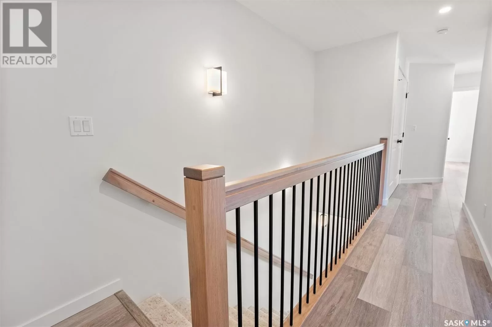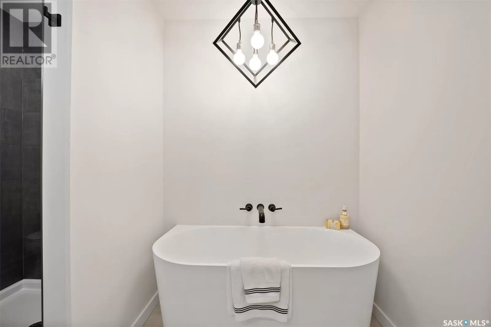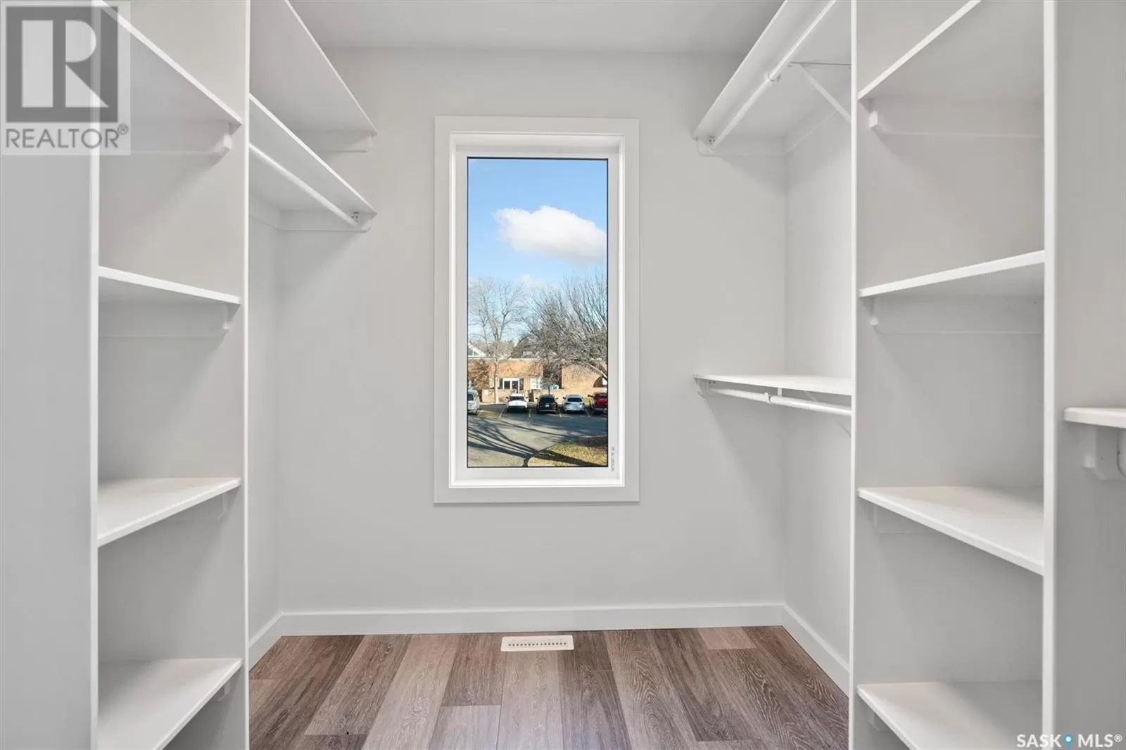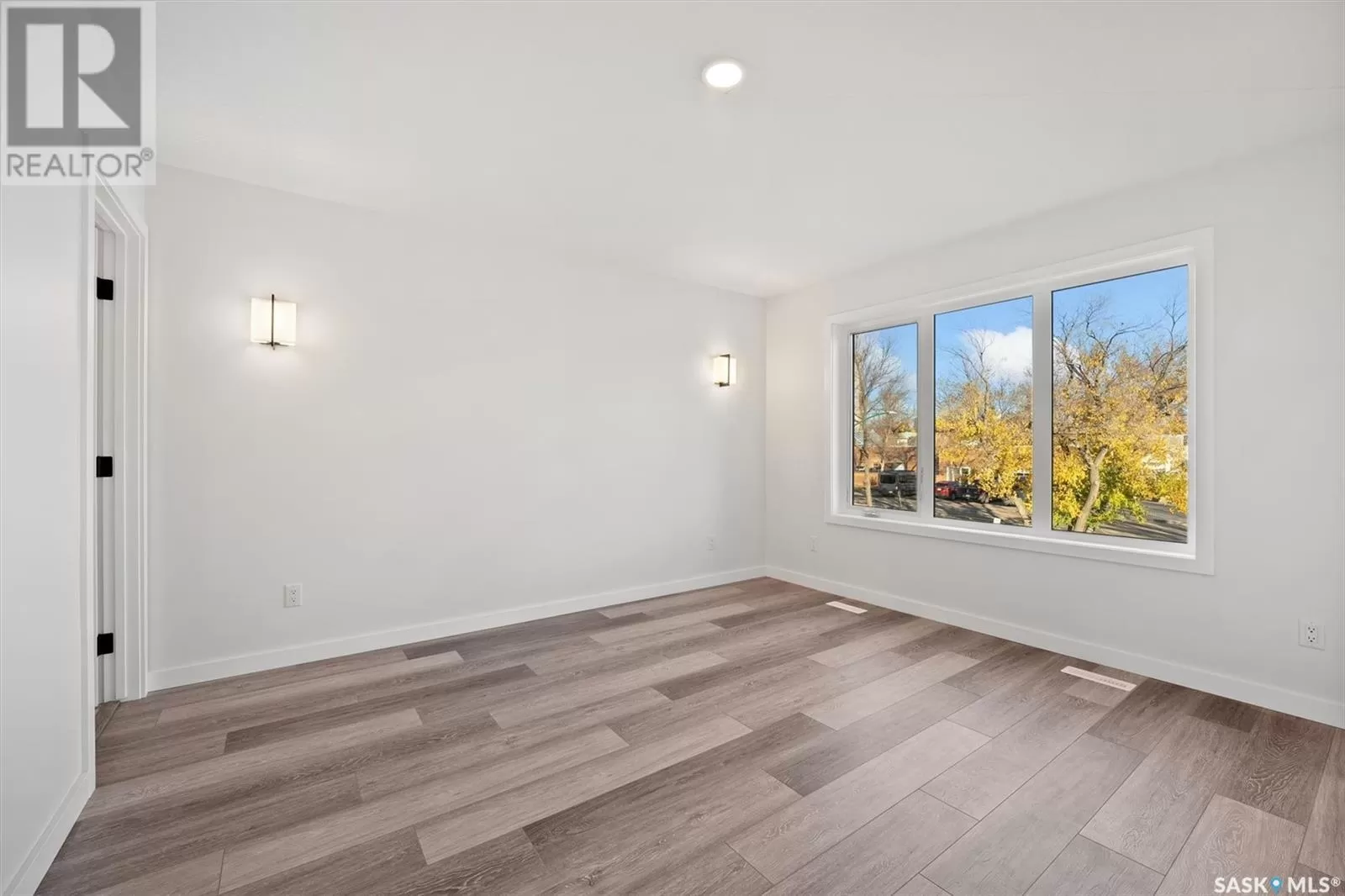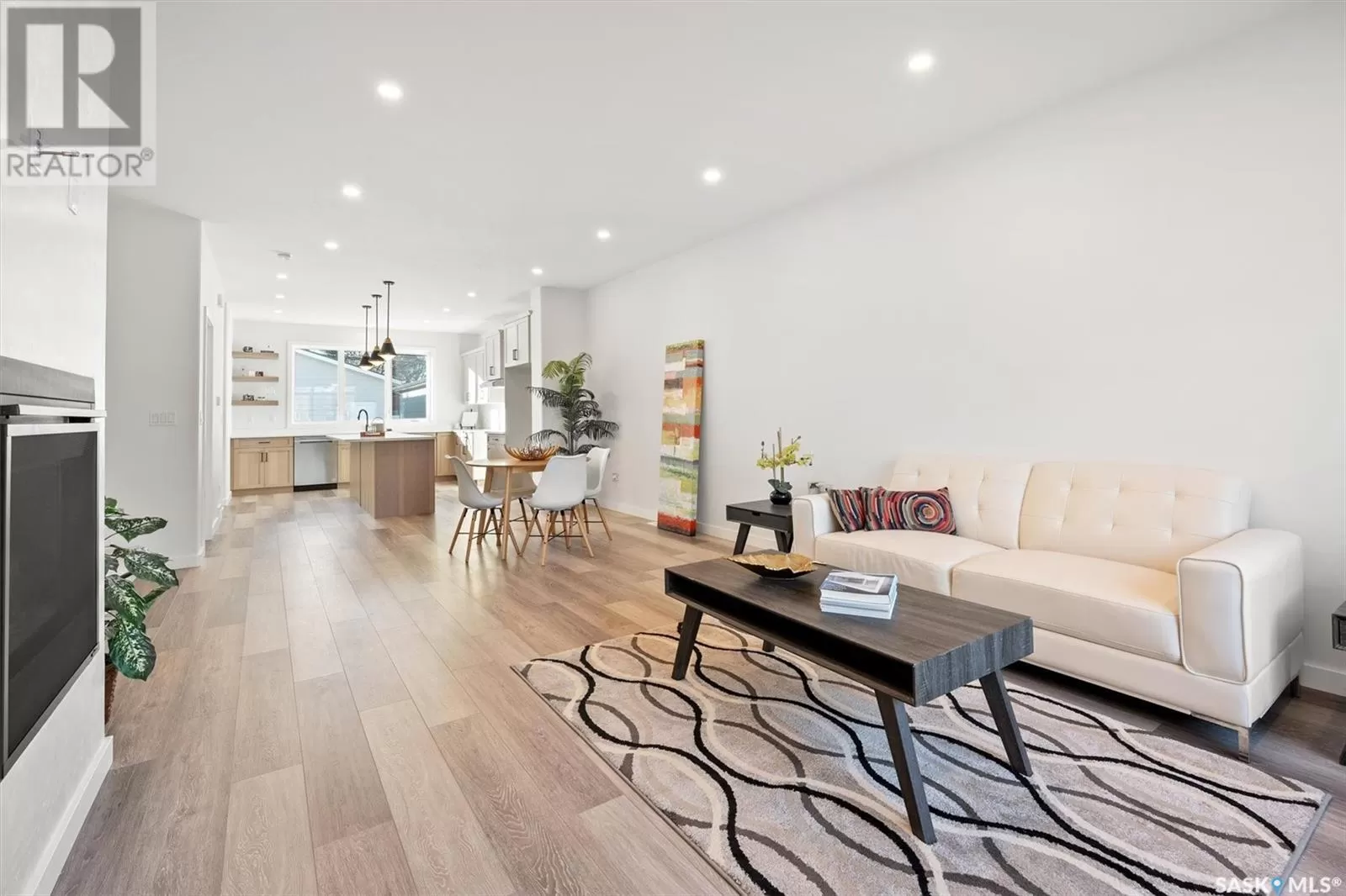 This free standing custom built 2 storey walkout home was built by Capilano Developments and is located in prime Varsity View. Given the unique opportunity of being within walking distance to the University of Saskatchewan the vision was to design a flexible plan appealing to professionals looking to be close to the hospital or University, & even students looking to get into the real estate market. The landscape of this street provided an opportunity to allow access to the basement from the front of the home, which is ideally set up for a suite, home based business, area for extended family visiting, or to use for your own enjoyment. With 1700 sqft on the 2 floors, the main level is spacious and offers a living room with feature gas fireplace with Venetian Plaster surround, dinging room, 2 tone staggered height kitchen cabinets with soft close features / tiled backsplash / garbage/recycle pullout, walk-in pantry, 2 Pc bathroom, and rear mud room with bench seating/storage. The second floor has 3 bedrooms, with the primary bedroom featuring vaulted ceilings, 5 Pc ensuite with soaker tub, walk-in tiled shower, dual sinks, and a walk-in closet. There are two more bedrooms with vaulted ceilings, 4 Pc bathroom, and walk-in laundry area with built-in cabinetry. The basement level is already set up with a secondary electrical panel, future kitchen and laundry rough-ins if a basement suite is of interest, Air B and B, Other features include: luxury waterproof laminate, quartz ctops, A/C, 20âx26â double detached garage with utility door access, majority of yard fenced, rear landscaping with underground sprinklers, front driveway for additional parking. (id:27476)