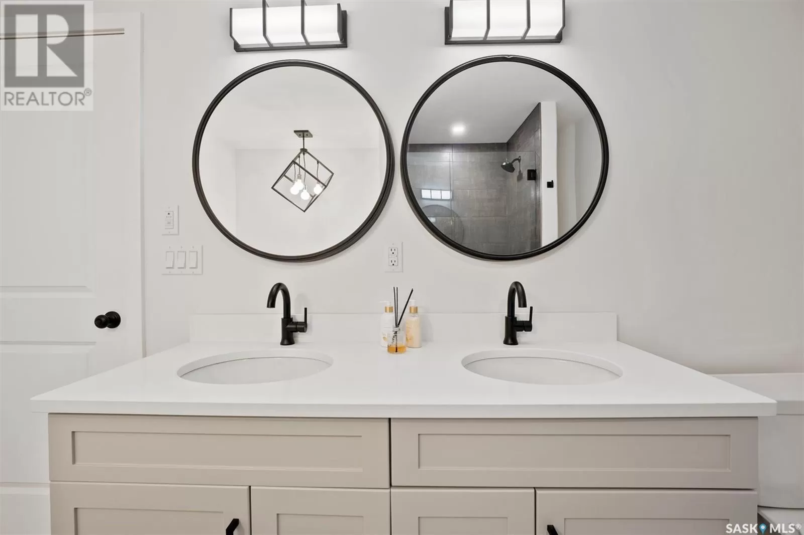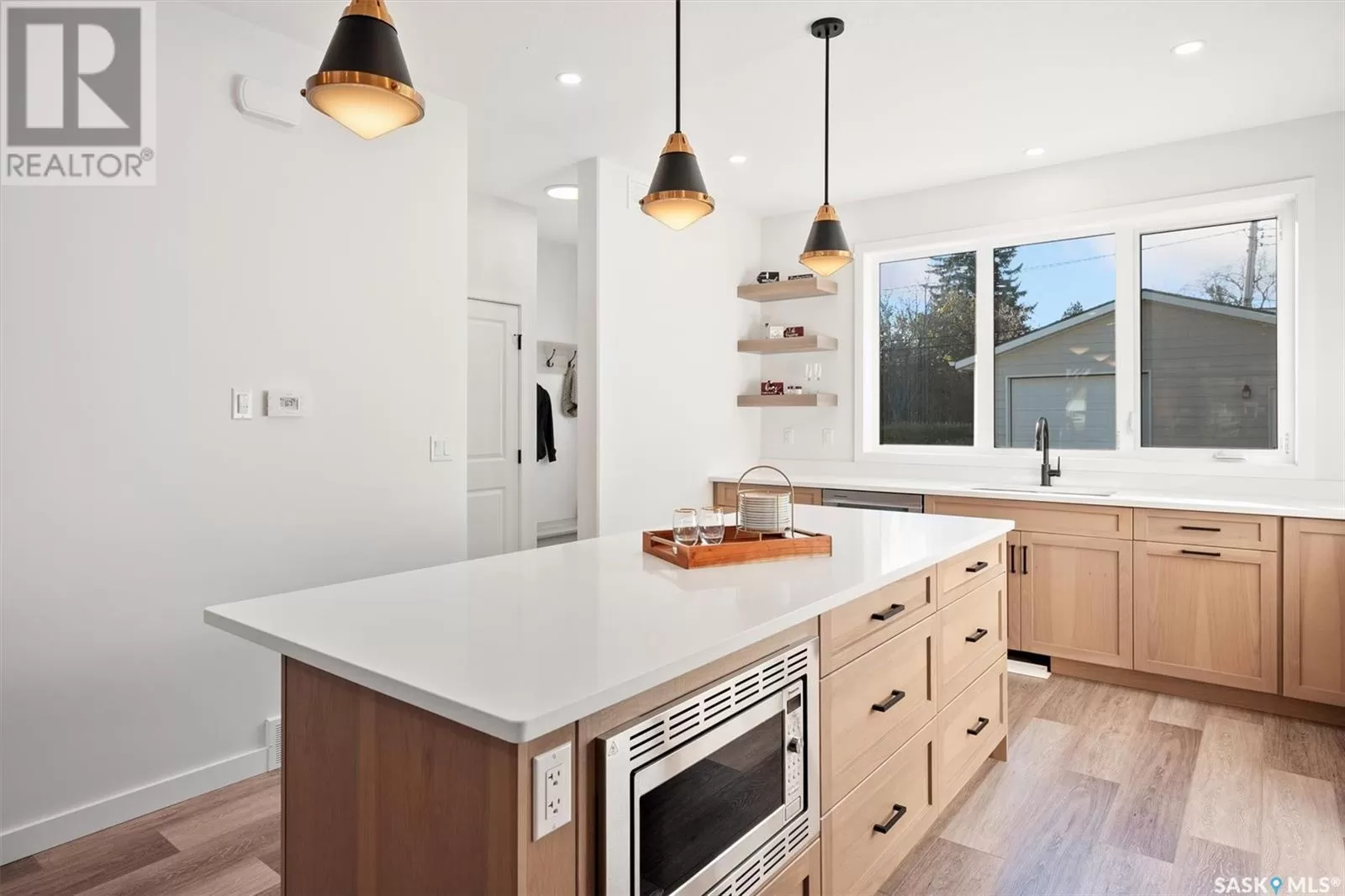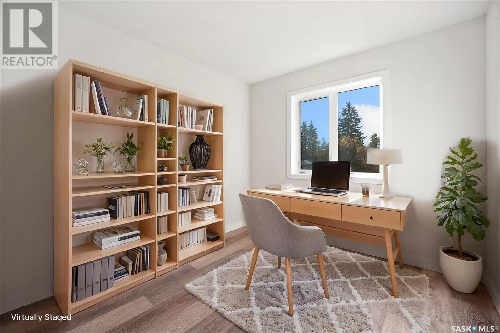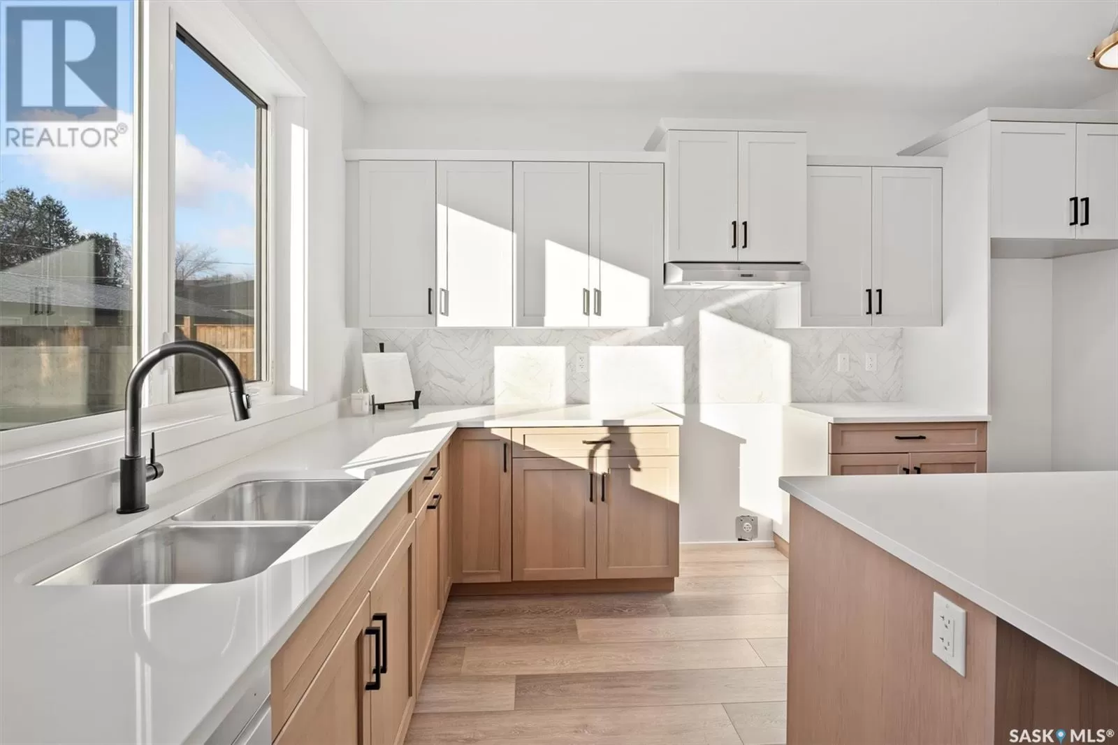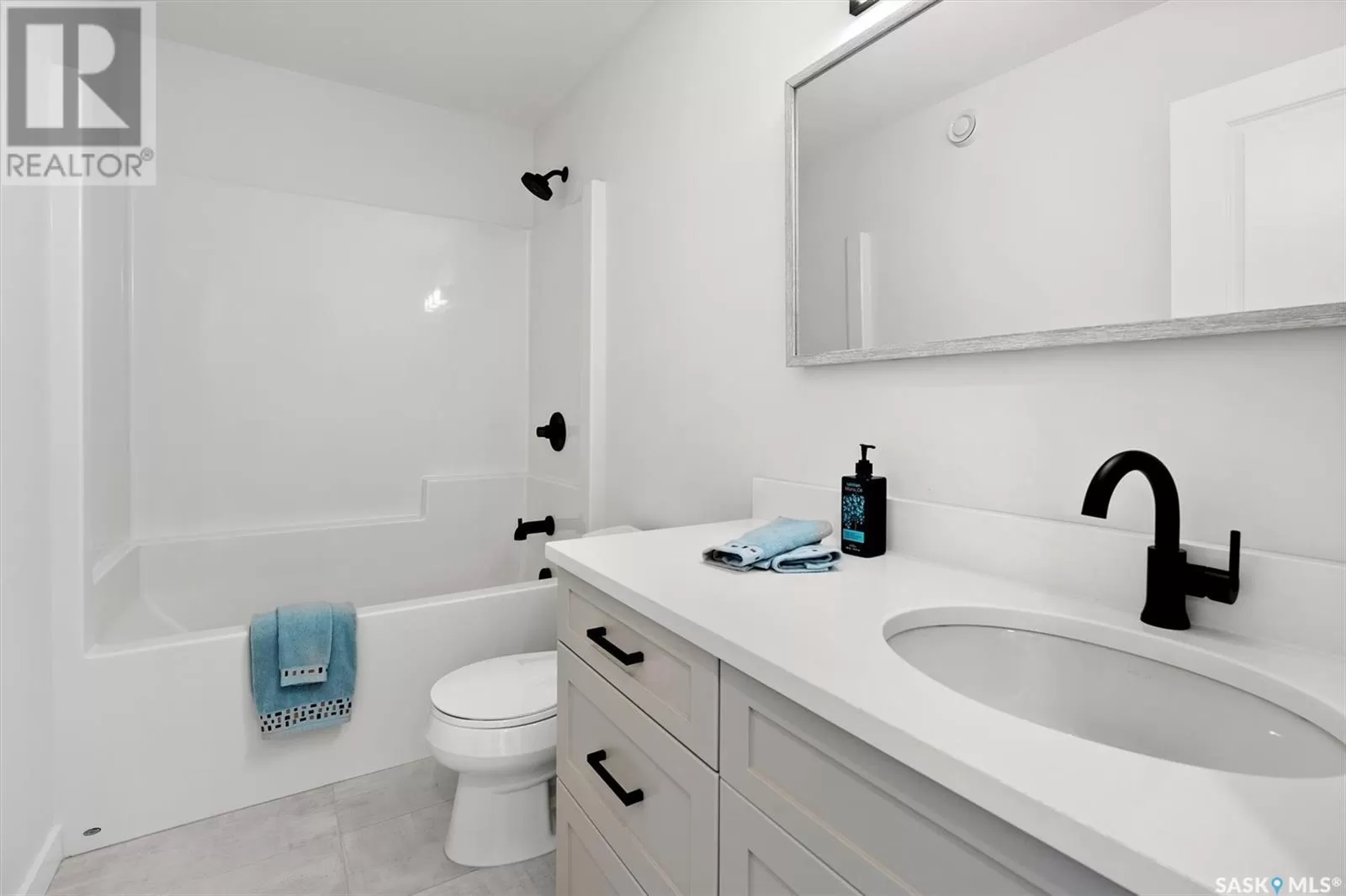 This free standing custom built 2 storey walkout home was built by Capilano Developments and is located in prime Varsity View. Given the unique opportunity of being within walking distance to the University of Saskatchewan the vision was to design a flexible plan appealing to professionals looking to be close to the hospital or University, & even students looking to get into the real estate market. The landscape of this street provided an opportunity to allow access to the basement from the front of the home, which is ideally set up for a suite, home based business, area for extended family visiting, or to use for your own enjoyment. With 1700 sqft on the 2 floors, the main level is spacious and offers a living room with feature gas fireplace with Venetian Plaster surround, dinging room, 2 tone staggered height kitchen cabinets with soft close features / tiled backsplash / garbage/recycle pullout, walk-in pantry, 2 Pc bathroom, and rear mud room with bench seating/storage. The second floor has 3 bedrooms, with the primary bedroom featuring vaulted ceilings, 5 Pc ensuite with soaker tub, walk-in tiled shower, dual sinks, and a walk-in closet. There are two more bedrooms with vaulted ceilings, 4 Pc bathroom, and walk-in laundry area with built-in cabinetry. The basement level is already set up with a secondary electrical panel, future kitchen and laundry rough-ins if a basement suite is of interest, Air B and B, Other features include: luxury waterproof laminate, quartz ctops, A/C, 20âx26â double detached garage with utility door access, majority of yard fenced, rear landscaping with underground sprinklers, front driveway for additional parking. (id:27476)