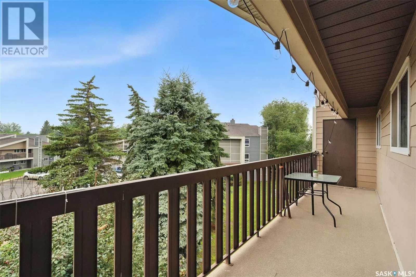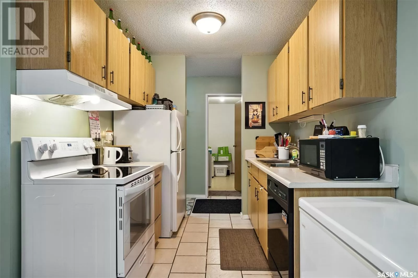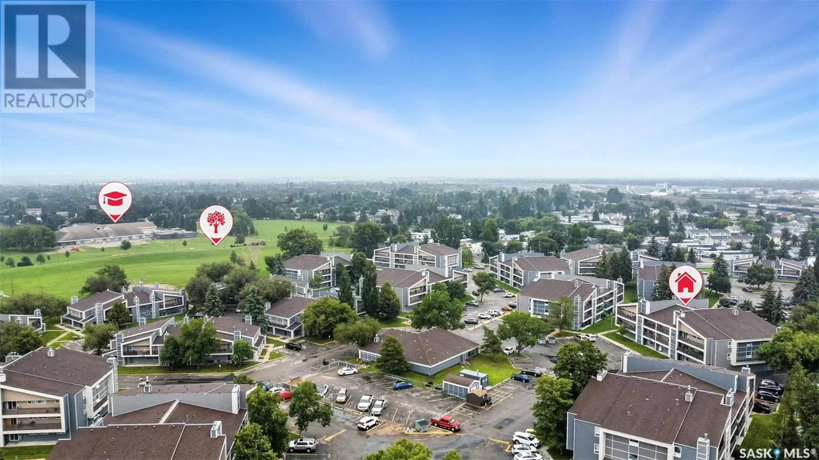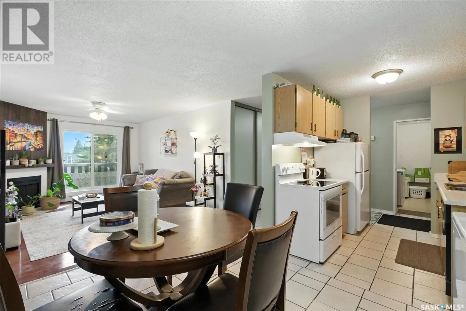 Fantastic top-floor corner unit condo in the well-maintained Forest Grove Village complex, located just 7 minutes from the University of Saskatchewan, right next to two elementary schools and within walking distance to University Heights shopping. This bright end unit is set apart with an extra side window for added natural light and features laminate flooring throughout the living room and bedrooms, with ceramic tile in the kitchen, dining area, and both bathroomsâno carpet throughout. The spacious layout includes a large in-suite storage room that can double as a small office or laundry room, and a patio door off the living room opens onto a good-sized balcony with a private storage shed. The unit is in excellent condition, includes in-suite laundry, and comes with all appliances, including a new stove (2025),washer & dryer (2022) and portable AC. One electrified parking stall is included, with ample street parking available. Residents also enjoy access to a recreation facility featuring a racquetball court, pool tables, shuffleboard, fitness/gym area, and amenities room. The complex has seen many recent upgrades, including new windows, shingles, and siding, giving buyers and investors confidence in the propertyâs appearance and upkeep. This is a great opportunity for first-time buyers or investorsâcontact your REALTOR® today for a private viewing! (id:27476)