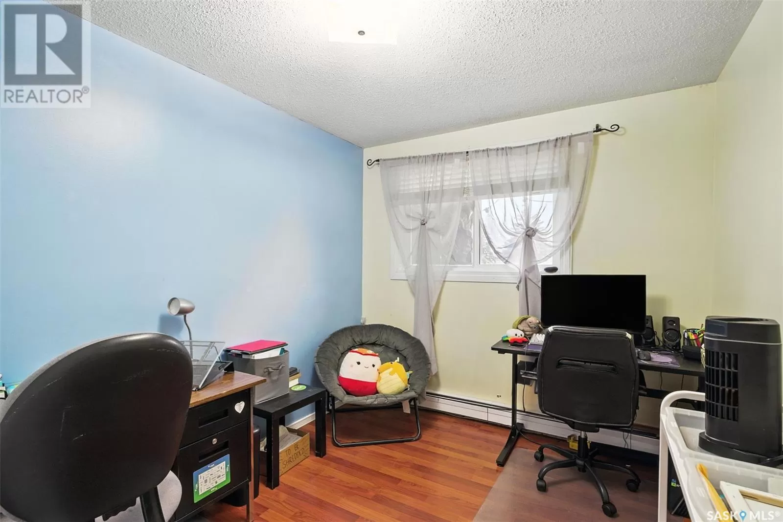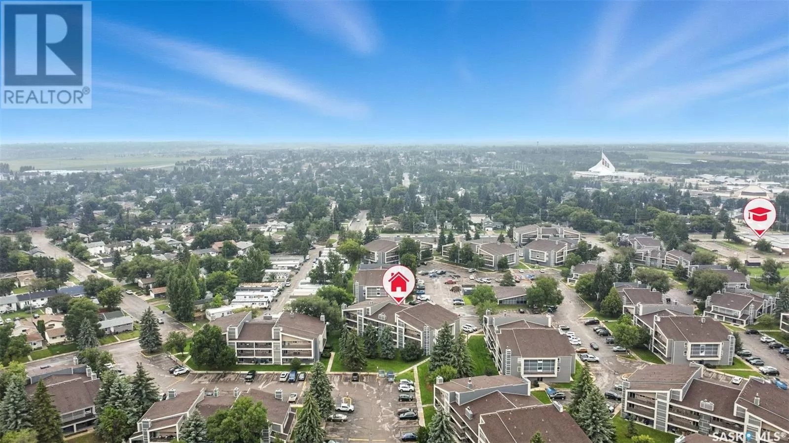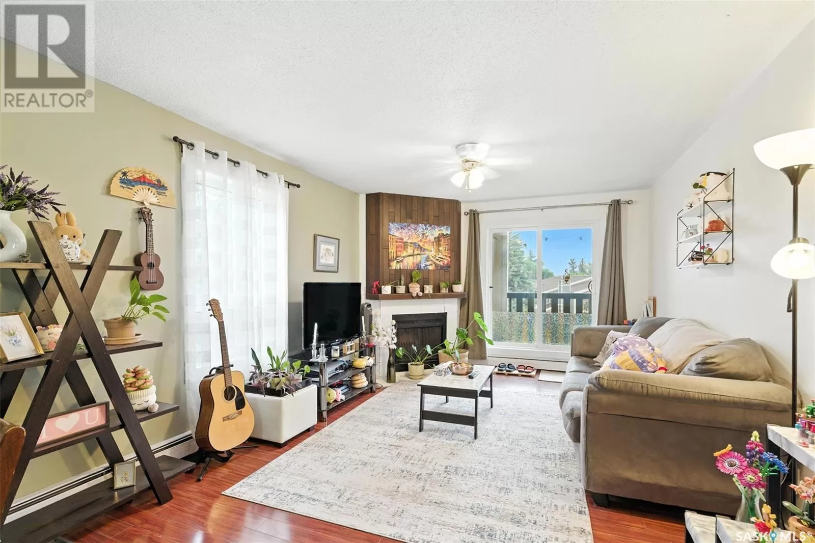 Fantastic top-floor corner unit condo in the well-maintained Forest Grove Village complex, located just 7 minutes from the University of Saskatchewan, right next to two elementary schools and within walking distance to University Heights shopping. This bright end unit is set apart with an extra side window for added natural light and features laminate flooring throughout the living room and bedrooms, with ceramic tile in the kitchen, dining area, and both bathroomsâno carpet throughout. The spacious layout includes a large in-suite storage room that can double as a small office or laundry room, and a patio door off the living room opens onto a good-sized balcony with a private storage shed. The unit is in excellent condition, includes in-suite laundry, and comes with all appliances, including a new stove (2025),washer & dryer (2022) and portable AC. One electrified parking stall is included, with ample street parking available. Residents also enjoy access to a recreation facility featuring a racquetball court, pool tables, shuffleboard, fitness/gym area, and amenities room. The complex has seen many recent upgrades, including new windows, shingles, and siding, giving buyers and investors confidence in the propertyâs appearance and upkeep. This is a great opportunity for first-time buyers or investorsâcontact your REALTOR® today for a private viewing! (id:27476)