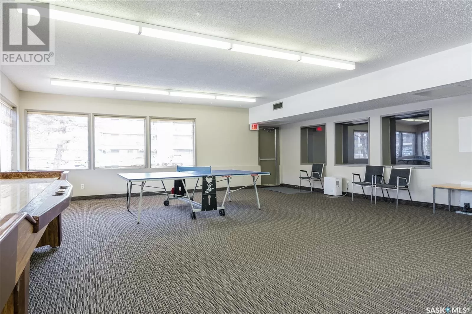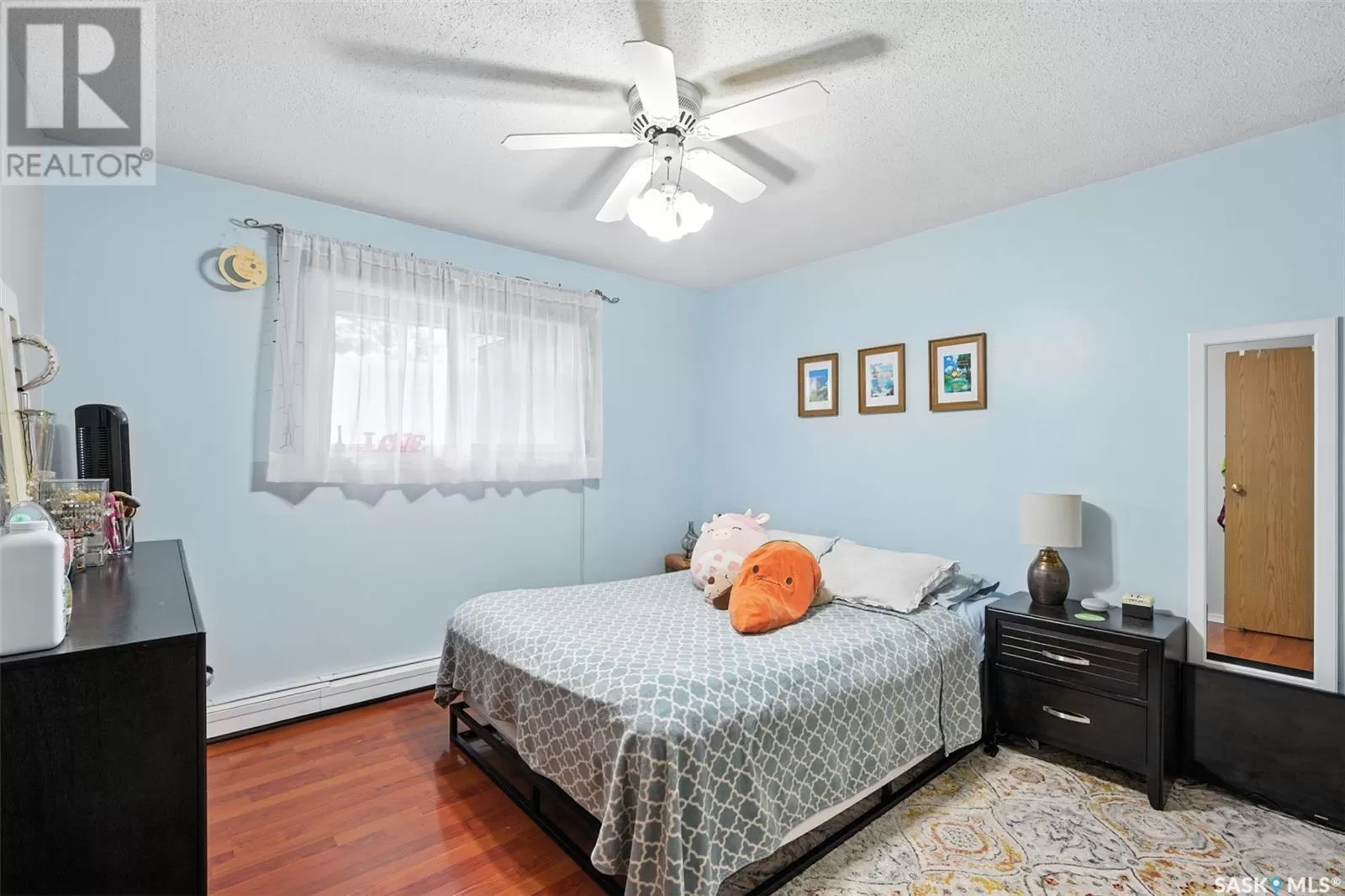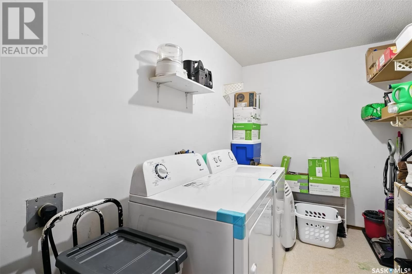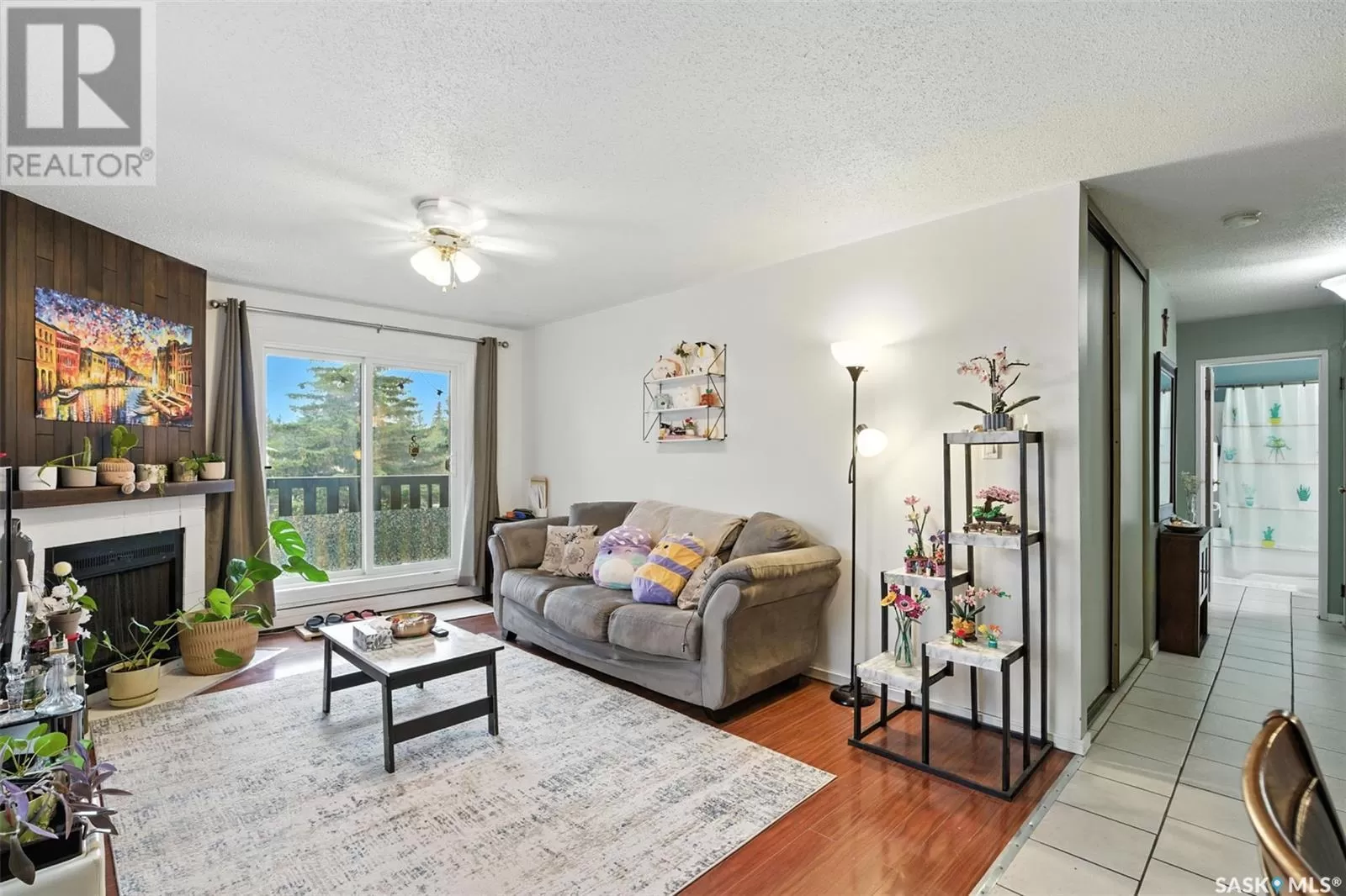 Fantastic top-floor corner unit condo in the well-maintained Forest Grove Village complex, located just 7 minutes from the University of Saskatchewan, right next to two elementary schools and within walking distance to University Heights shopping. This bright end unit is set apart with an extra side window for added natural light and features laminate flooring throughout the living room and bedrooms, with ceramic tile in the kitchen, dining area, and both bathroomsâno carpet throughout. The spacious layout includes a large in-suite storage room that can double as a small office or laundry room, and a patio door off the living room opens onto a good-sized balcony with a private storage shed. The unit is in excellent condition, includes in-suite laundry, and comes with all appliances, including a new stove (2025),washer & dryer (2022) and portable AC. One electrified parking stall is included, with ample street parking available. Residents also enjoy access to a recreation facility featuring a racquetball court, pool tables, shuffleboard, fitness/gym area, and amenities room. The complex has seen many recent upgrades, including new windows, shingles, and siding, giving buyers and investors confidence in the propertyâs appearance and upkeep. This is a great opportunity for first-time buyers or investorsâcontact your REALTOR® today for a private viewing! (id:27476)