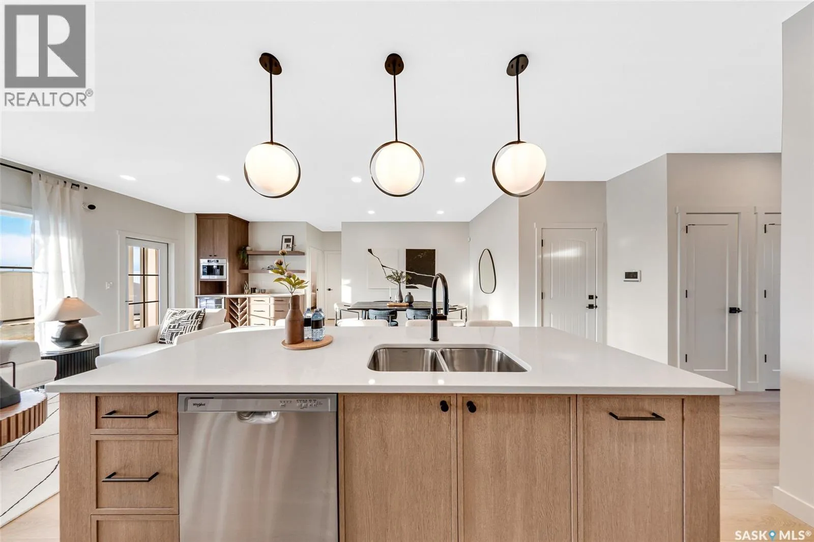 *SHOWHOME NOW OPEN! 26-720 Brighton Blvd!* Welcome to The Moët II, an exquisite bungalow townhome nestled within the private, gated community of Chateau Bungalows, crafted by the award-winning North Prairie Developments Ltd. This sophisticated 1,071 sq. ft. bungalow embodies modern luxury, complete with a spacious attached two-car garage. Every detail has been thoughtfully curated, from the premium Whirlpool built-in appliance package to the quartz countertops that exude elegance. The open-concept living areas feature high-end laminate flooring, while the bathrooms are adorned with luxury vinyl tile. Step inside to experience the grandeur of 9â ceilings and a luminous, airy living space. The living room, framed by floor-to-ceiling windows, invites you to bask in natural light while overlooking your private, picturesque backyard. This outdoor haven boasts a covered patio, low-maintenance turf landscaping, and privacy fencing. The primary bedroom is complete with a 4-piece ensuite and a spacious walk-in closet. For those needing additional space, an optional 1,417 sq. ft. basement development offers limitless potential. Whether you envision an additional bedroom, office, a private bathroom, a state-of-the-art theatre room for those cinematic family nights, the possibilities are endless. The exclusive Chateau Bungalows community extends beyond your front door. Indulge in private backyards, engage in a friendly match at the sleek pickleball court, or take in a show at the nearby amphitheater, just steps away. The scenic lakeside walks and tranquil paths provide a perfect retreat from the bustling world, while the trendy shops, dining, and vibrant entertainment of Brighton are only moments away. Experience the epitome of refined living at Chateau Bungalows, where luxury meets lifestyle in one of Brightonâs most coveted locations. Images shown are for reference purposes only, and details are subject to change without notice. (id:27476)
