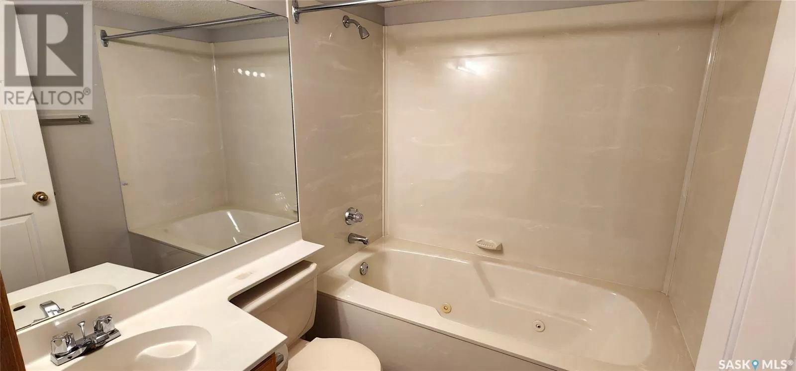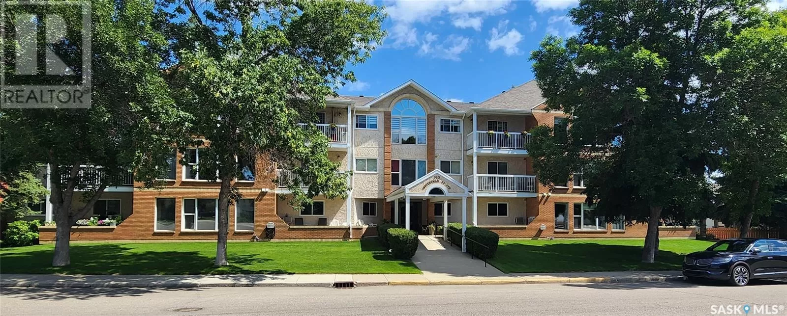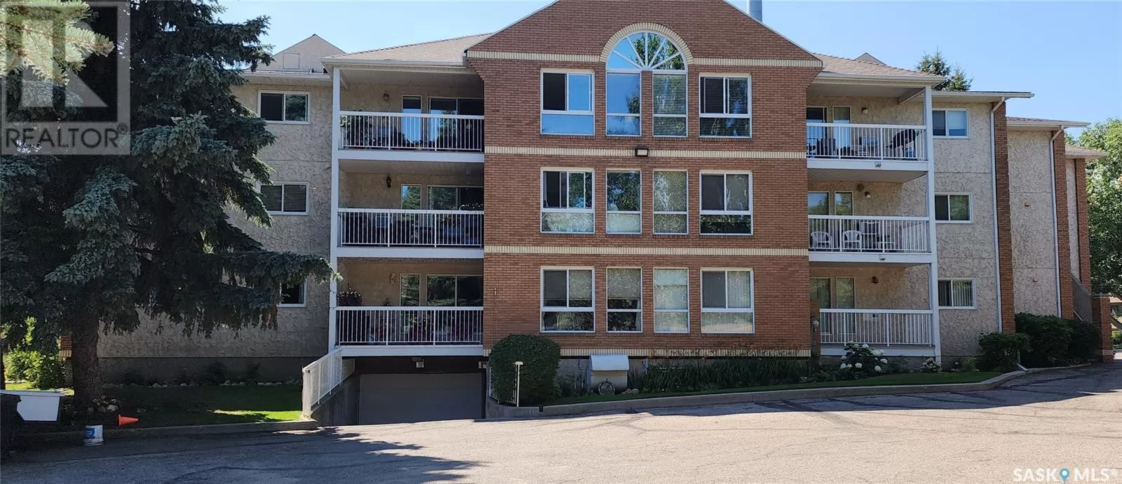 Looking for a combination of location, serenity and convenience, welcome to Whiteswan Pointe. This 2 bedroom plus den, 2 bathroom condo is sure to impress. All appliances are included. This unit is move-in ready. Silverwood and Sister O'Brien schools along with WJL Harvey Park down the street. Also, just a short walk to the start of the beautiful Meewasin Trail which extends for many kilometers along the South Saskatchewan River. The amenities room includes shuffleboard, exercise equipment as well as games, books and puzzles to keep you entertained. Enjoy a cup of coffee or tea on either your own private balcony or on the patio out the west facing front entrance. Bus service directly to the Mall at Lawson Heights is just steps from the front entrance. Newer flooring and paint throughout. Some big ticket items have been upgraded in the past few years. Water heater, boiler(2024) and shingles(2025). Talk about piece of mind! All of this and one stall in the heated underground parking. Additional electrified surface parking stall available. The building and grounds are meticulously maintained. This is a must see if you're looking for condo living. Call your favorite REALTOR® to secure a time to view. (id:27476)