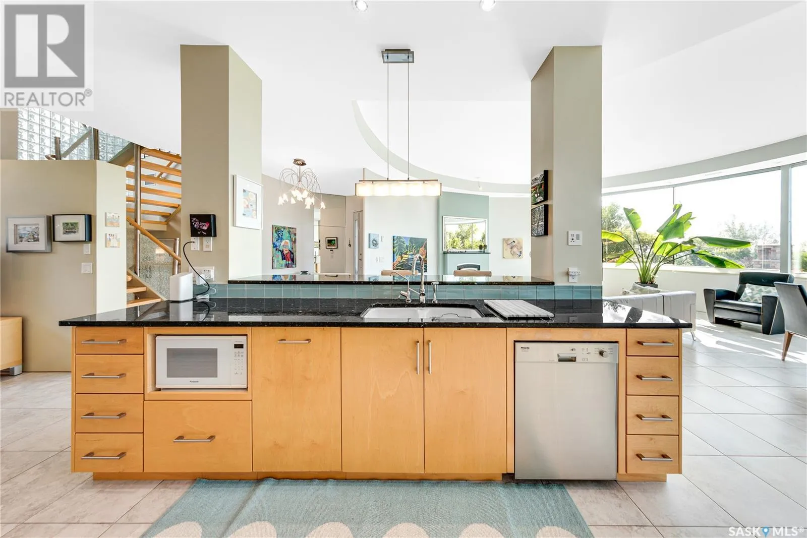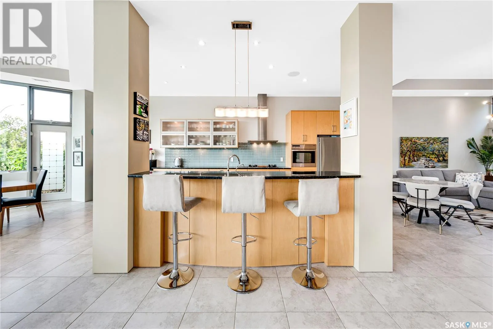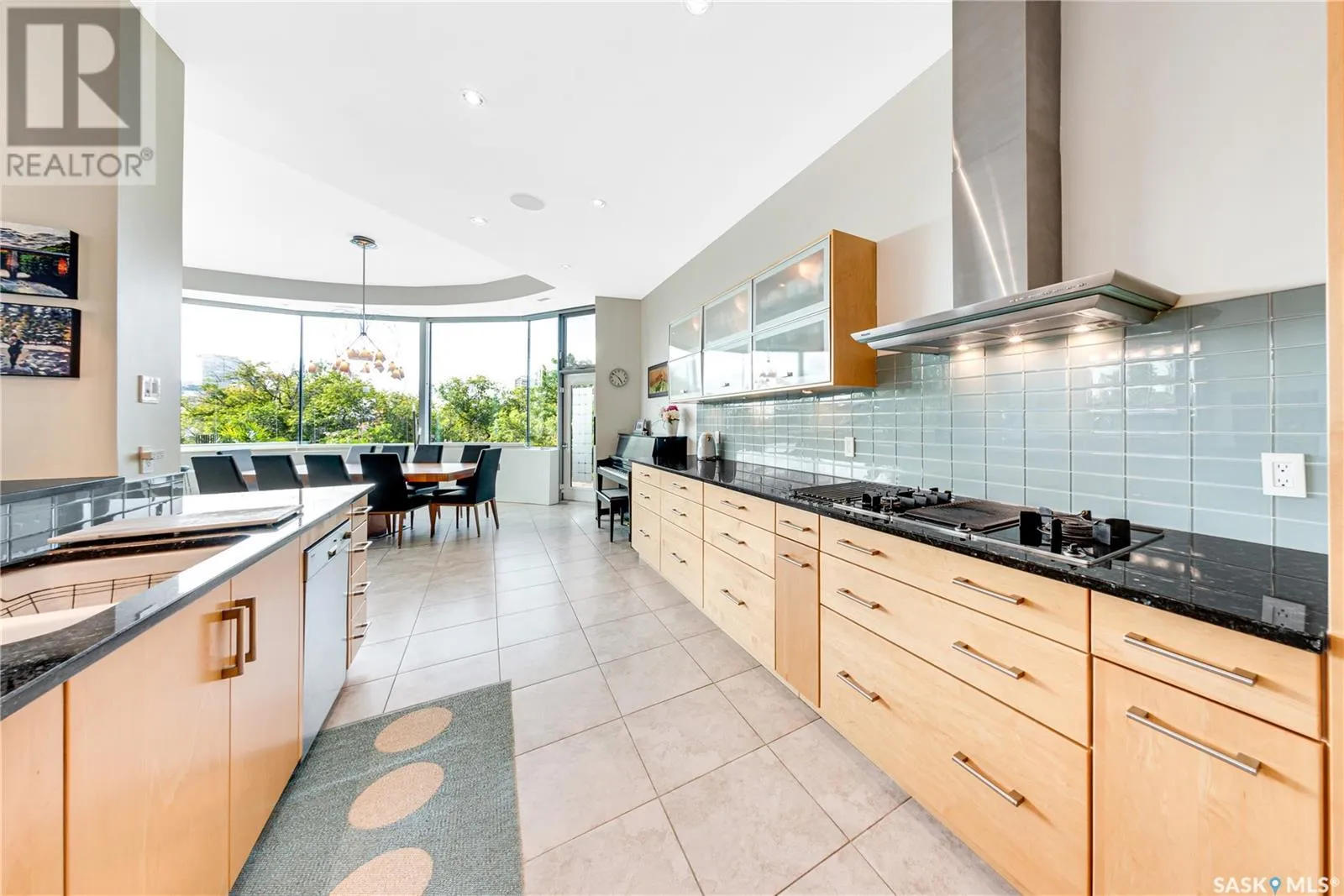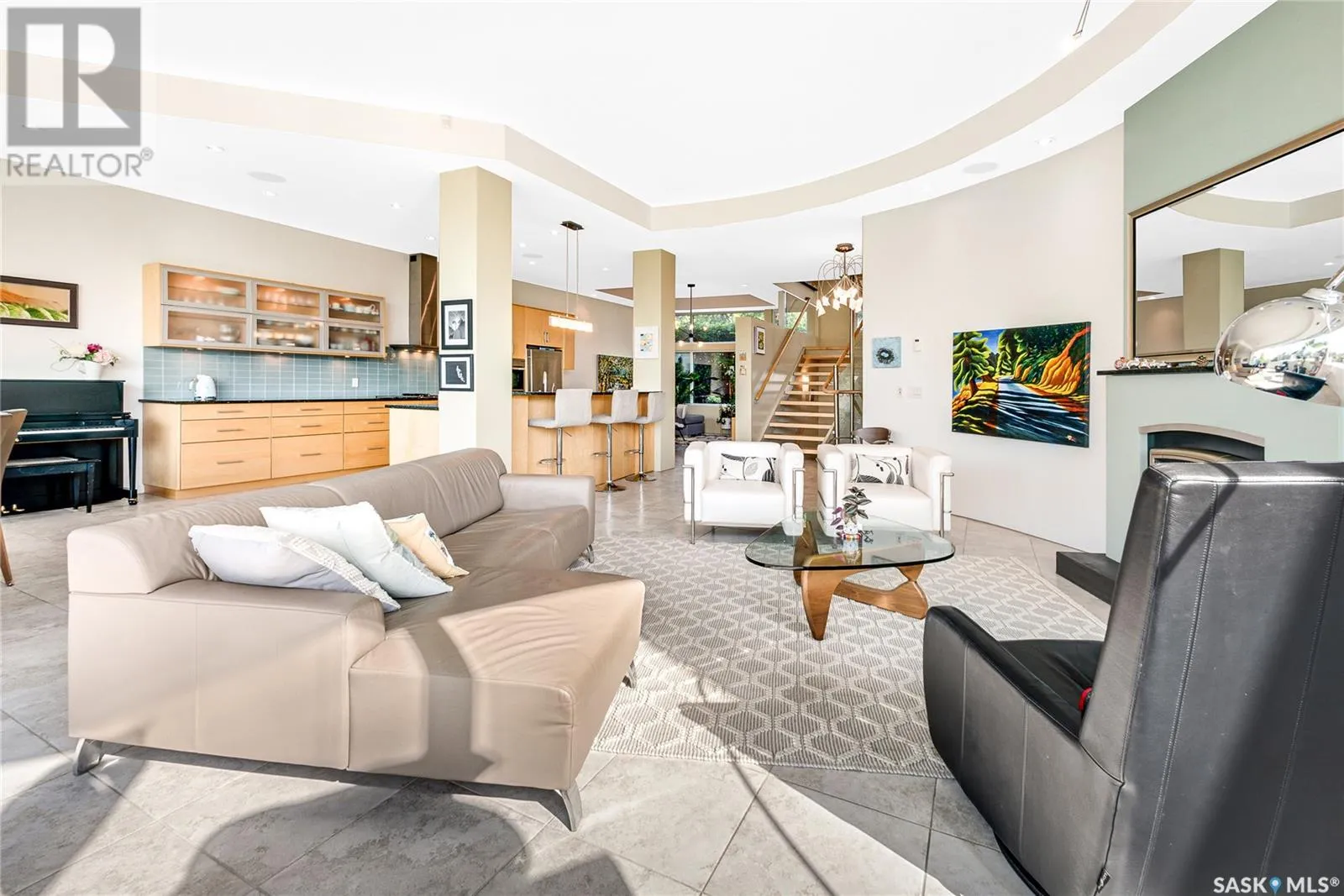 Riverfront with sweeping views of downtown Saskatoon. Welcome to 616 Saskatchewan Crescent East, an extraordinary residence perched on Saskatoonâs most iconic street. Panoramic views stretch from the Broadway Bridge to the historic Bessborough Hotel, offering a daily backdrop of stillness and beauty. Designed with intention and built to last, this home is a rare blend of enduring structure, refined comfort, and timeless serenity. Crafted with concrete core floors and ICF block construction up to the second storey, and framed with steel studs above, its strength is unmistakable. The exterior is wrapped in a 7-layer acrylic stucco system by Sask Stucco, with a restored balcony by Al Ro and a durable Flynn torch-on roof supporting commercial-grade rooftop HVAC and a dedicated makeup air unit. Inside, a Viessmann boiler quietly warms all three levels, supported by an air exchanger and Culligan RO system. The kitchen features solid maple cabinetry by Ben McNee, a Miele stove and charcoal grill, Miele dishwasher, hood fan, and built-in Jennair fridge. Elegant finishes are found throughoutâsolid core doors, Creative Closets blinds, Unique Lighting fixtures, and a Russound audio system with in-ceiling speakers. In the lower-level family room, 5.1 surround sound by Speakercraft, subwoofer, and wet bar invite effortless entertaining. The sculptural staircase, built with steel and solid wood, is paired with railings by R&B Bannister and glasswork by Dynamic Glass. Outdoors, unwind beneath the grapevine-draped pergola, enjoy cherry and apple trees, or relax on the stamped concrete patio. A triple detached garage offers one double, one oversized single, and a rear overhead door to the yard. Gas BBQ hookup and Simplex keyless locks provide everyday ease. This is more than a homeâitâs a peaceful rhythm, a grounded retreat, and a rare offering in Saskatoonâs most sought-after location. (id:27476)
