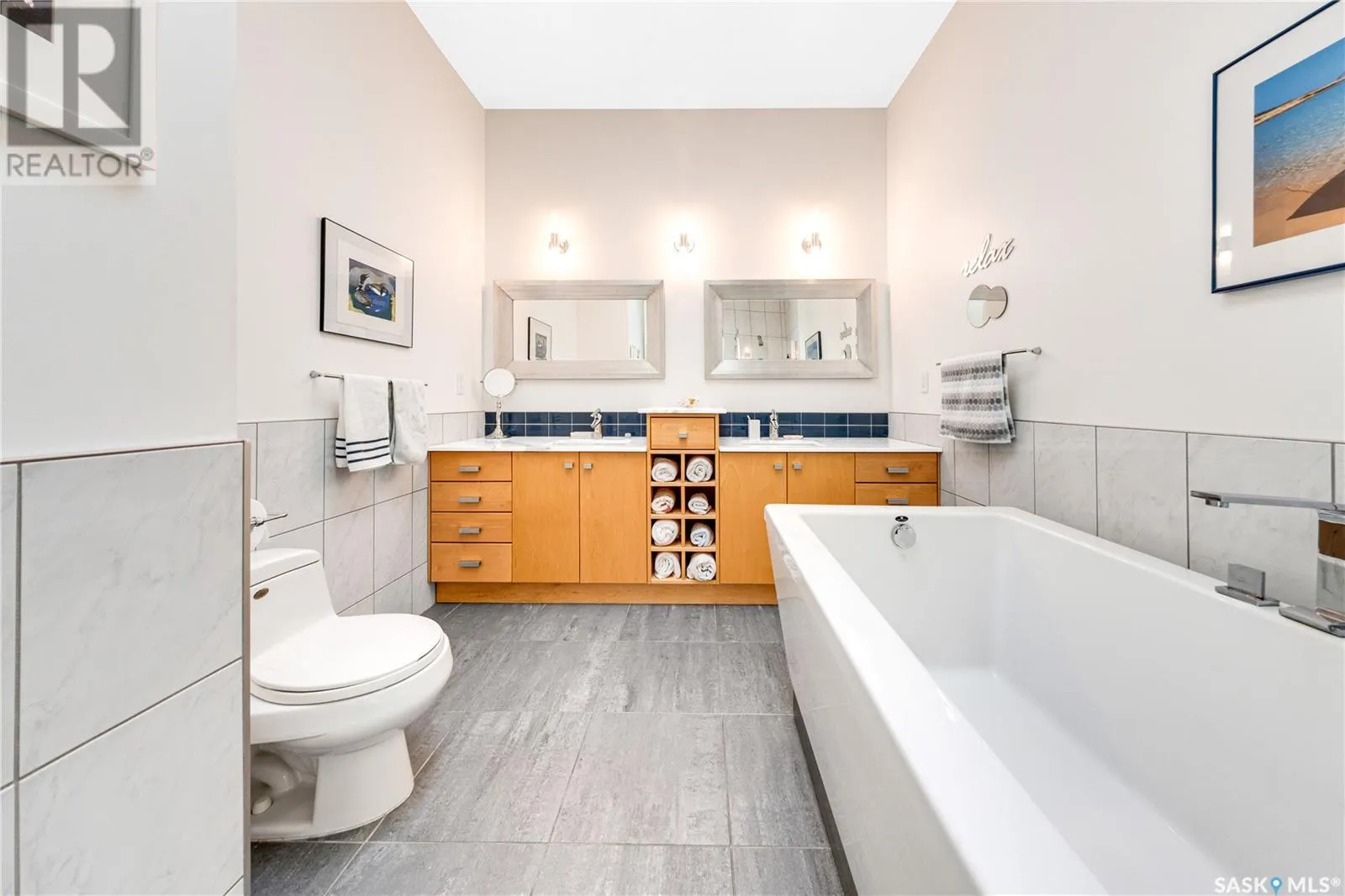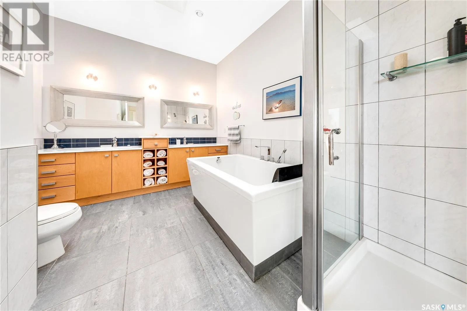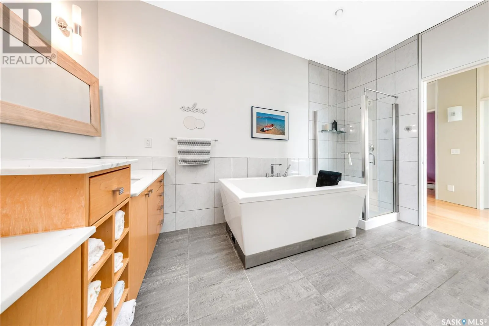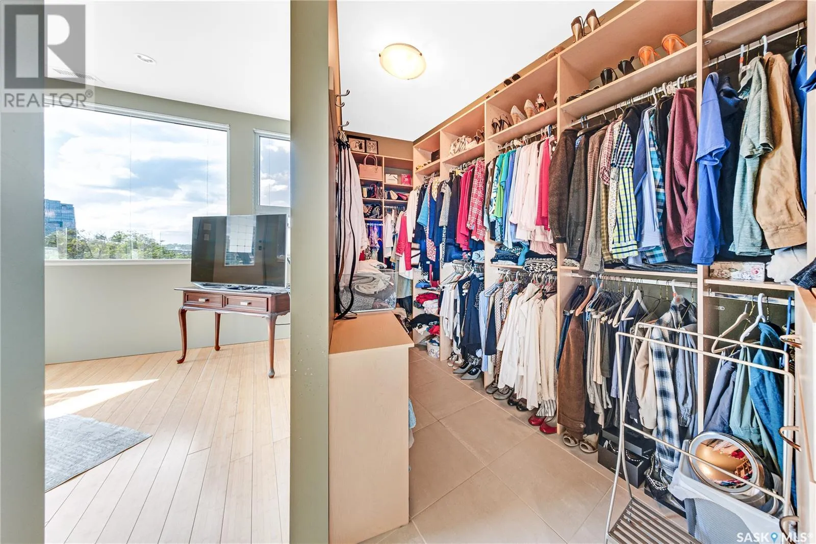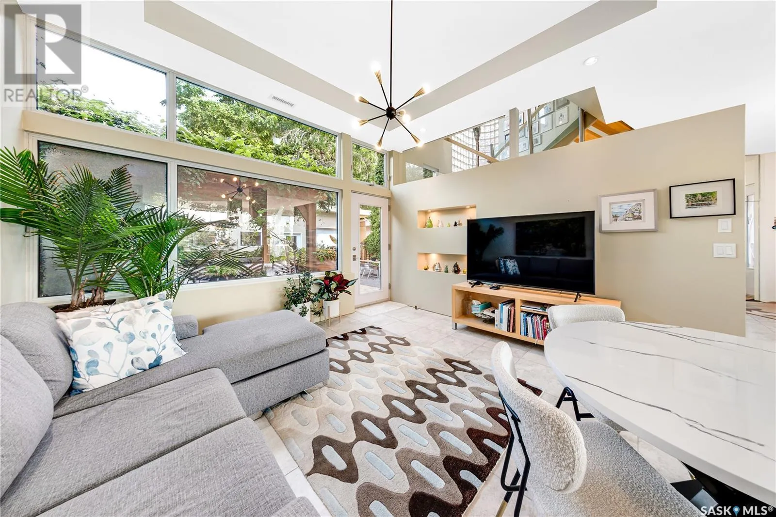 Riverfront with sweeping views of downtown Saskatoon. Welcome to 616 Saskatchewan Crescent East, an extraordinary residence perched on Saskatoonâs most iconic street. Panoramic views stretch from the Broadway Bridge to the historic Bessborough Hotel, offering a daily backdrop of stillness and beauty. Designed with intention and built to last, this home is a rare blend of enduring structure, refined comfort, and timeless serenity. Crafted with concrete core floors and ICF block construction up to the second storey, and framed with steel studs above, its strength is unmistakable. The exterior is wrapped in a 7-layer acrylic stucco system by Sask Stucco, with a restored balcony by Al Ro and a durable Flynn torch-on roof supporting commercial-grade rooftop HVAC and a dedicated makeup air unit. Inside, a Viessmann boiler quietly warms all three levels, supported by an air exchanger and Culligan RO system. The kitchen features solid maple cabinetry by Ben McNee, a Miele stove and charcoal grill, Miele dishwasher, hood fan, and built-in Jennair fridge. Elegant finishes are found throughoutâsolid core doors, Creative Closets blinds, Unique Lighting fixtures, and a Russound audio system with in-ceiling speakers. In the lower-level family room, 5.1 surround sound by Speakercraft, subwoofer, and wet bar invite effortless entertaining. The sculptural staircase, built with steel and solid wood, is paired with railings by R&B Bannister and glasswork by Dynamic Glass. Outdoors, unwind beneath the grapevine-draped pergola, enjoy cherry and apple trees, or relax on the stamped concrete patio. A triple detached garage offers one double, one oversized single, and a rear overhead door to the yard. Gas BBQ hookup and Simplex keyless locks provide everyday ease. This is more than a homeâitâs a peaceful rhythm, a grounded retreat, and a rare offering in Saskatoonâs most sought-after location. (id:27476)